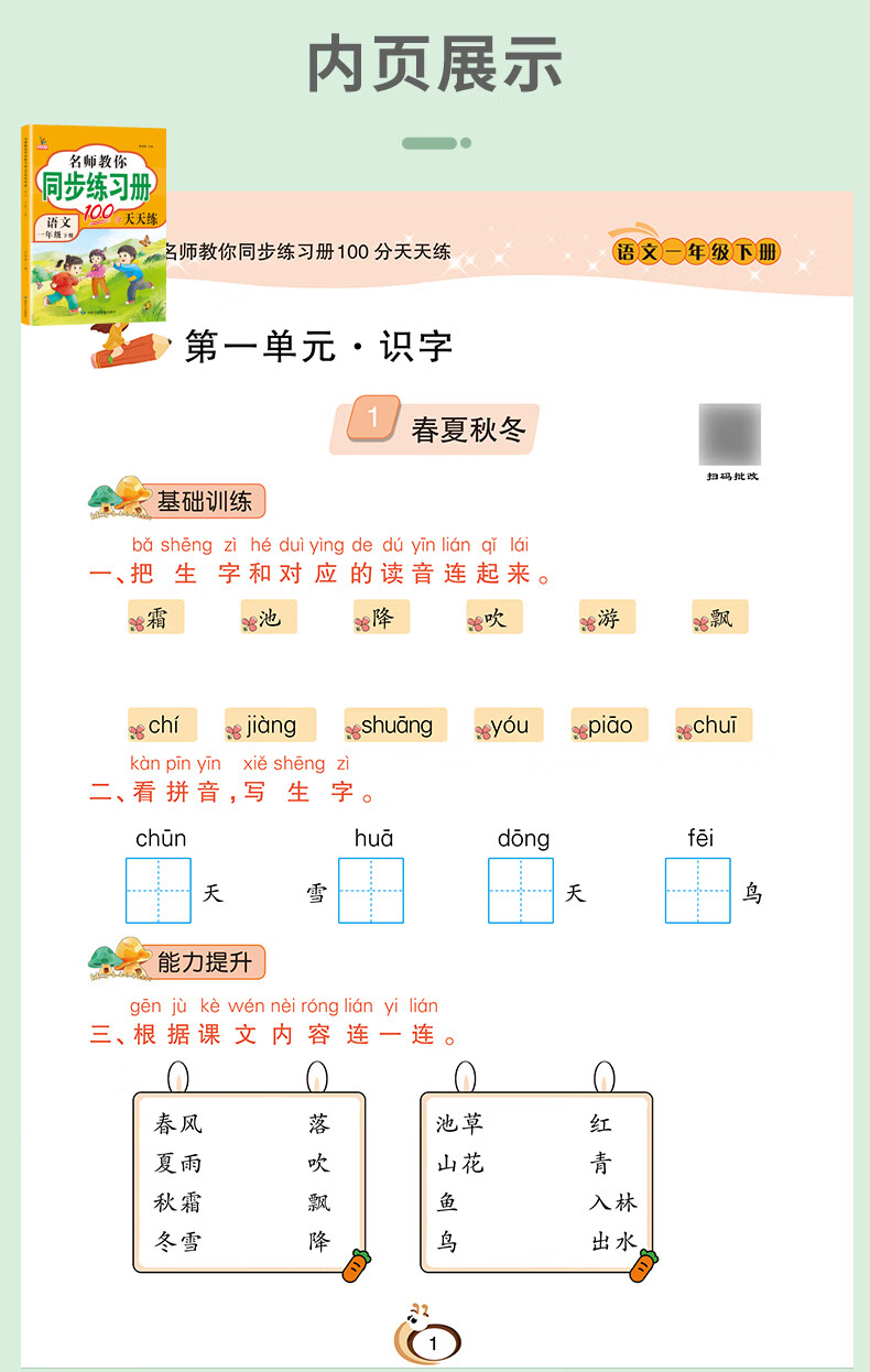 2026一年级下册同步训练练习册人教版语文数学小学一年级下册试卷测试卷一课一练课课练作业本同步作文阅读理解口算同步教材部编版鸿创黄冈小状元 【开学季6本装】:同步训练+试卷+看图阅读+口算 一年级下册