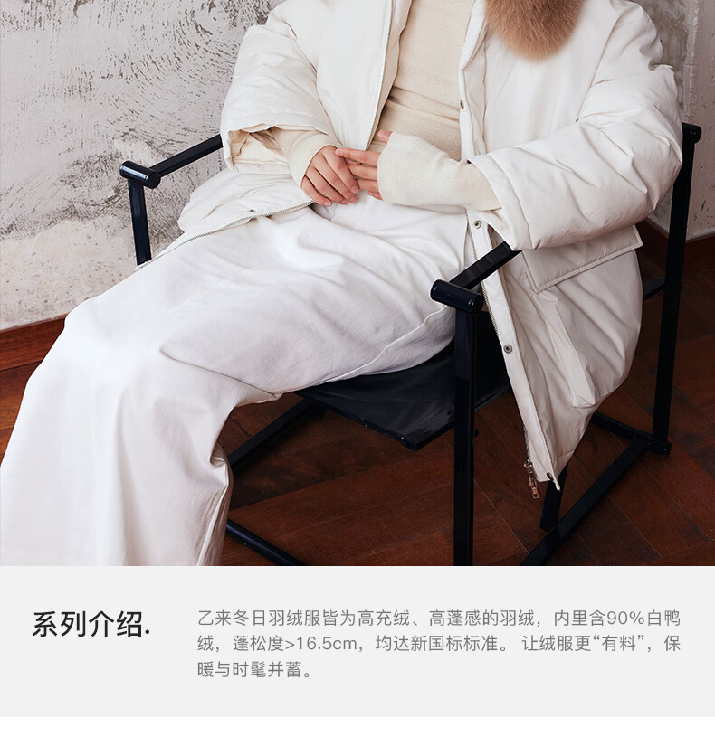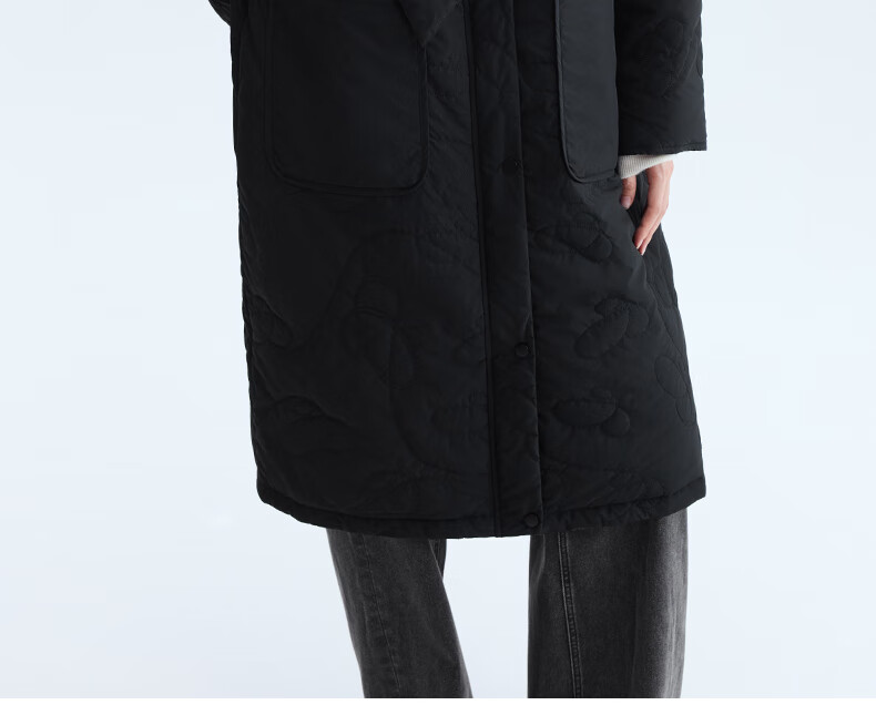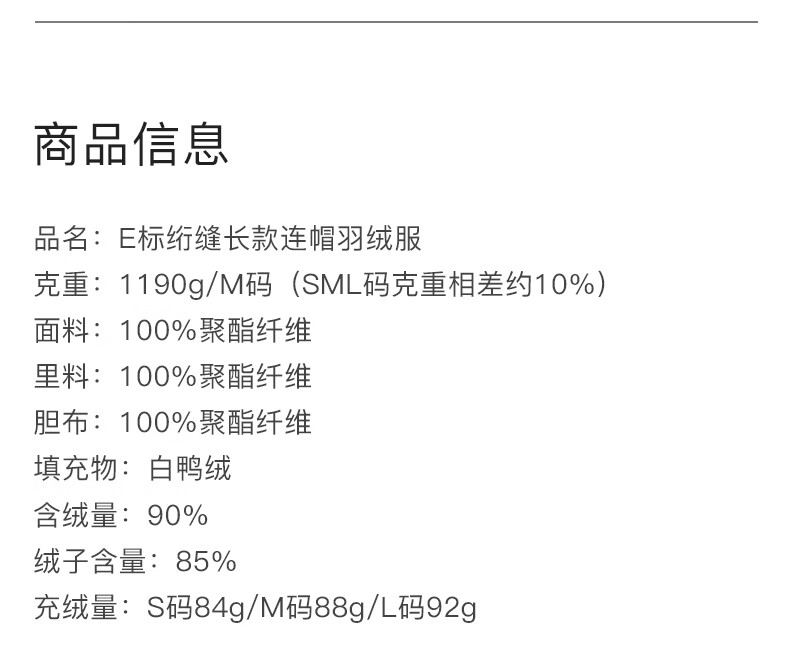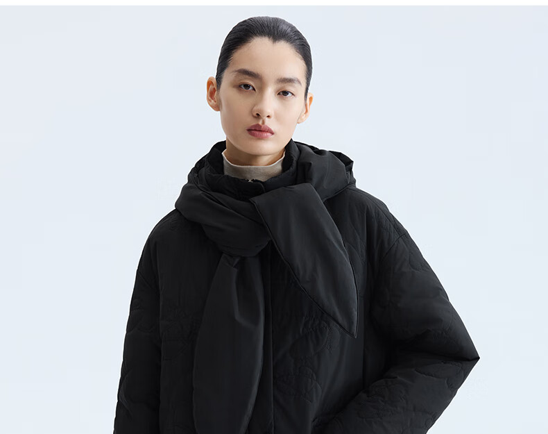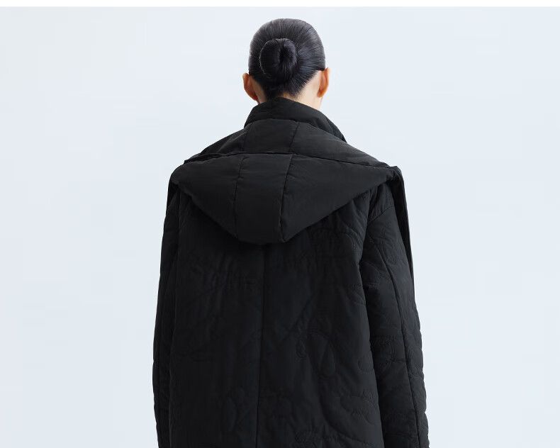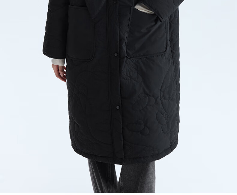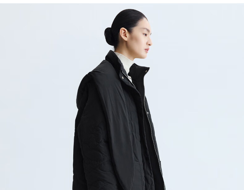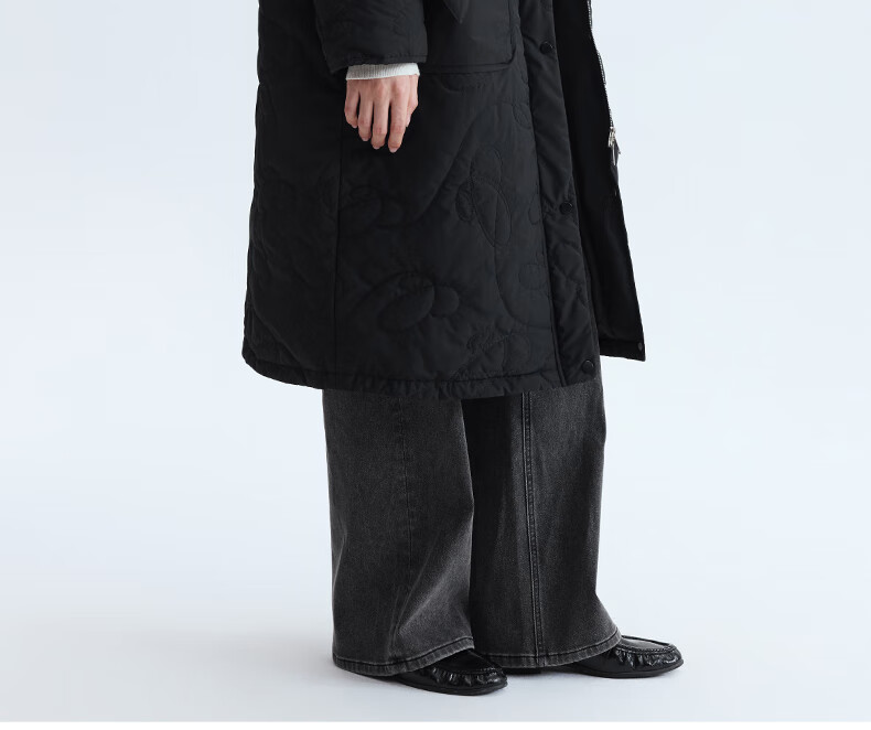 乙来【甄选90%大朵白鸭绒】E标绗缝长款连帽羽绒服女冬季外套衣服加厚 夜空黑 M