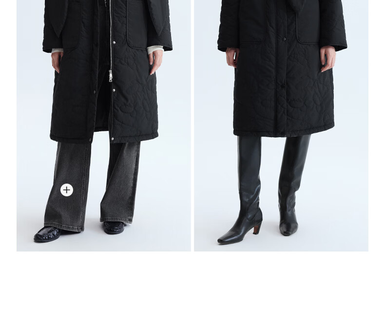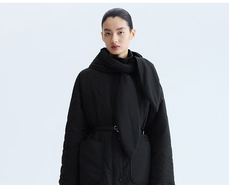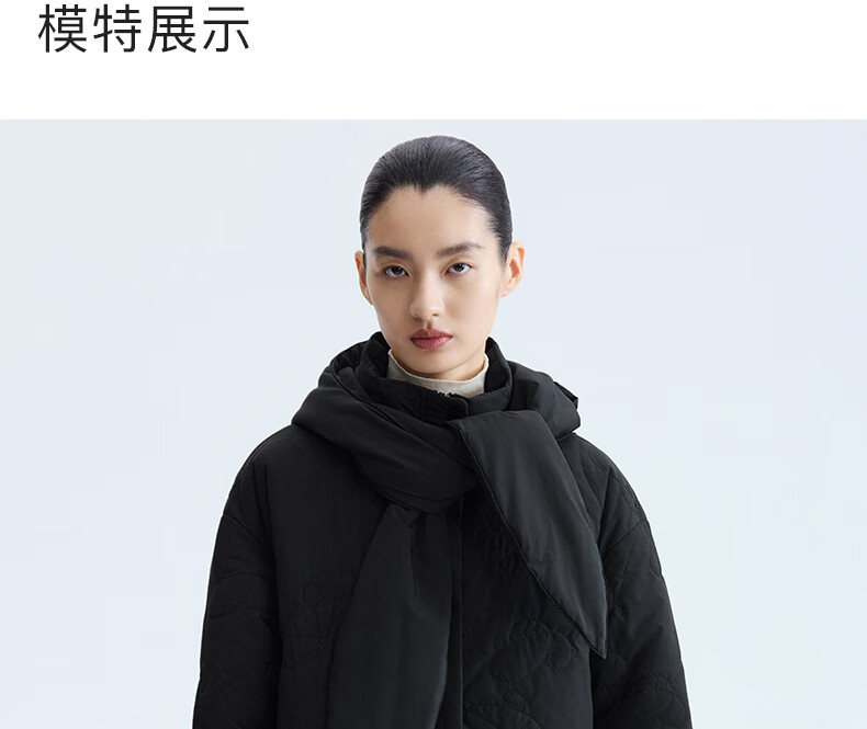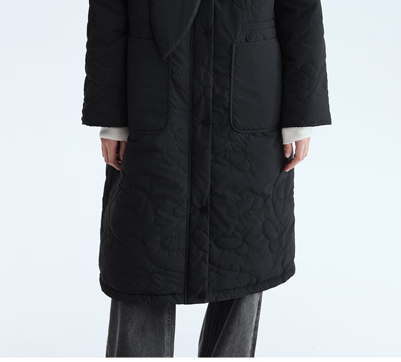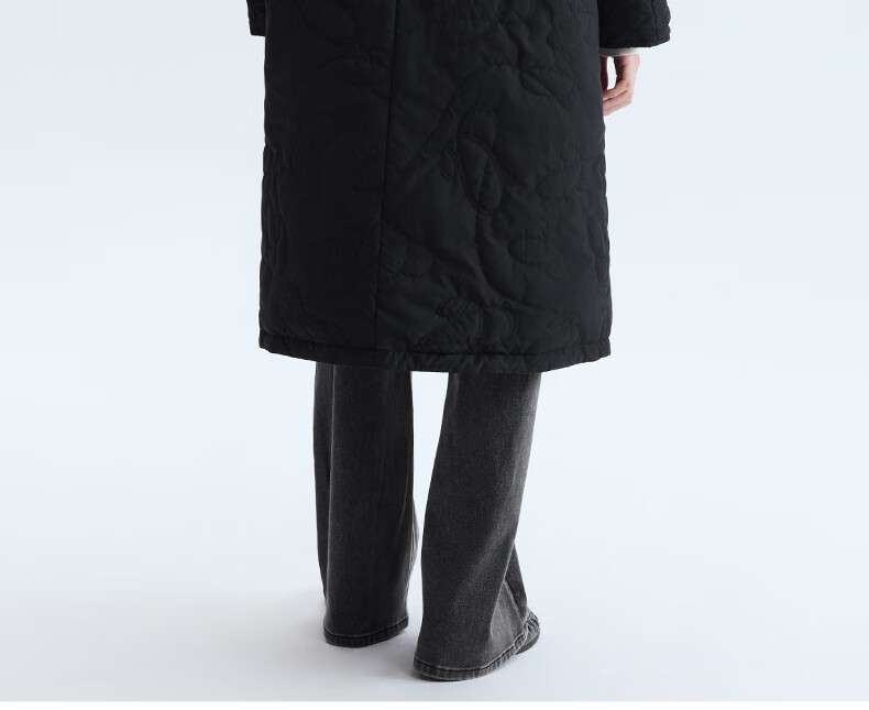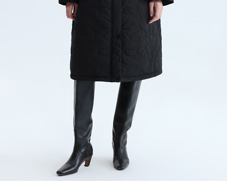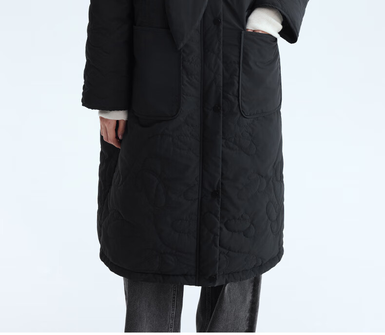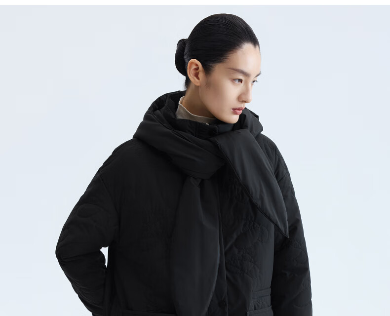 乙来【甄选90%大朵白鸭绒】E标绗缝长款连帽羽绒服女冬季外套衣服加厚 夜空黑 M