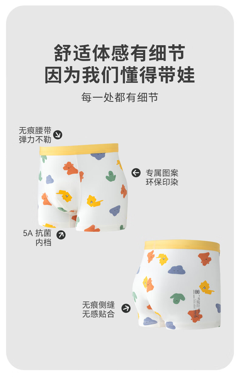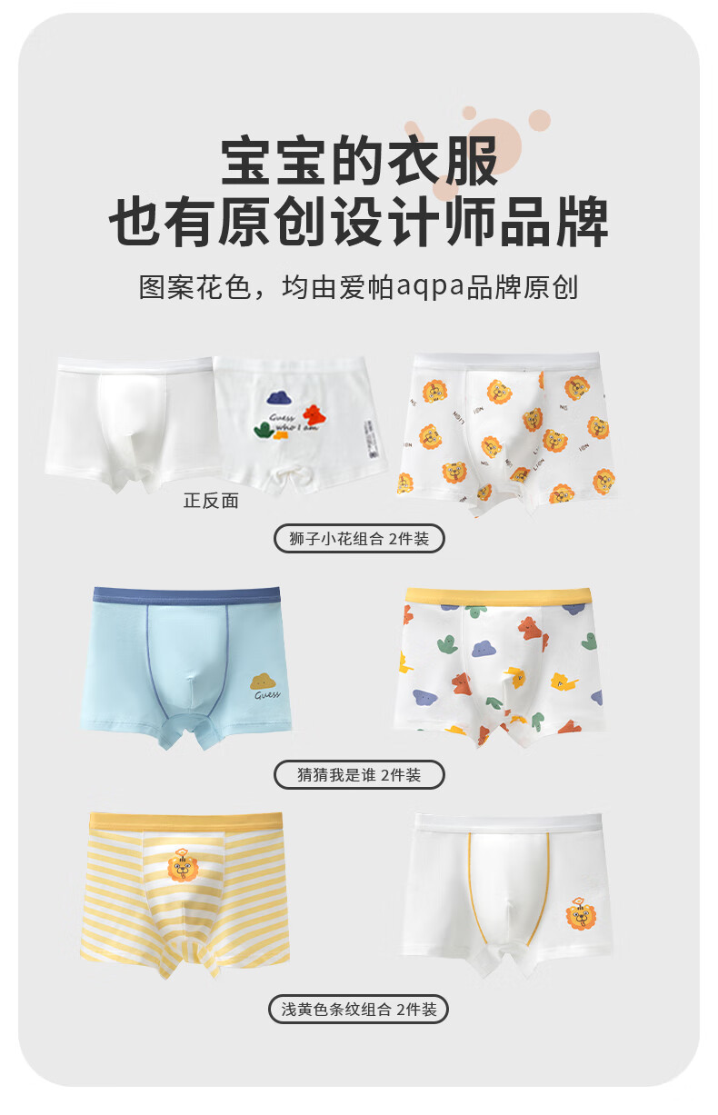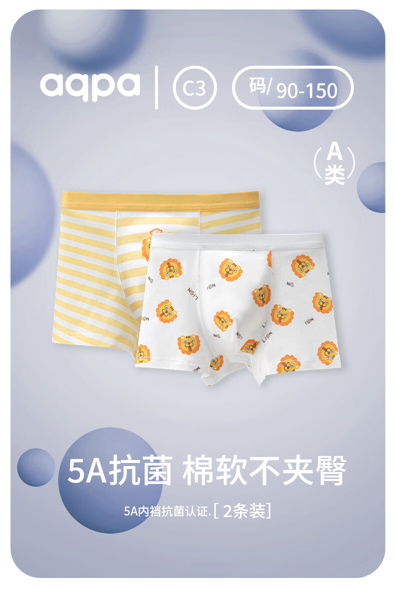 aqpa【5A抑菌】儿童内裤女童男童平角不夹屁屁宝宝夏短裤纯棉透气2条 狮子小花组合男款 2条 120cm