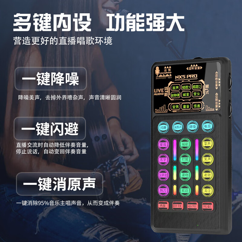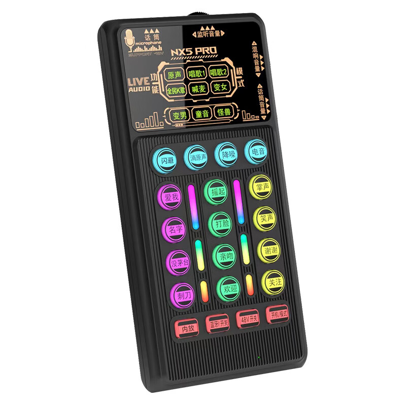 金声动音首款支持48V专业麦克风声卡直播专用设备全套手机电脑通用k歌专业级唱歌OTG无损传输多键内设长续 黑色