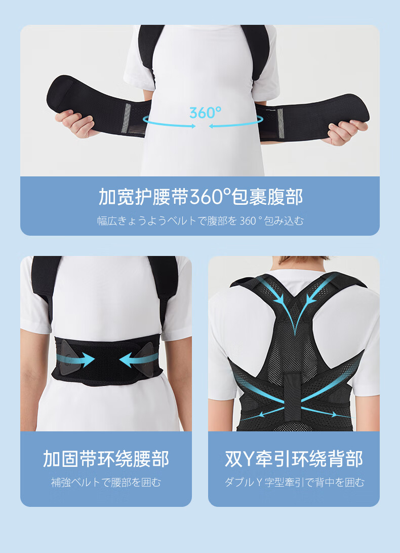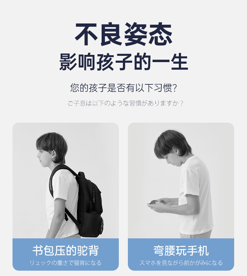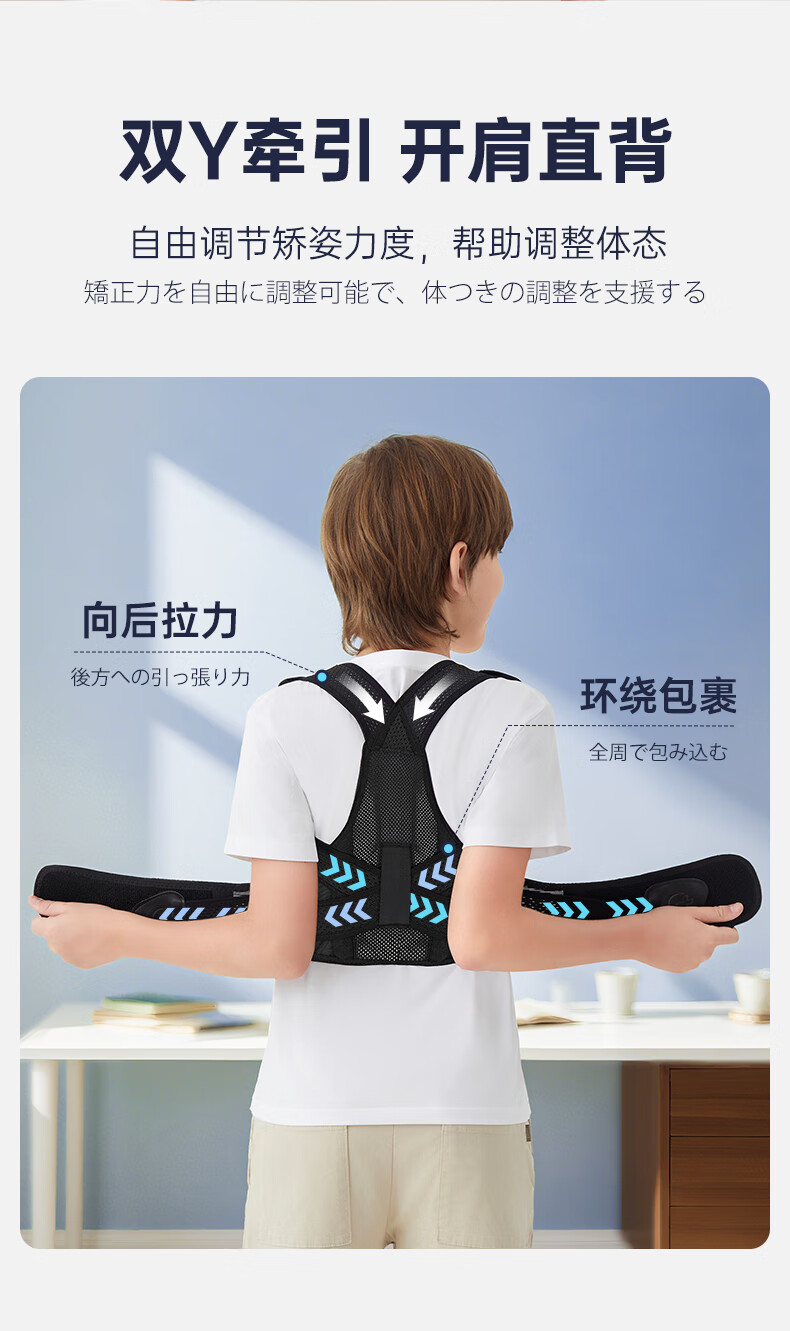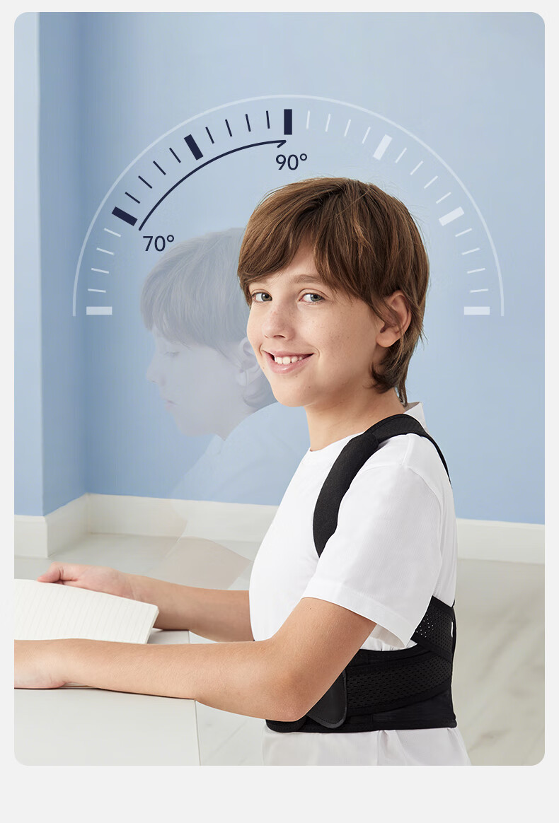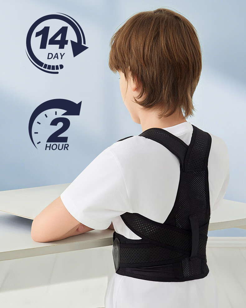 CUYPAS日本新升级学生儿童专用驼背矫正器青少年纠正背部矫正带神器 黑色 M (体重35-50kg)