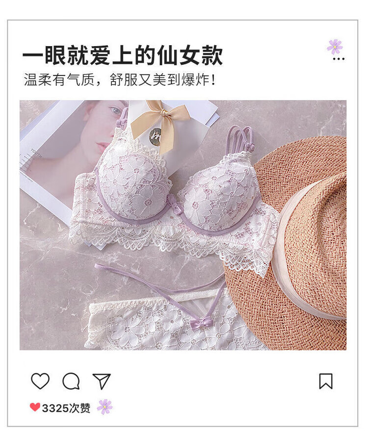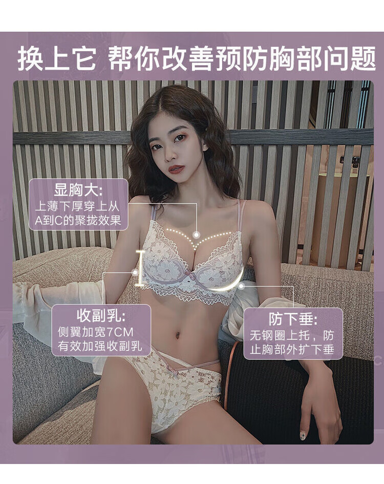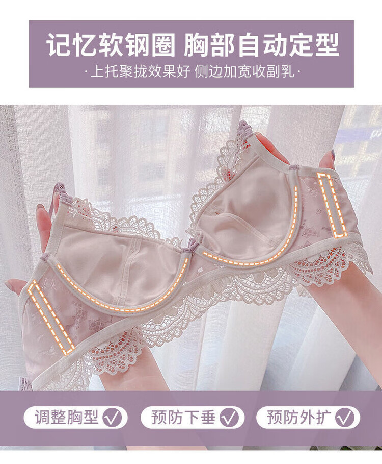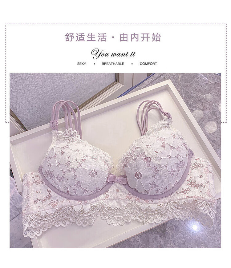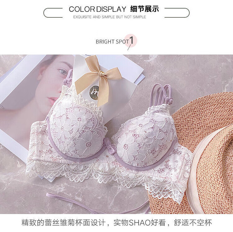 VICTTORIS BARS性感内衣女小胸聚拢文胸深V收副乳少女上托调整型美背胸罩套装 【套装】紫色 均码 70=32 (AB通用)