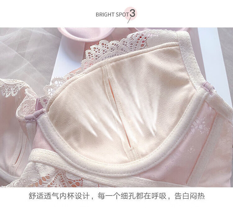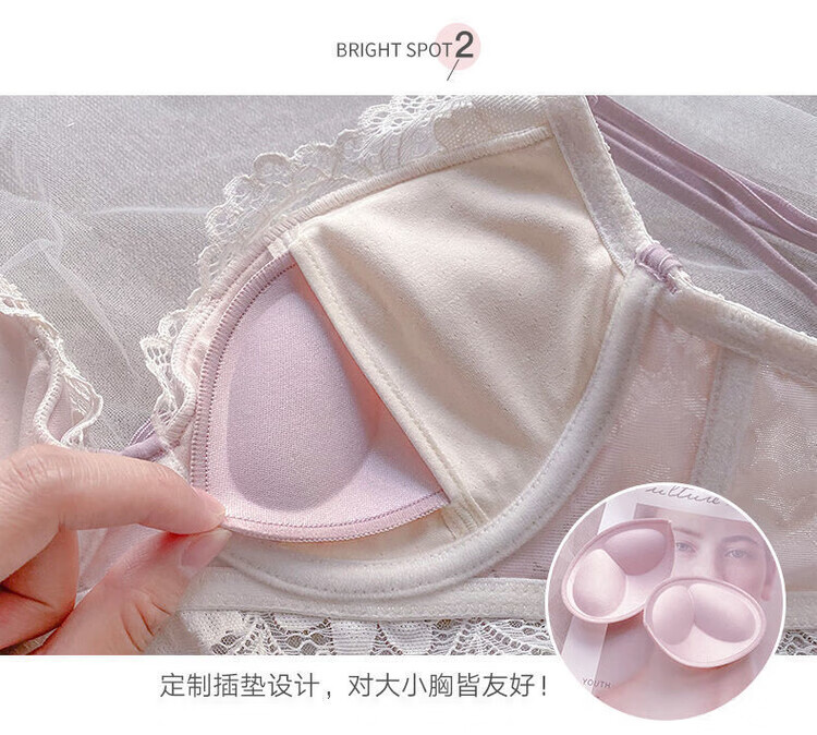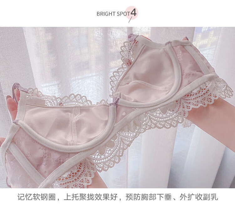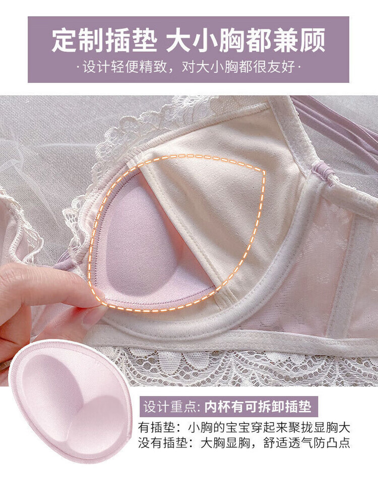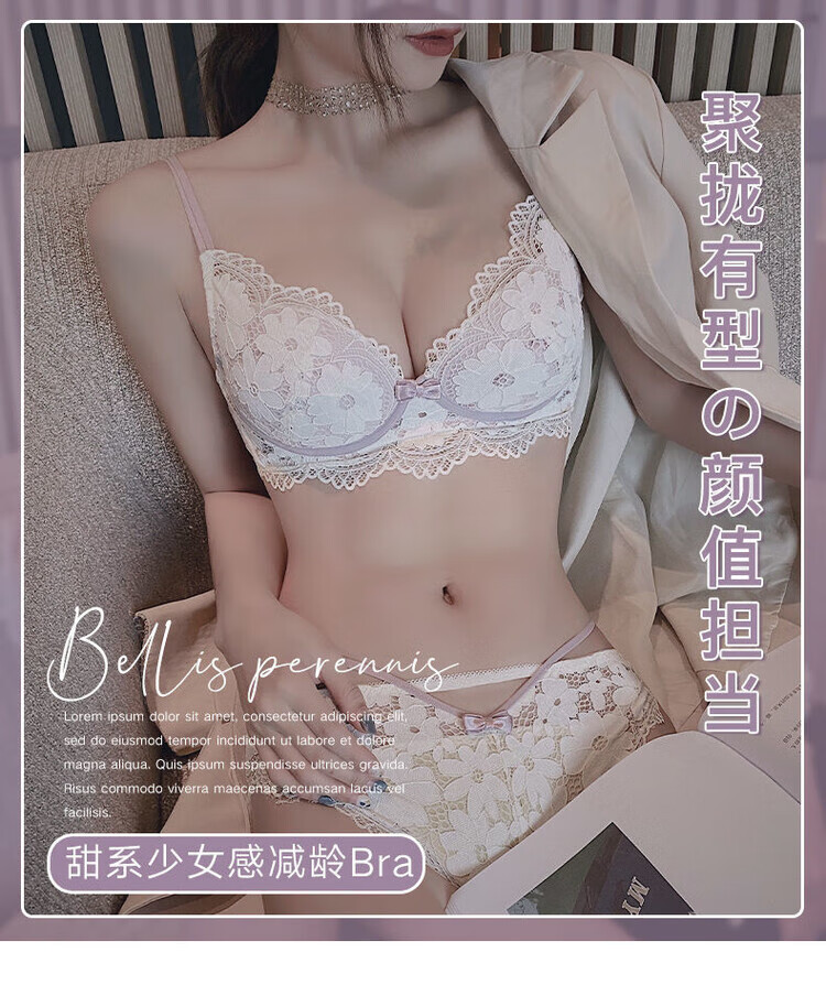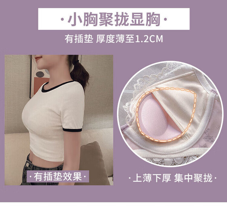 VICTTORIS BARS性感内衣女小胸聚拢文胸深V收副乳少女上托调整型美背胸罩套装 【套装】紫色 均码 70=32 (AB通用)