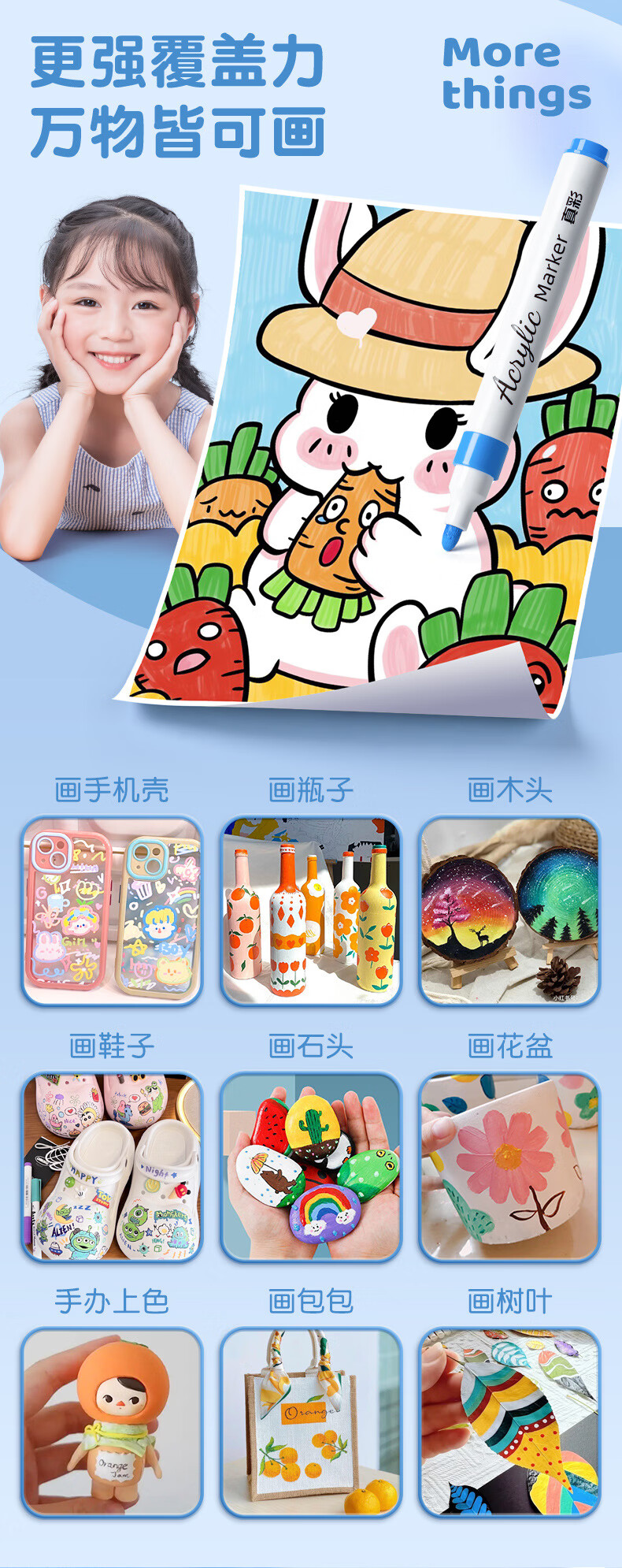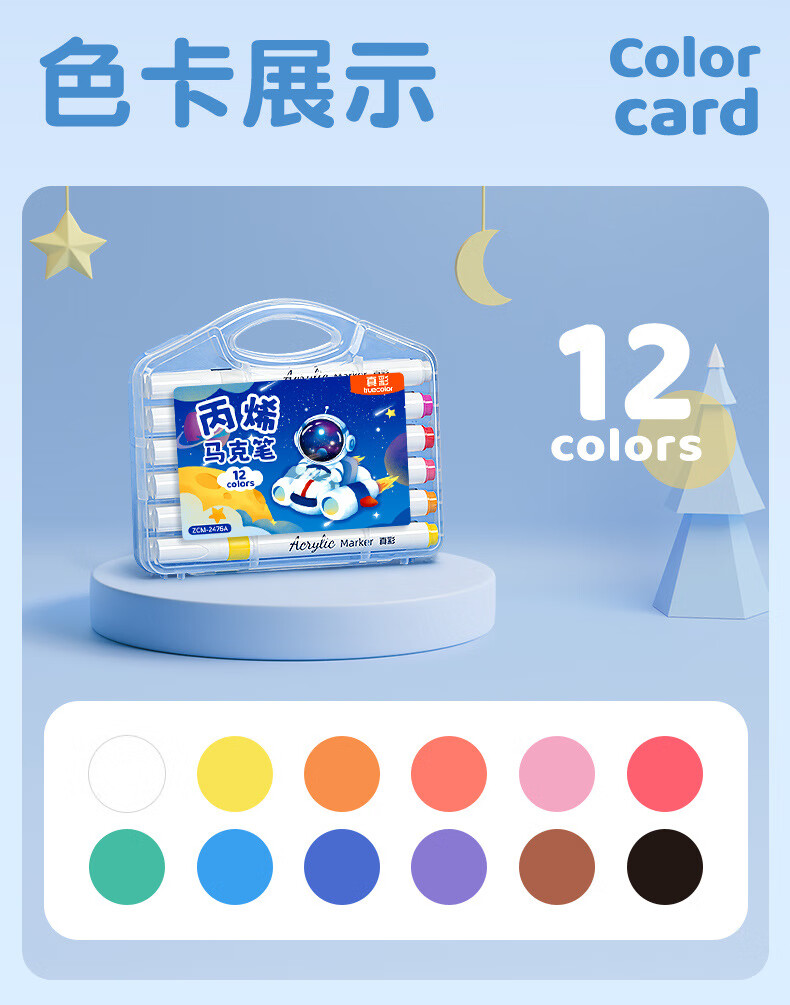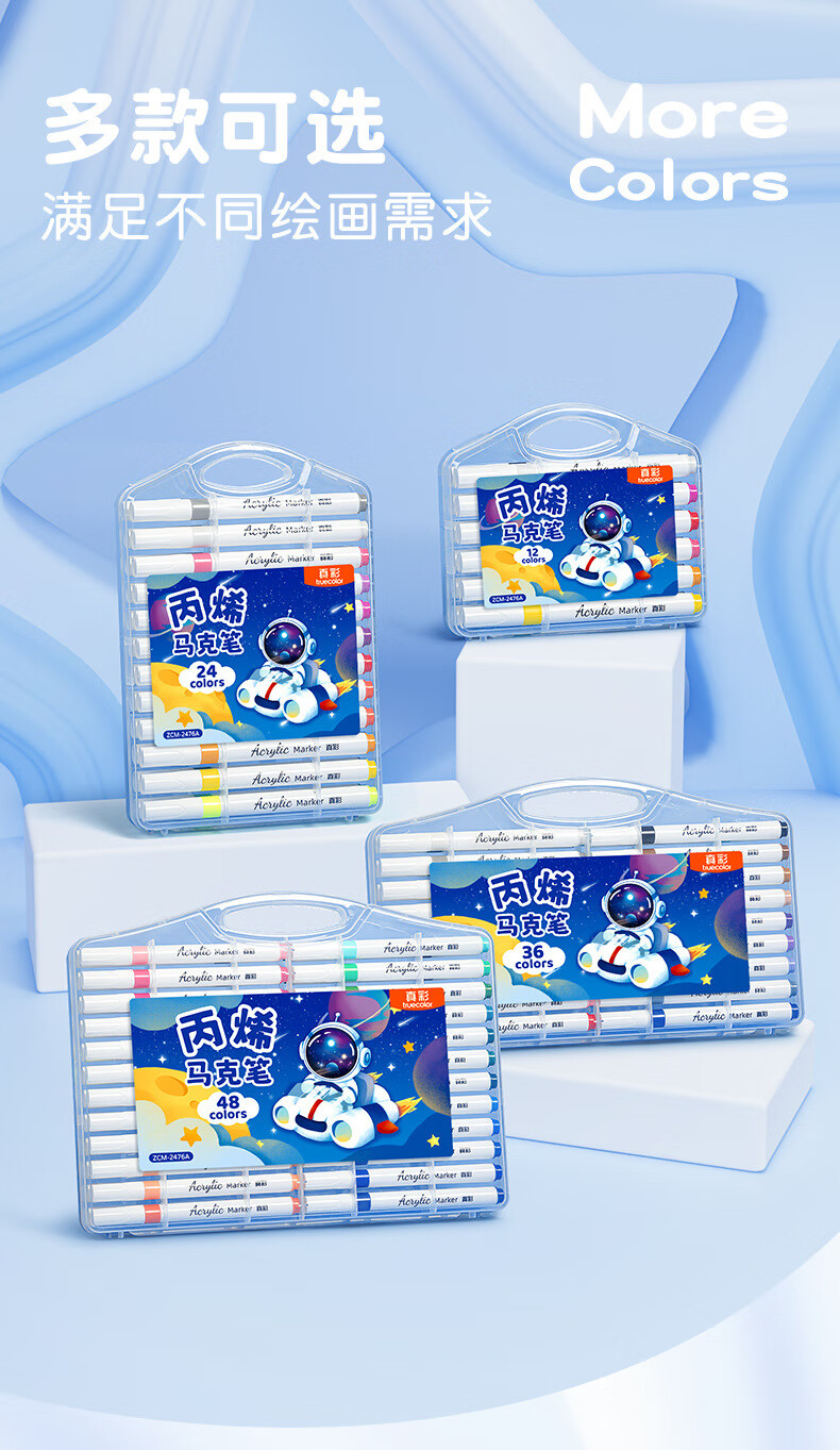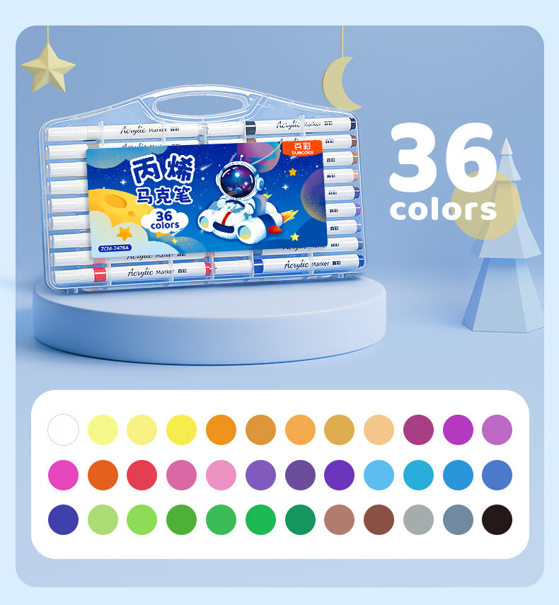 真彩(TRUECOLOR)丙烯马克笔不透色可叠色小学生专用儿童美术DIY彩色绘画笔笔芯水彩笔可水洗幼儿园涂鸦防水丙烯24 【36色】手提扁盒公主兔(可放书包)