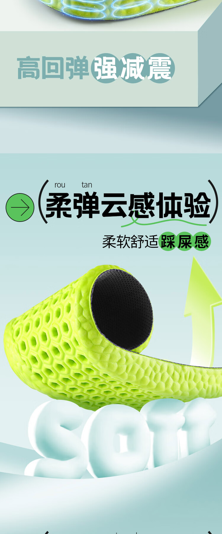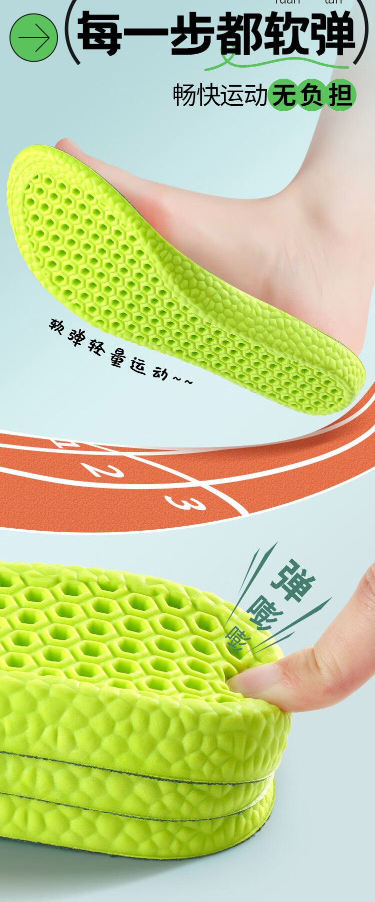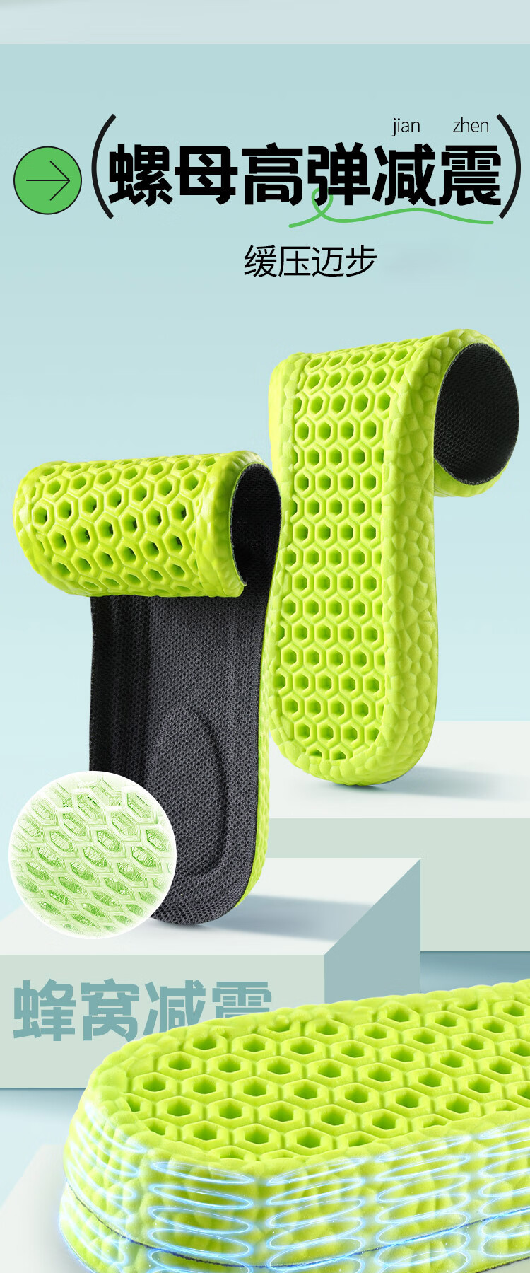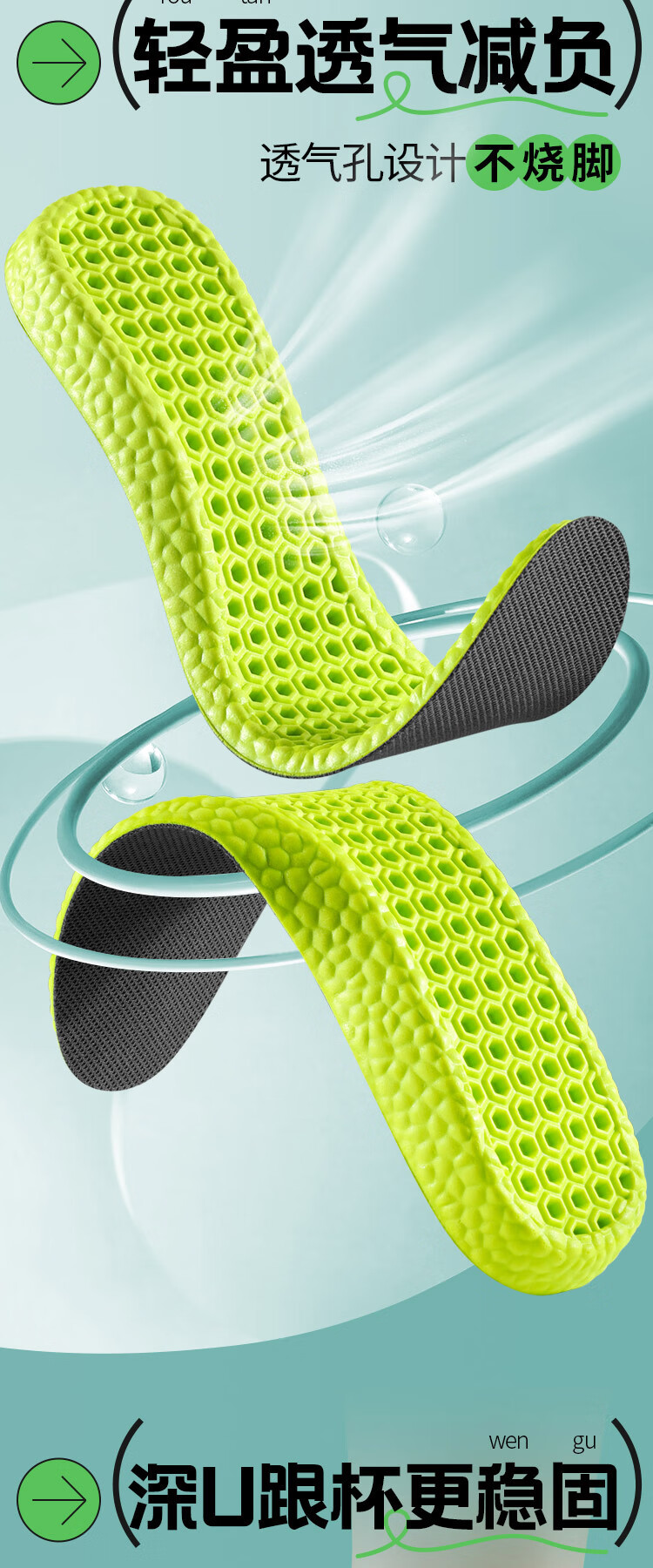 足印部落防臭鞋垫男吸汗透气抗菌除臭运动减震软弹踩屎感女加厚站久不累 绿黑色】运动减震丨抗菌除臭 2双 39-40码