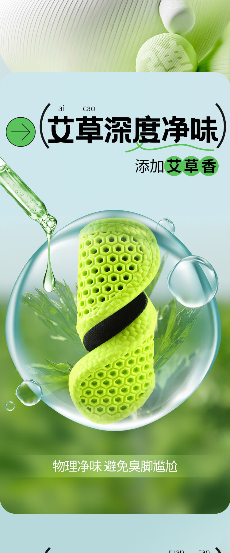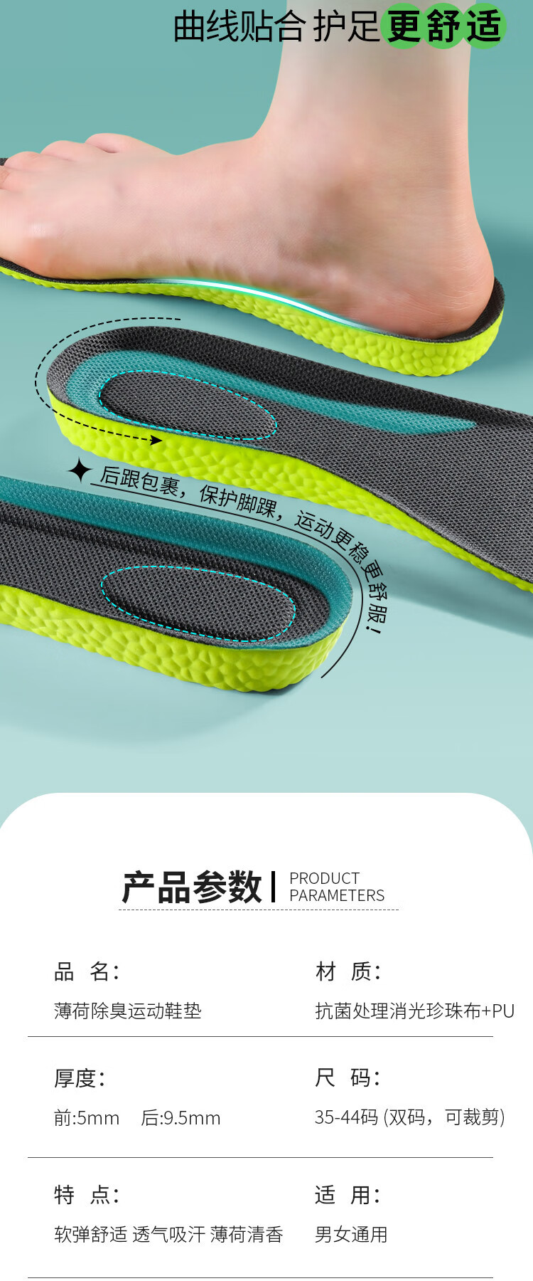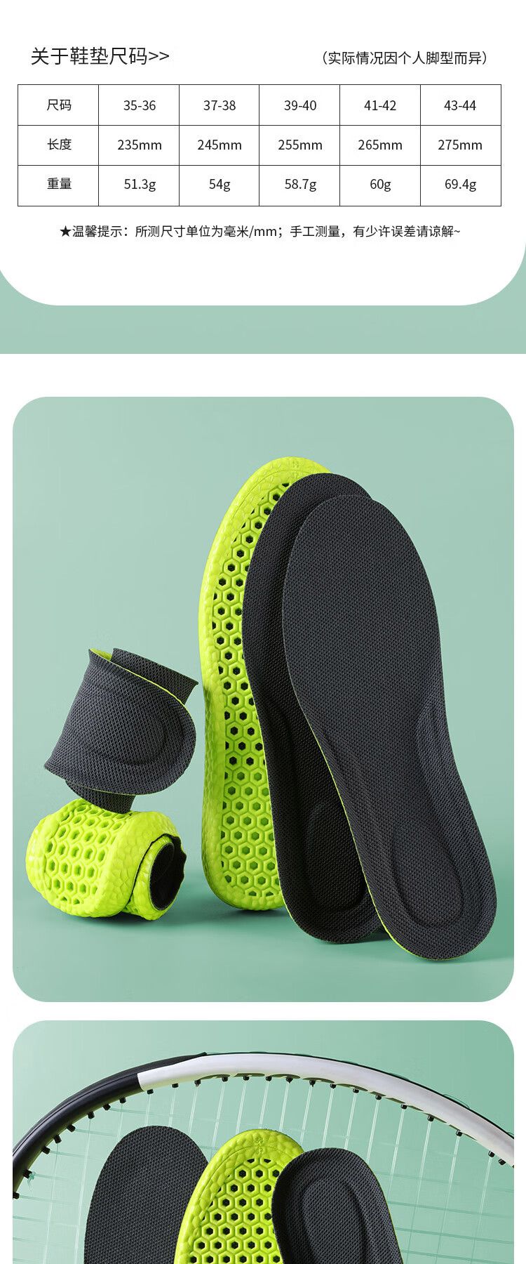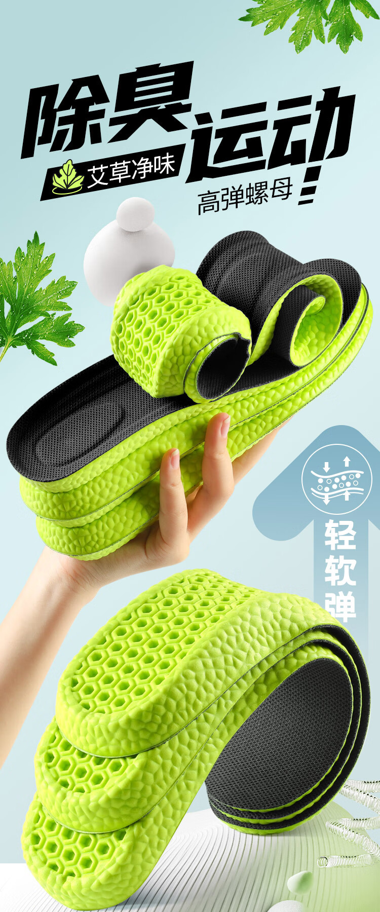 足印部落防臭鞋垫男吸汗透气抗菌除臭运动减震软弹踩屎感女加厚站久不累 绿黑色】运动减震丨抗菌除臭 2双 39-40码