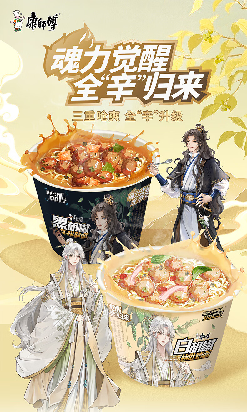 康师傅方便面【JDG无畏推荐】黑白胡椒 白胡椒猪肚鸡面110g*3桶 泡面