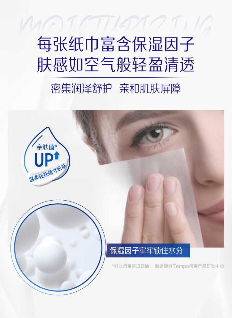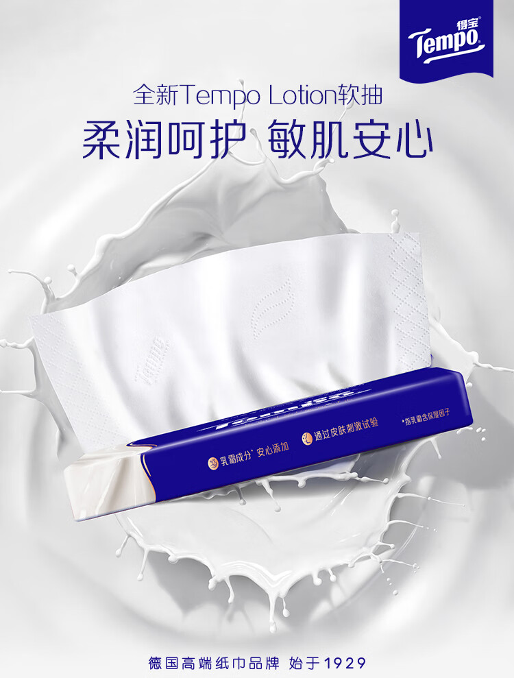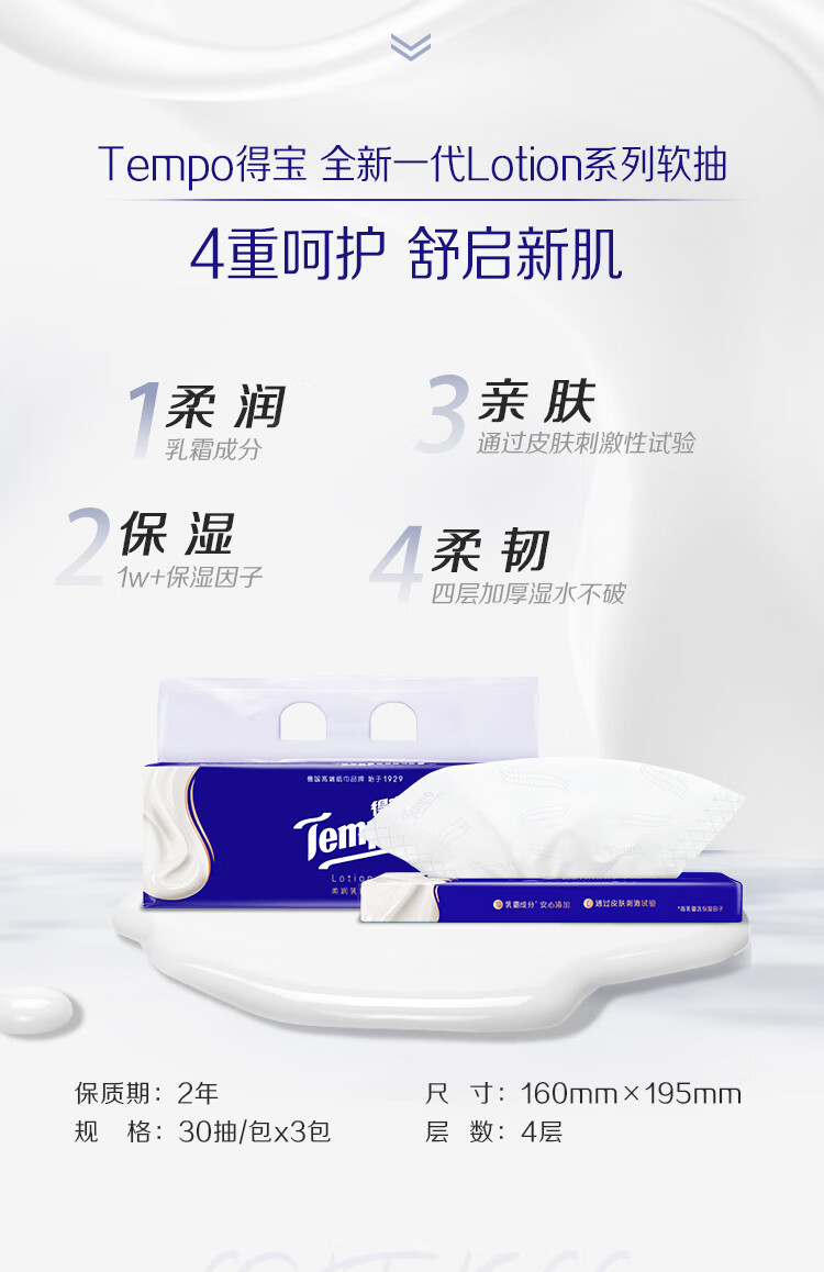 得宝(TEMPO)一博同款 乳霜纸 Lotion4层30抽*3包 云柔巾 保湿婴儿纸巾 抽纸