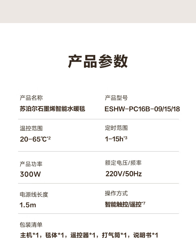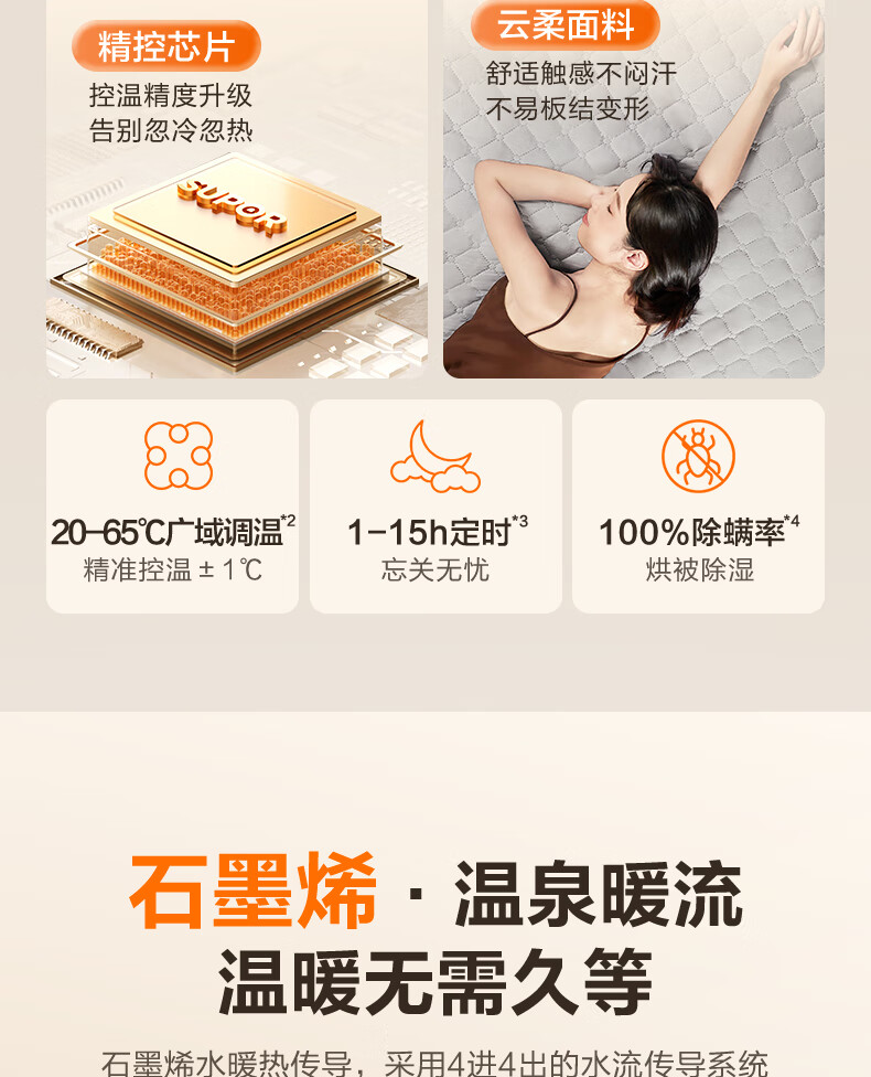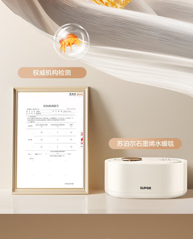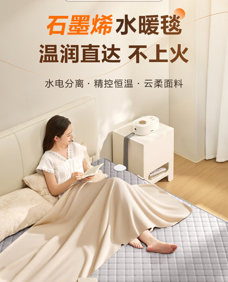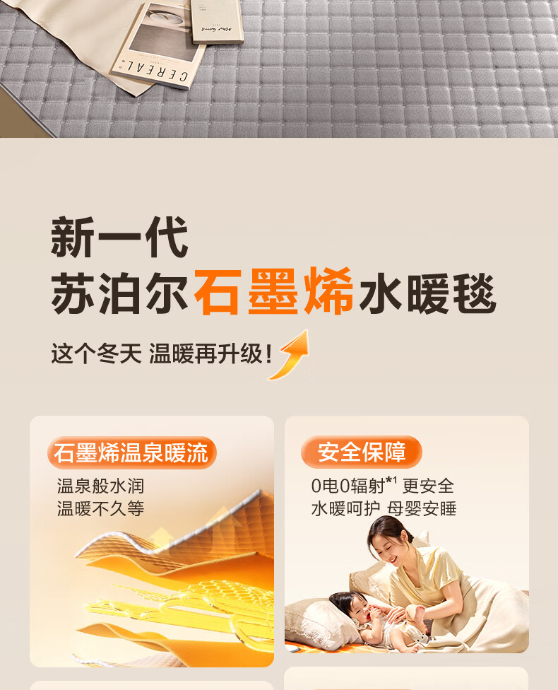 苏泊尔石墨烯水暖毯水暖电热毯双人电褥子水电分离安全恒温除螨速热取暖水循环电热毯 燕麦奶白石墨烯智能遥控款 【无电无辐射】2*1.8米