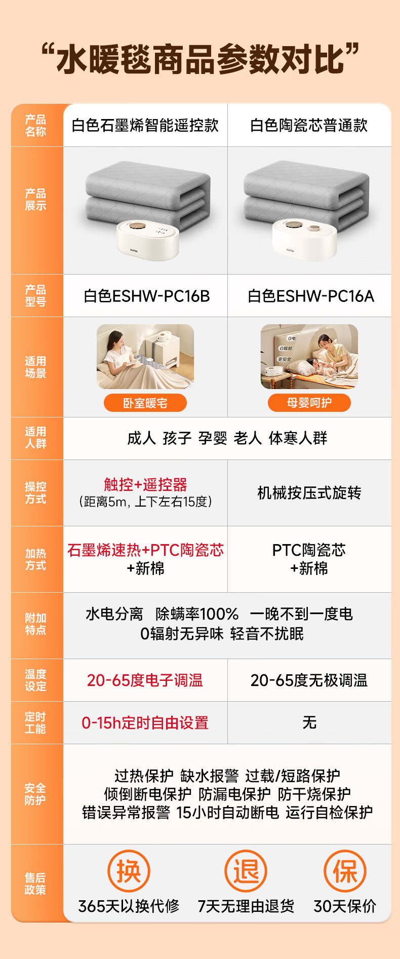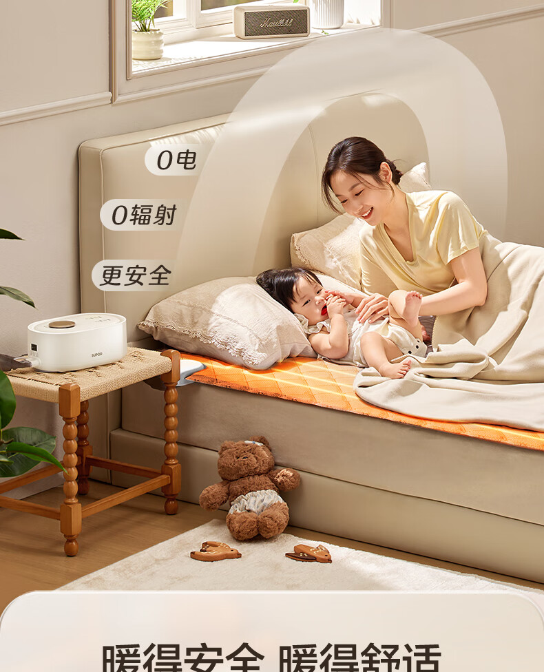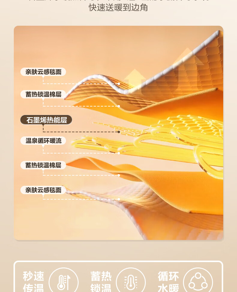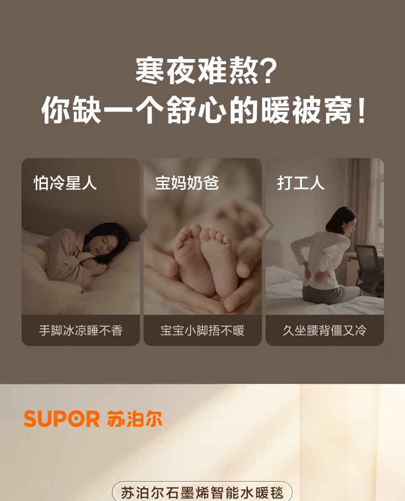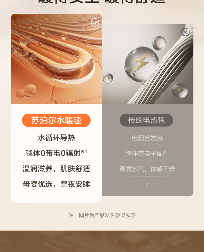 苏泊尔石墨烯水暖毯水暖电热毯双人电褥子水电分离安全恒温除螨速热取暖水循环电热毯 燕麦奶白石墨烯智能遥控款 【无电无辐射】2*1.8米