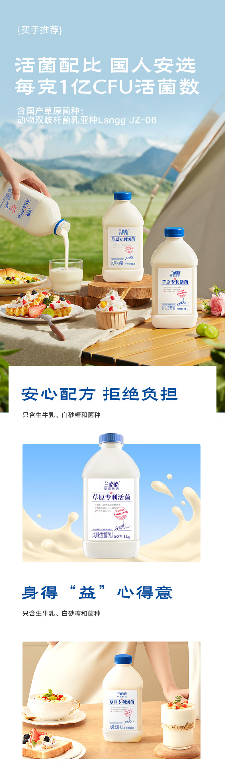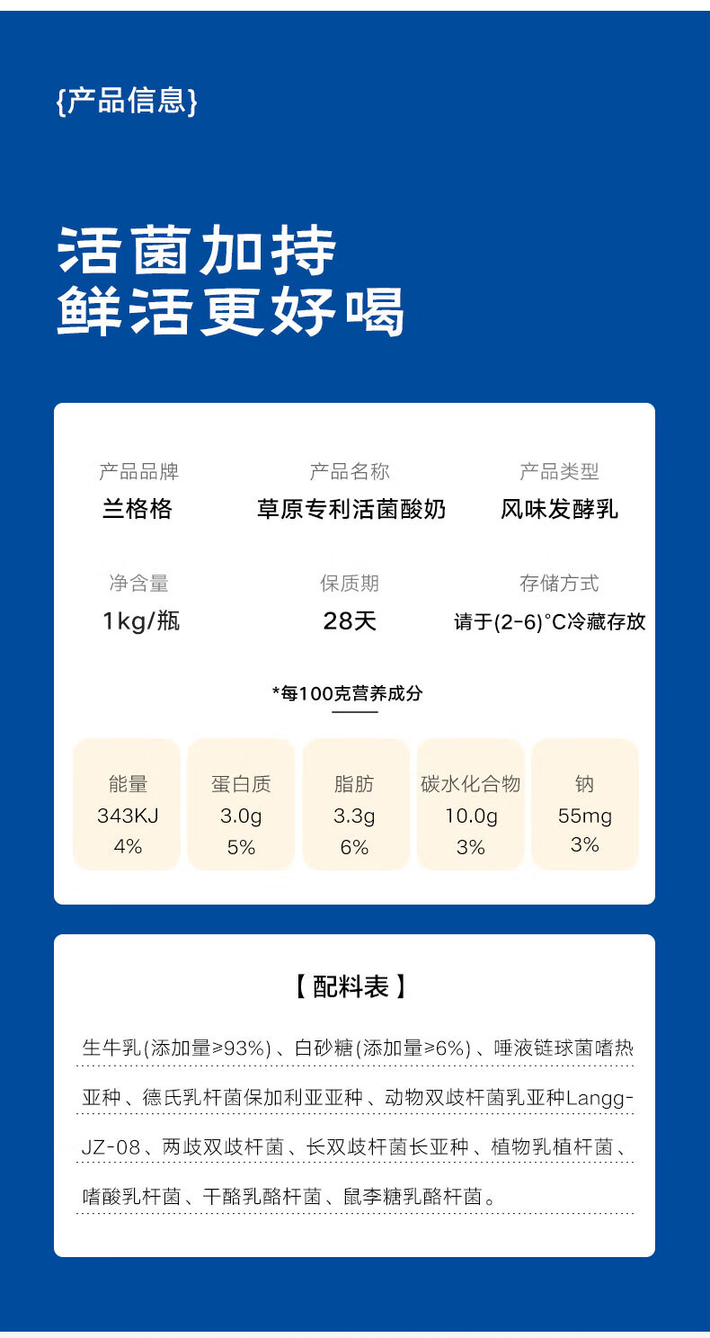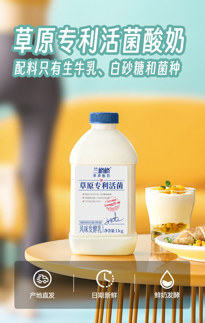 兰格格草原酸奶 专利活菌1kg*4桶 产地乌兰察布 源头直发