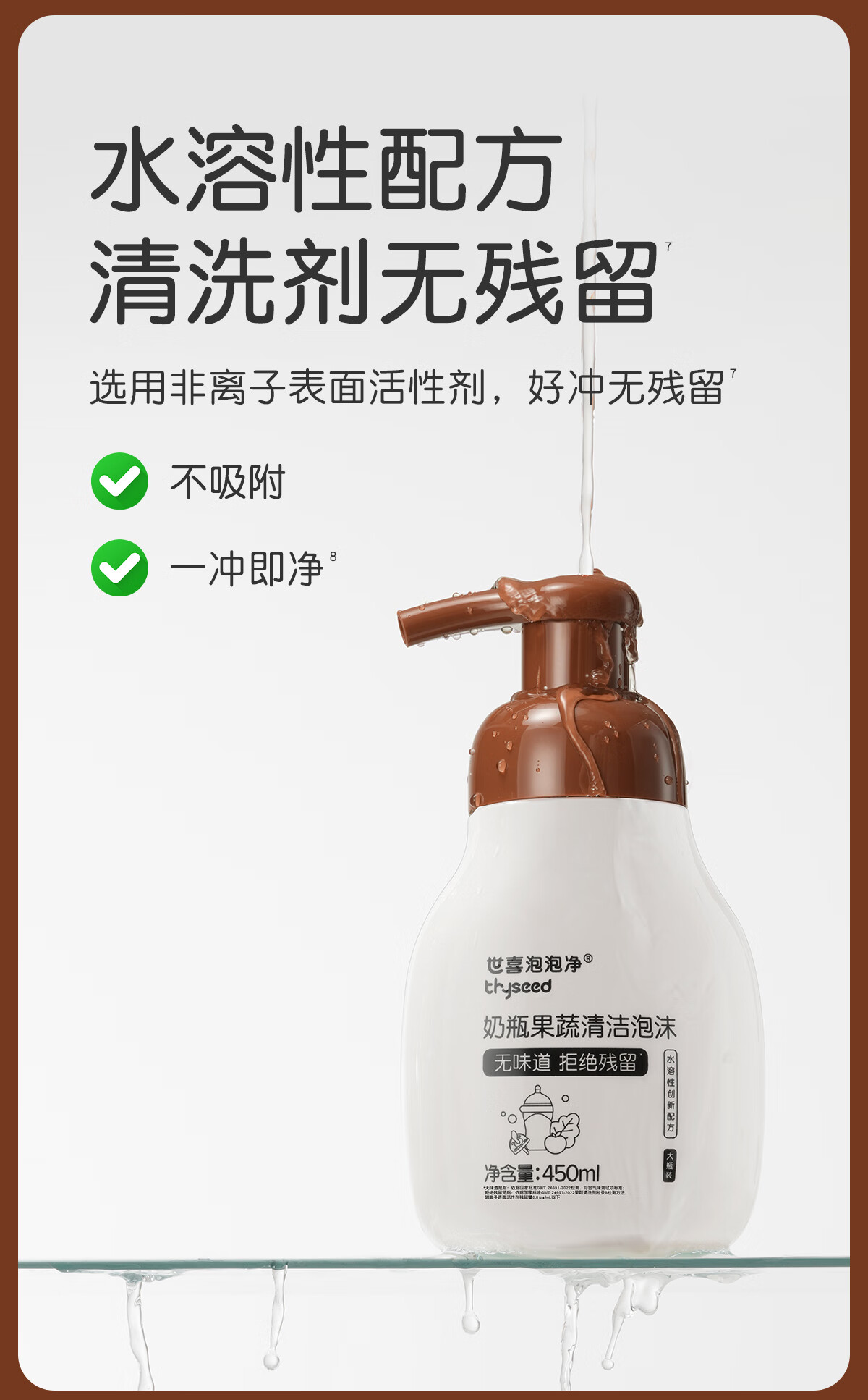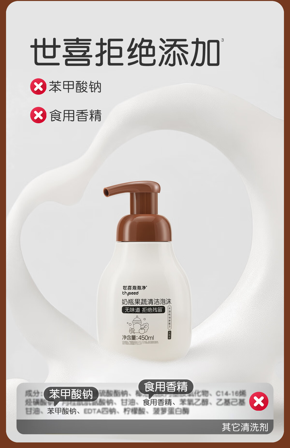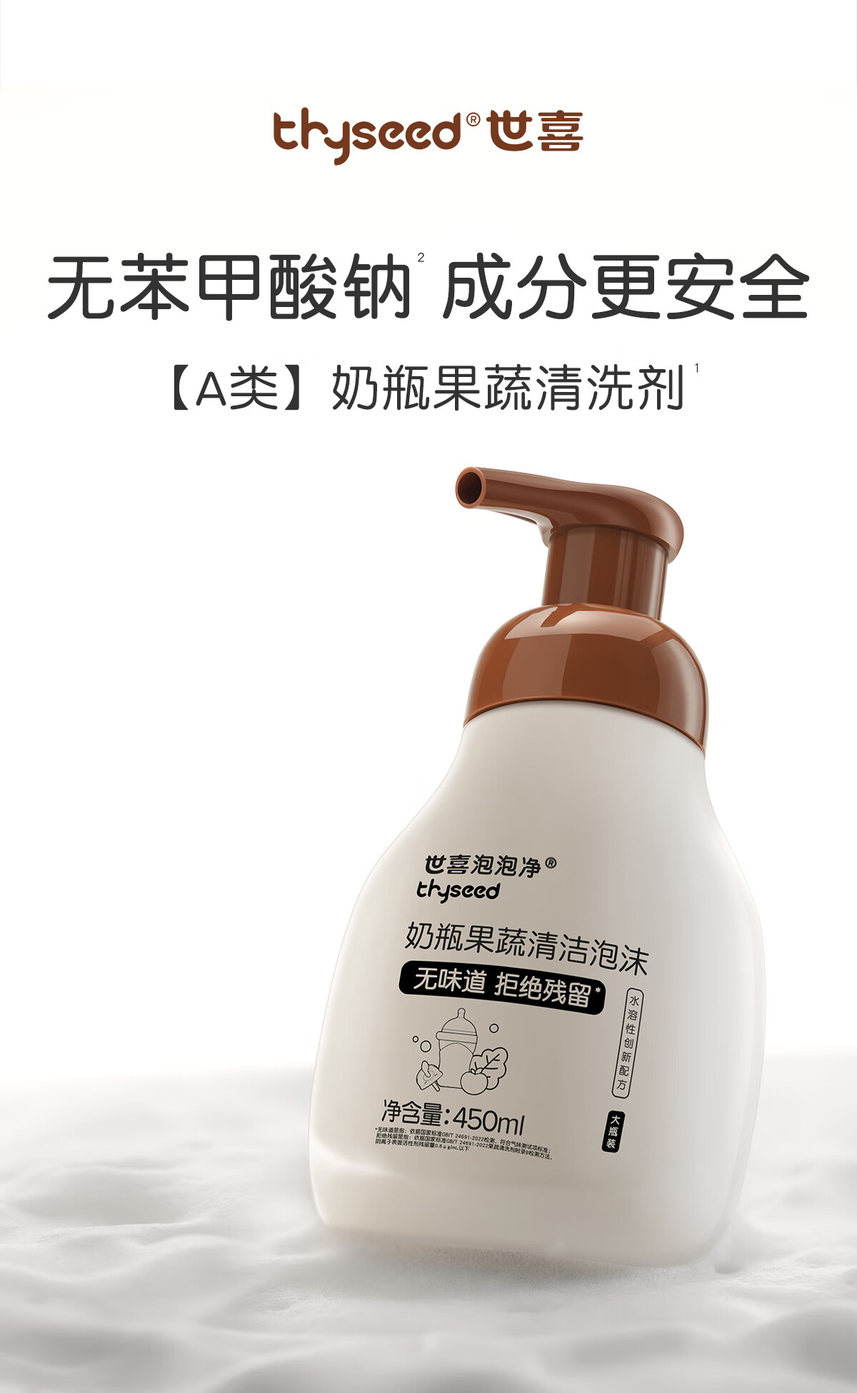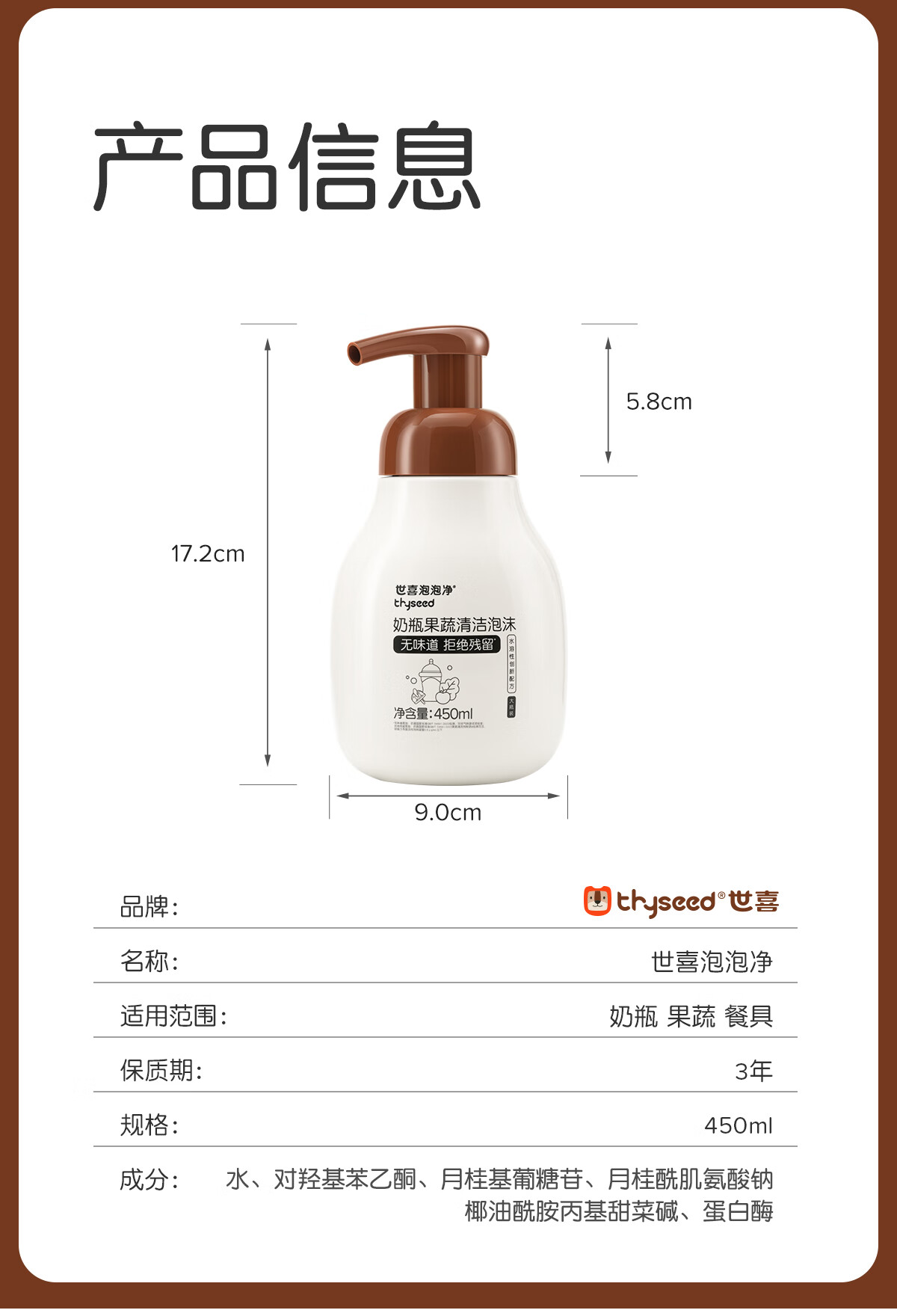 世喜奶瓶清洗剂婴儿果蔬餐具清洗剂植萃配方温和不伤手清洁泡沫 替换装450ml(无泵头)