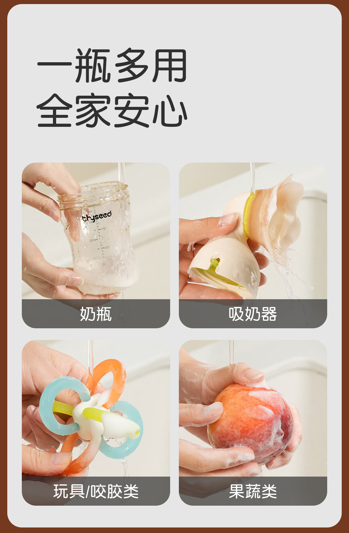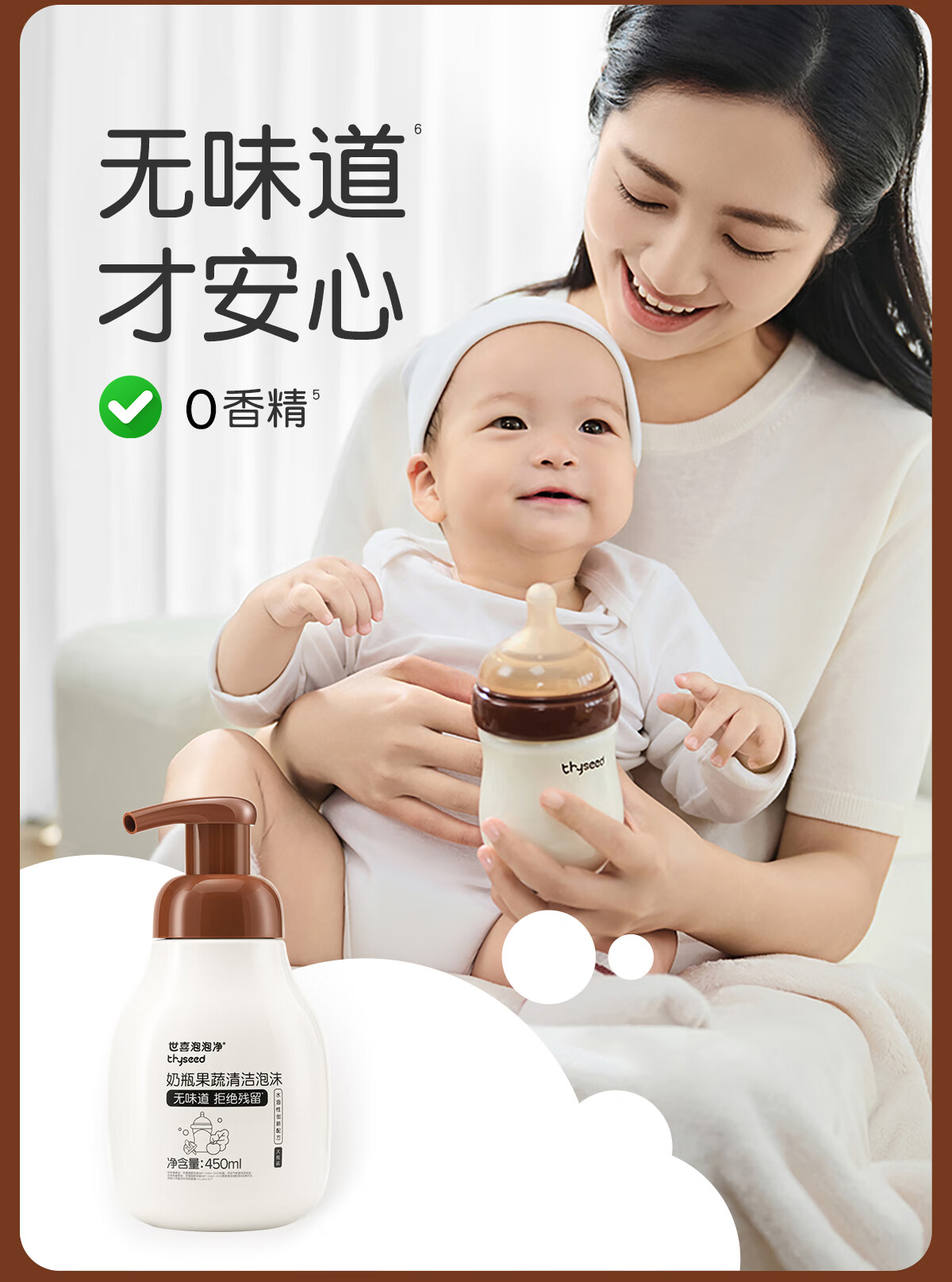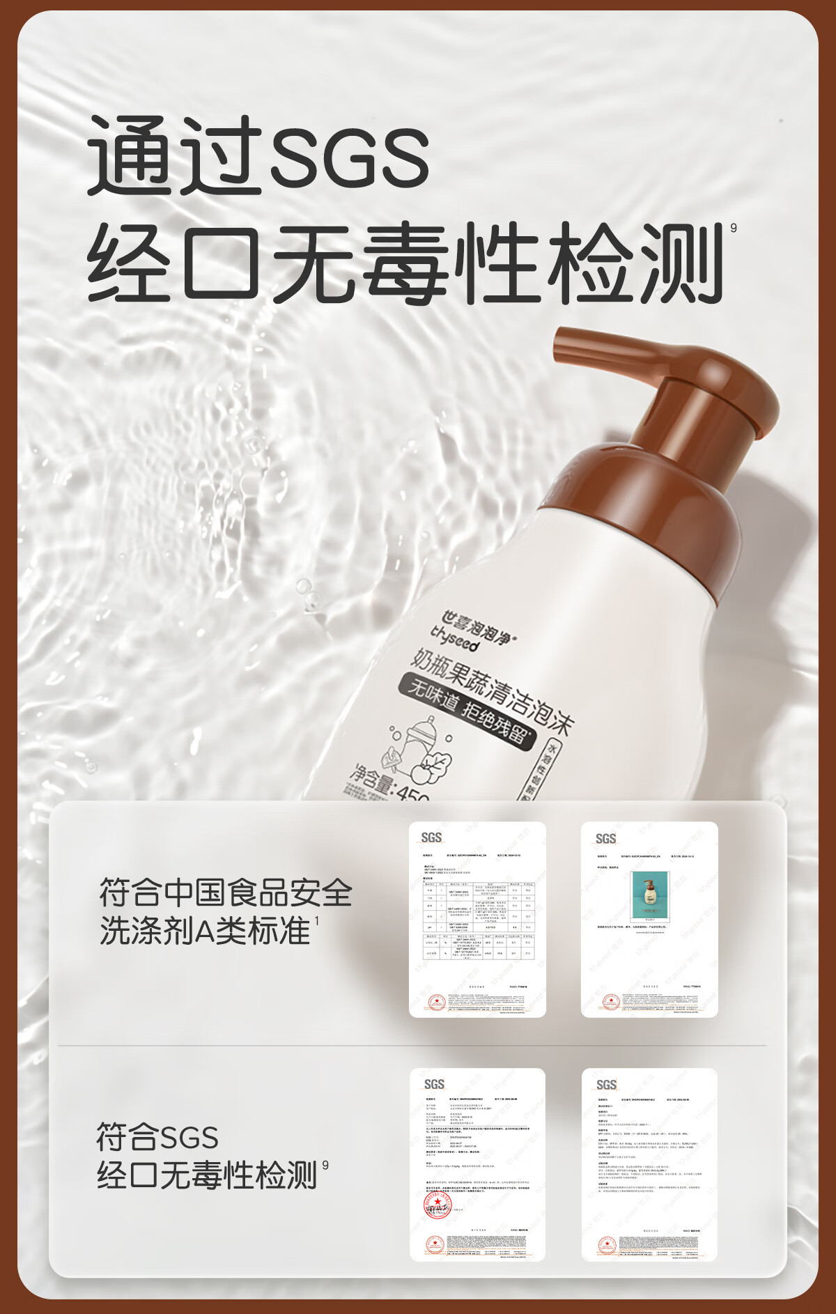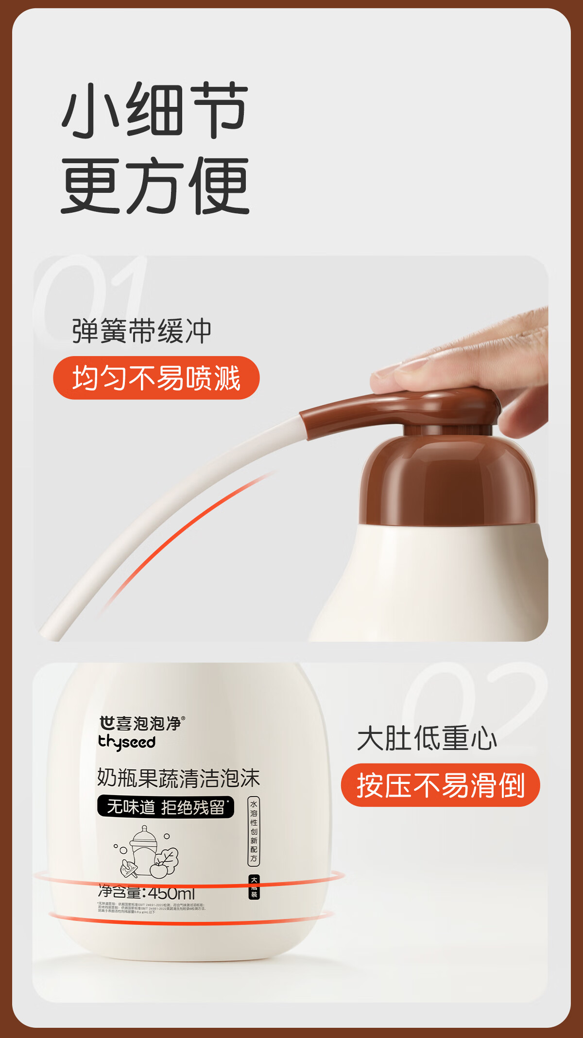 世喜奶瓶清洗剂婴儿果蔬餐具清洗剂植萃配方温和不伤手清洁泡沫 替换装450ml(无泵头)
