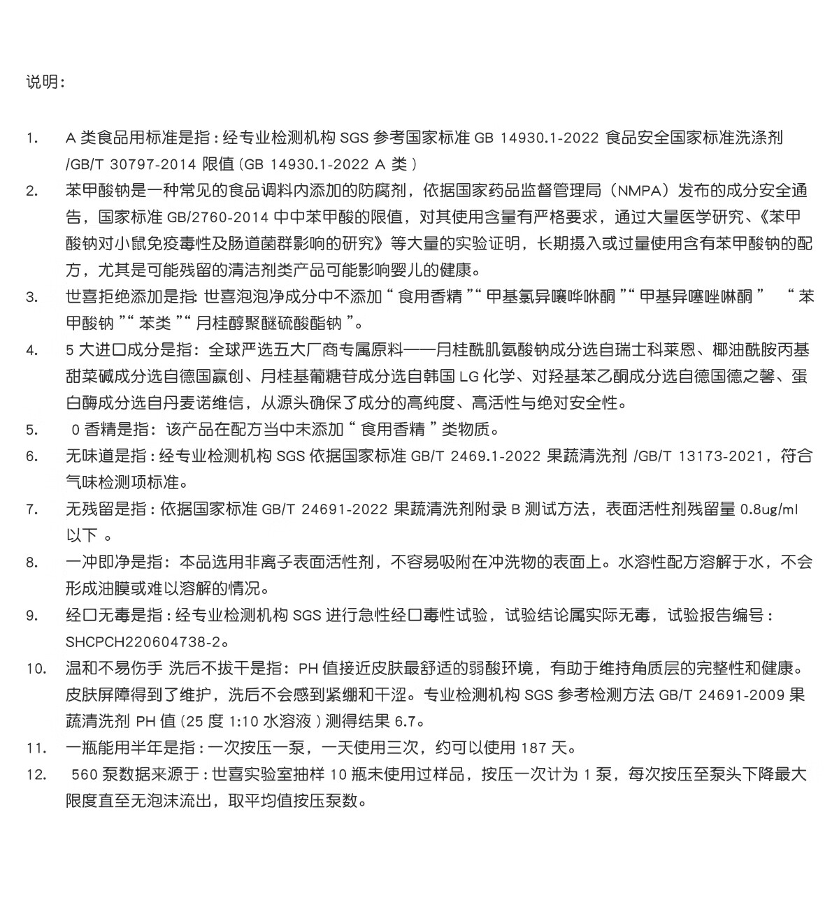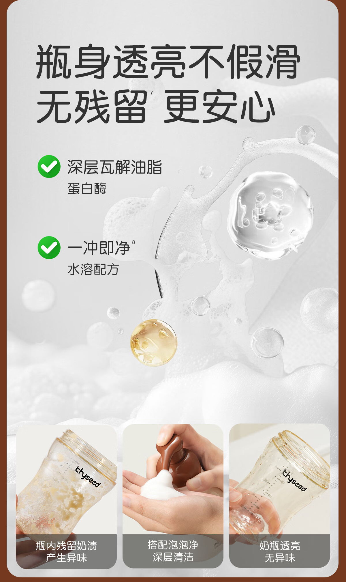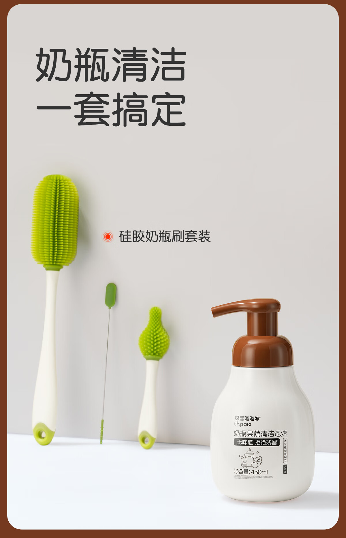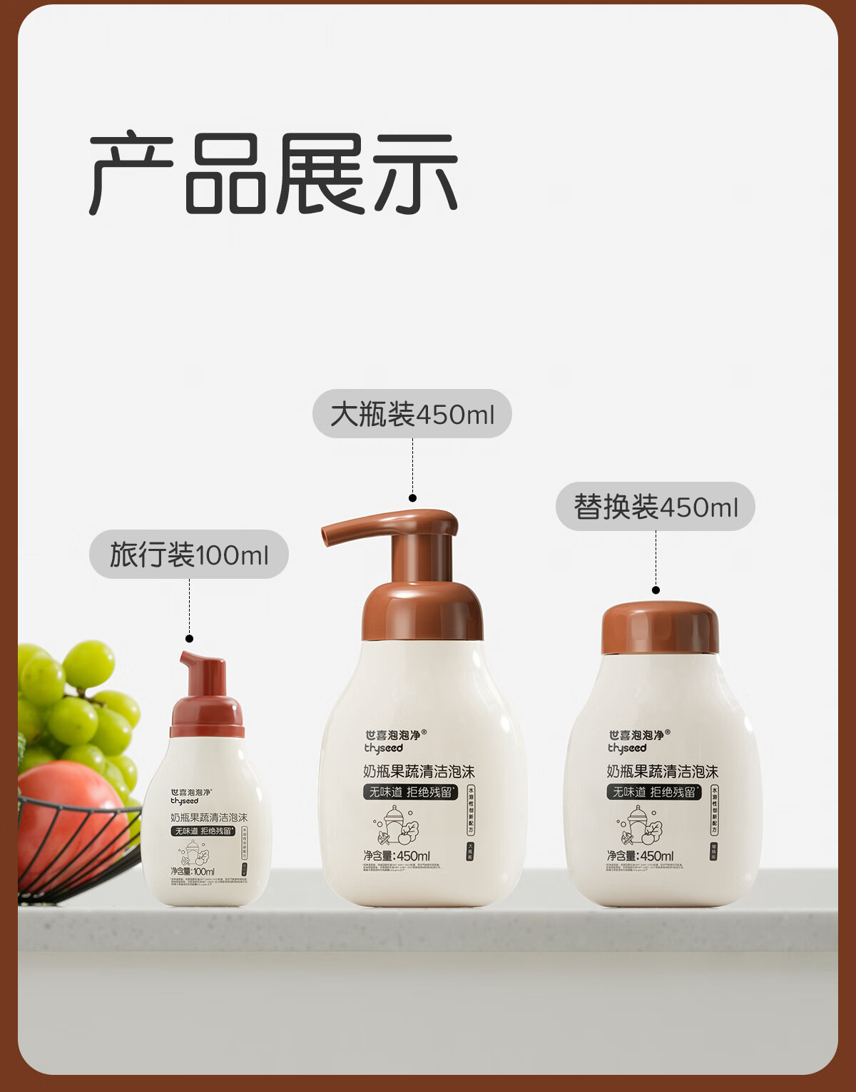 世喜奶瓶清洗剂婴儿果蔬餐具清洗剂植萃配方温和不伤手清洁泡沫 替换装450ml(无泵头)