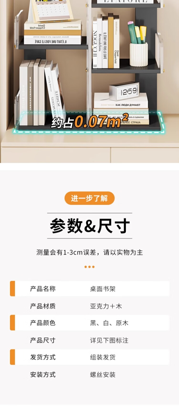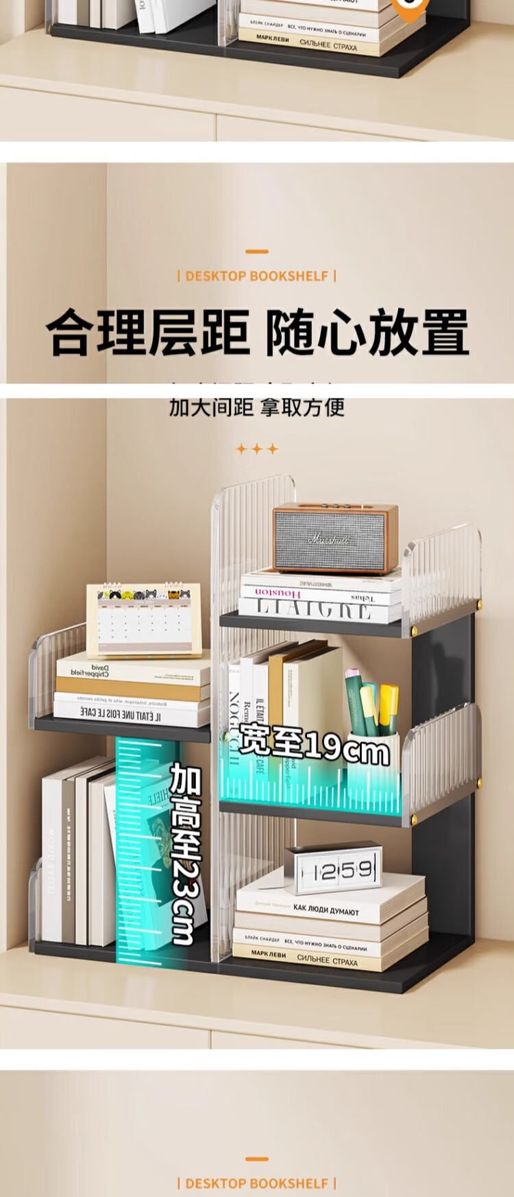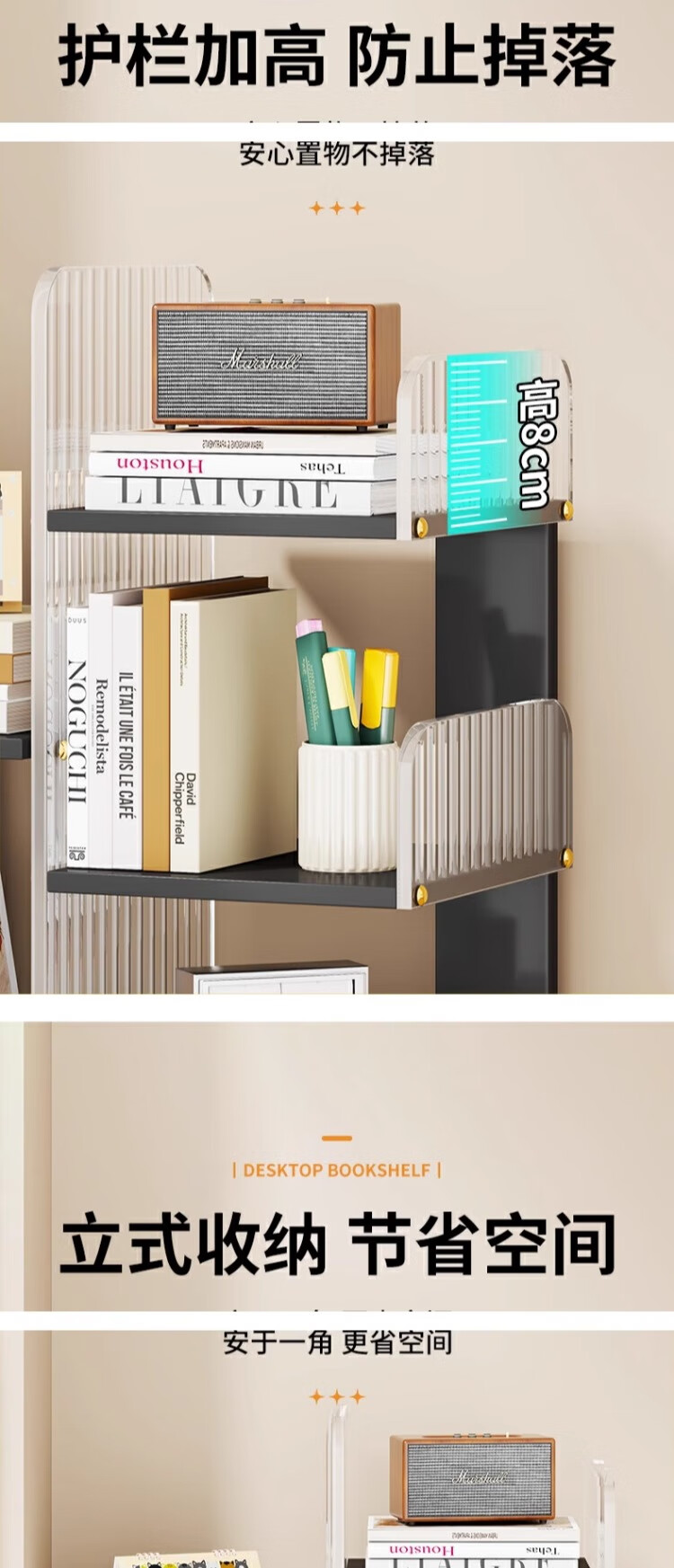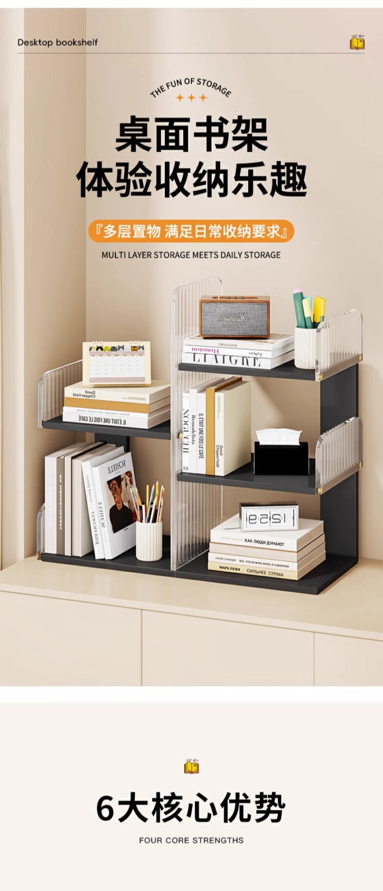 尔思家桌面置物架办公室书柜家用客厅简易书架书立多层储物柜桌上收纳架 黑色板-波纹款