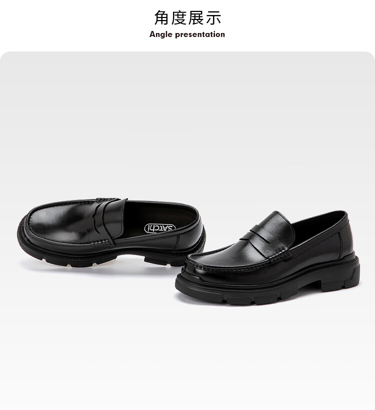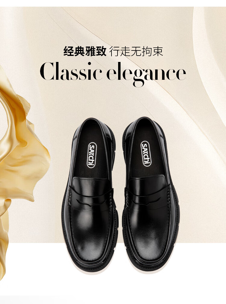 沙驰(SATCHI)男鞋【牛皮】新款轻底乐福鞋轻奢商务皮鞋简约百搭秋冬正装皮鞋 黑色(51XVB6599) 37