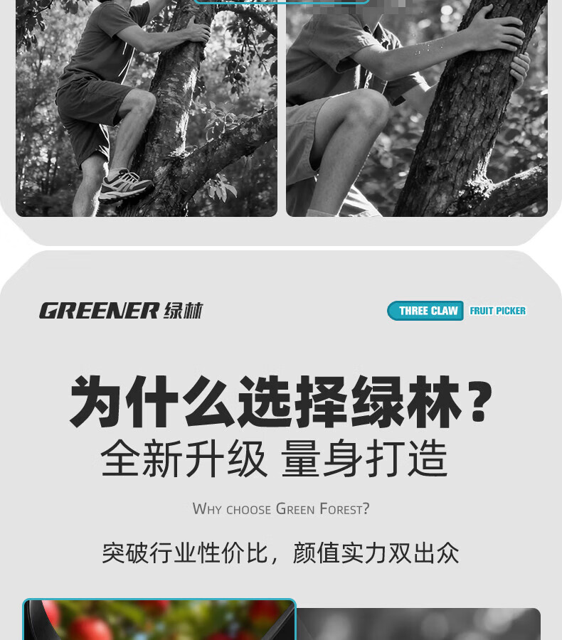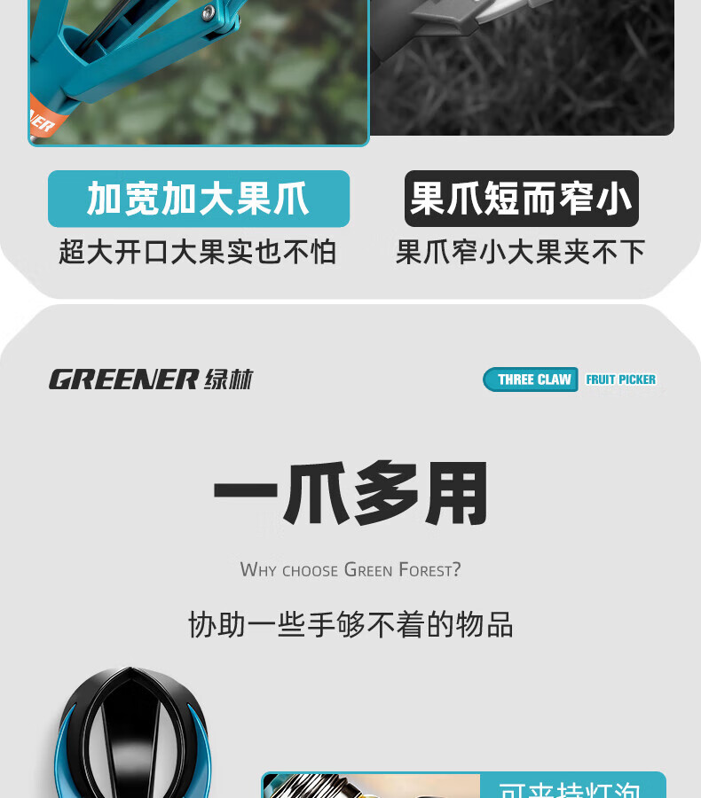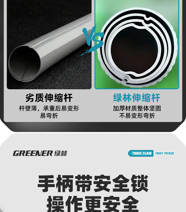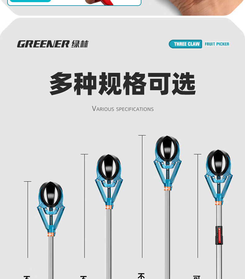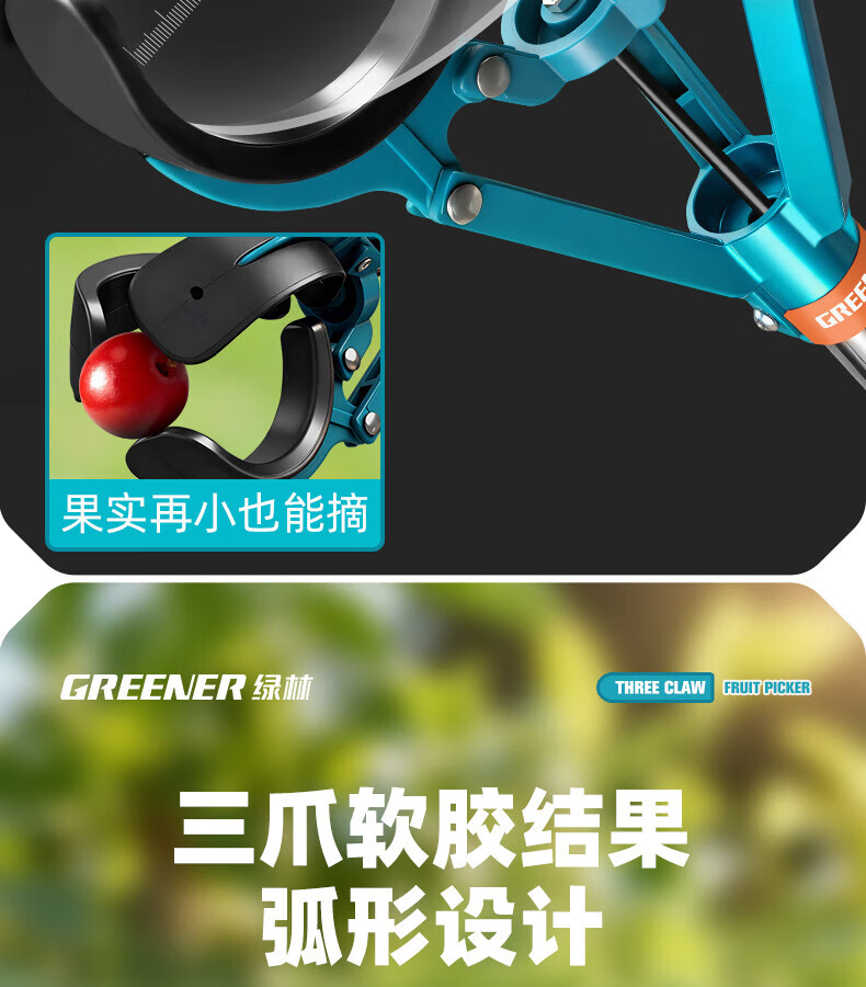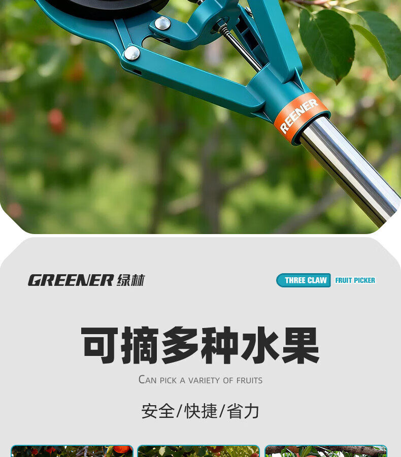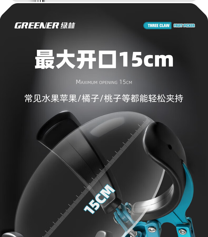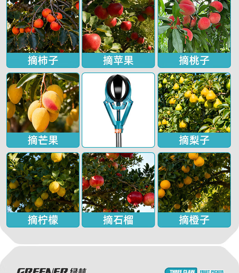 绿林(GREENER)高空摘果神器摘苹果三爪多功能专用摘果器采摘水果石榴梨柿子 三爪摘果器-1.5米【单节】0.6kg