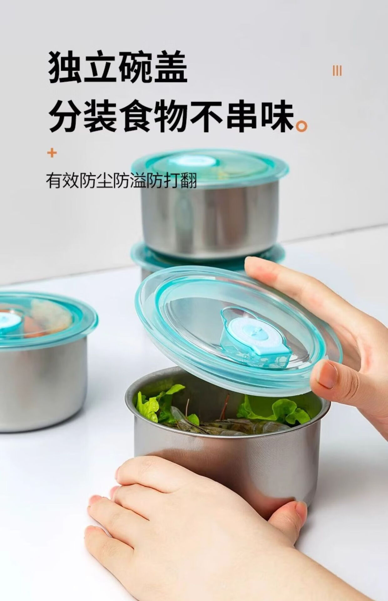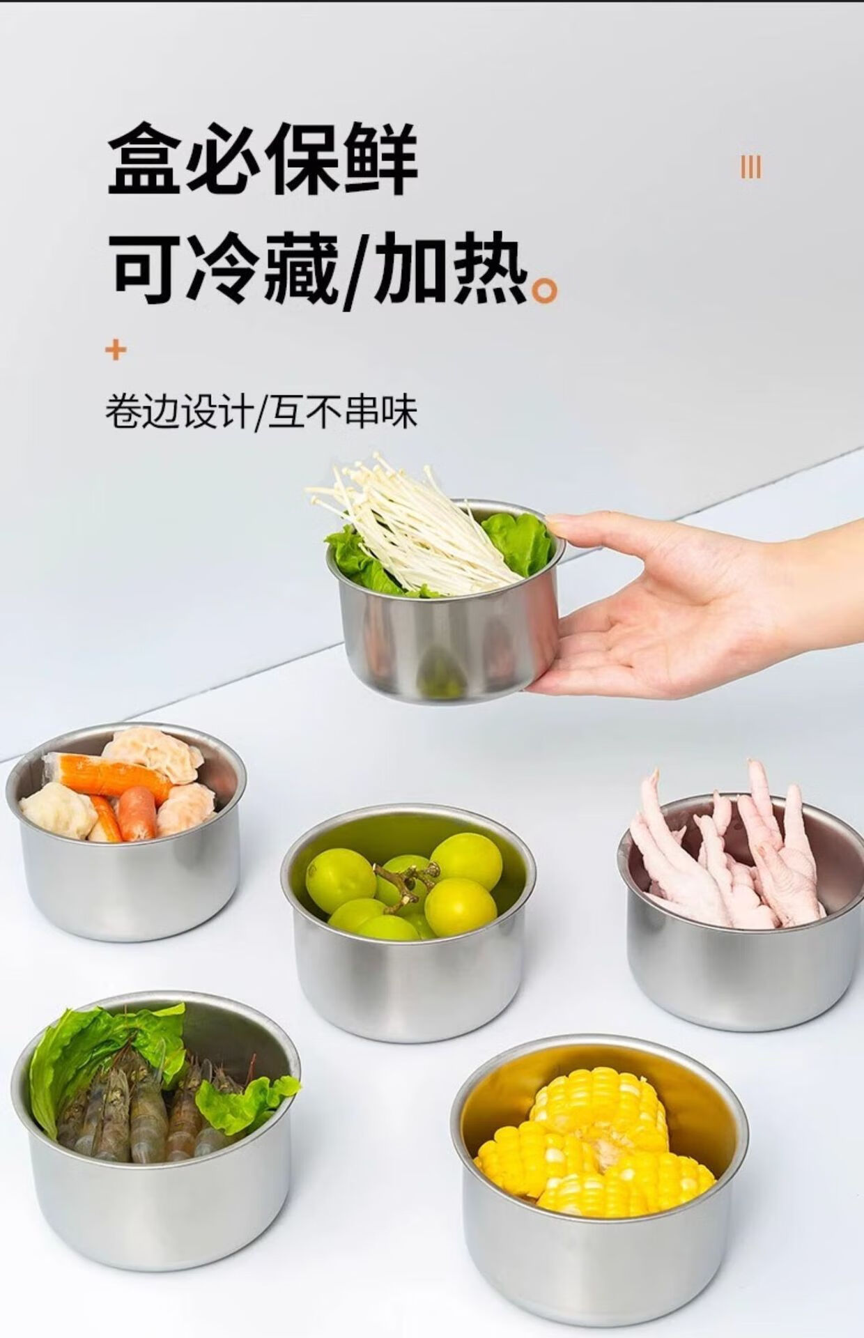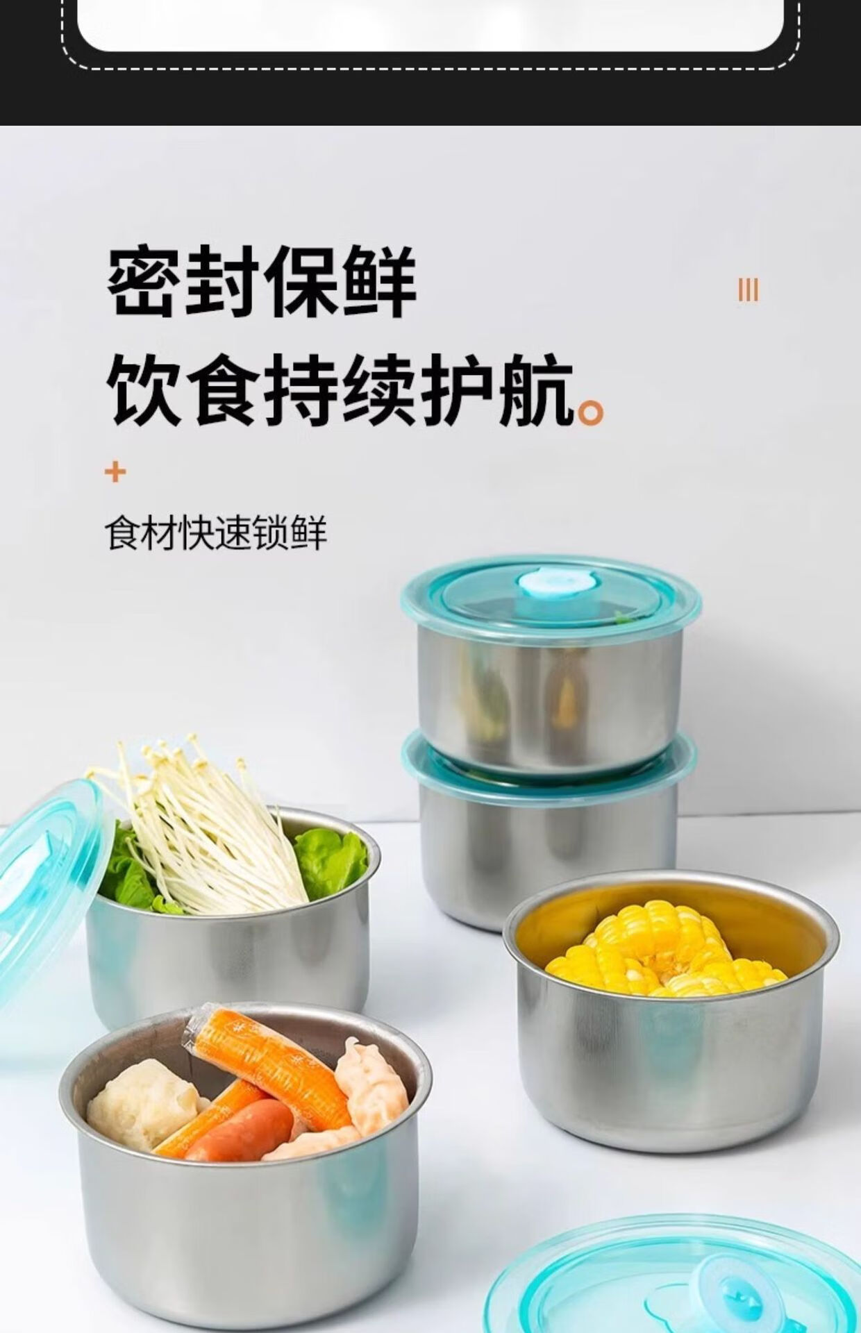 不锈钢保鲜盒冰箱密封盒带盖圆形食材分装盒野餐盒水果收纳盒饭盒 密封碗1个