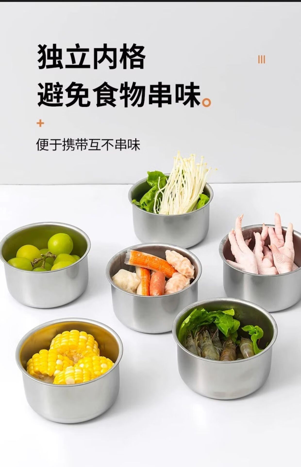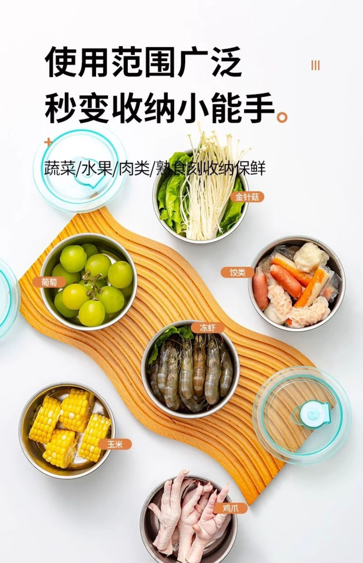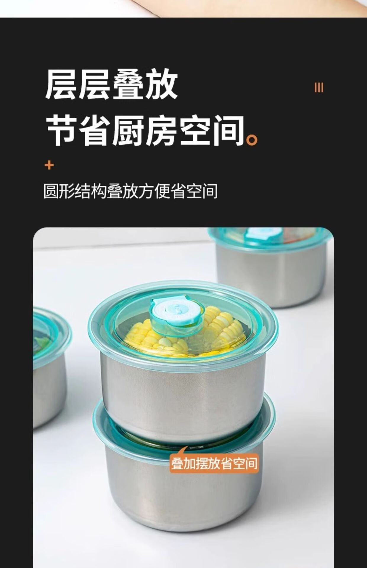 不锈钢保鲜盒冰箱密封盒带盖圆形食材分装盒野餐盒水果收纳盒饭盒 密封碗1个