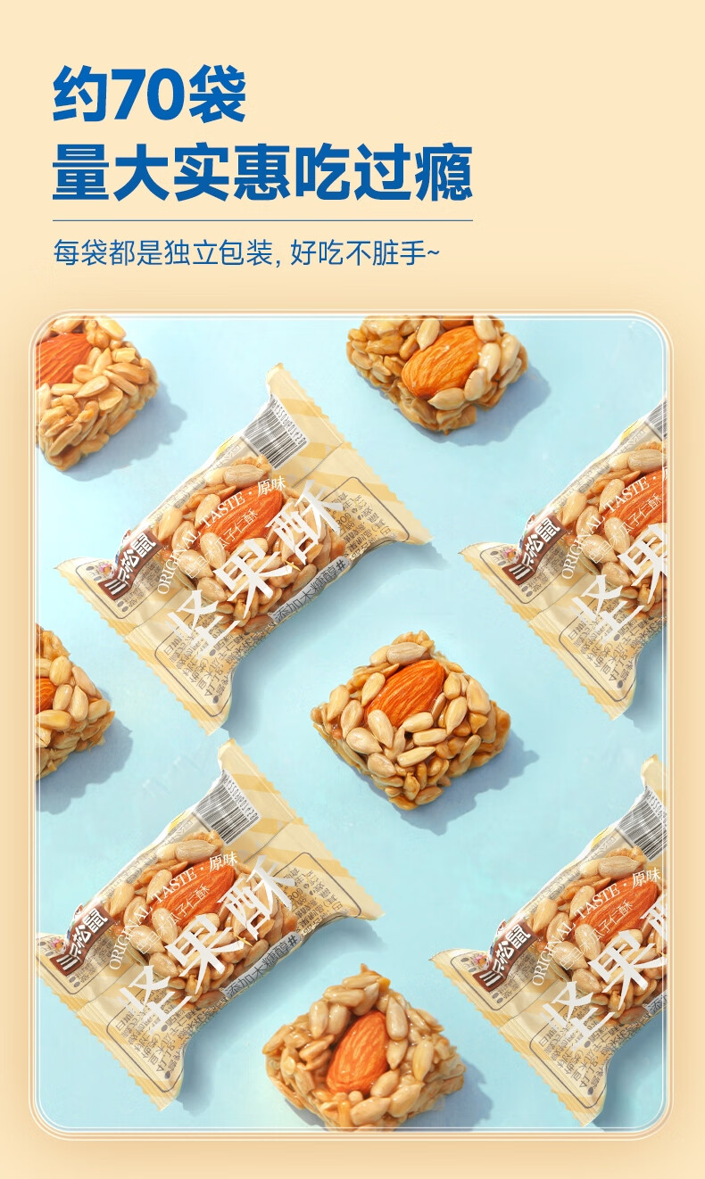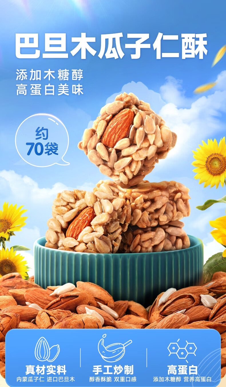 三只松鼠巴旦木瓜子仁酥490g 坚果炒货传统零食学生老人办公室糕点点心