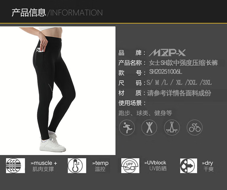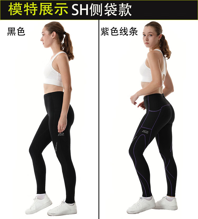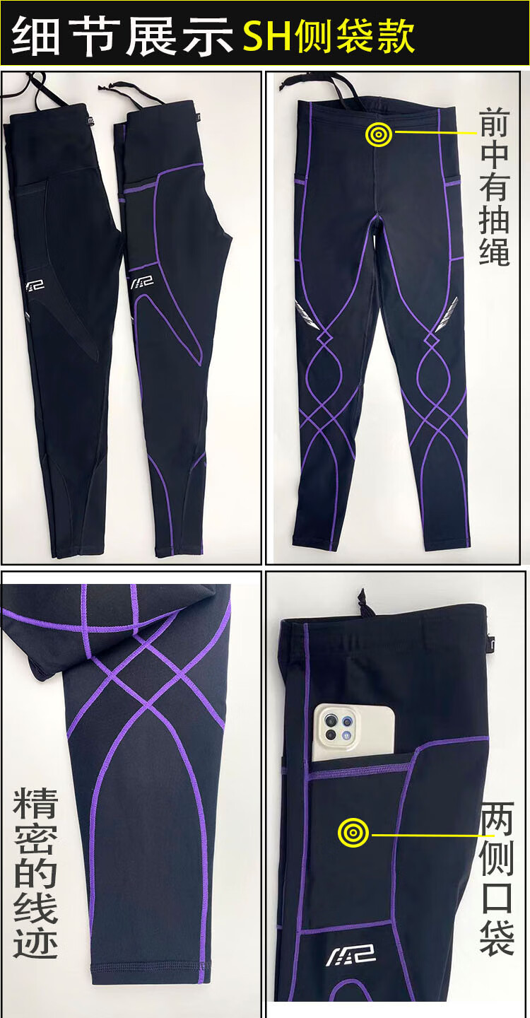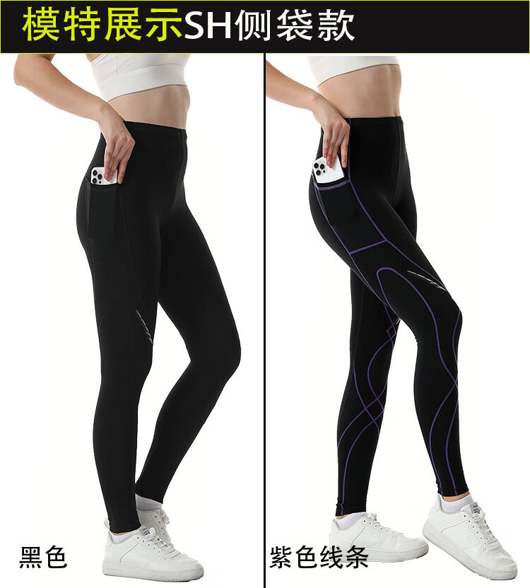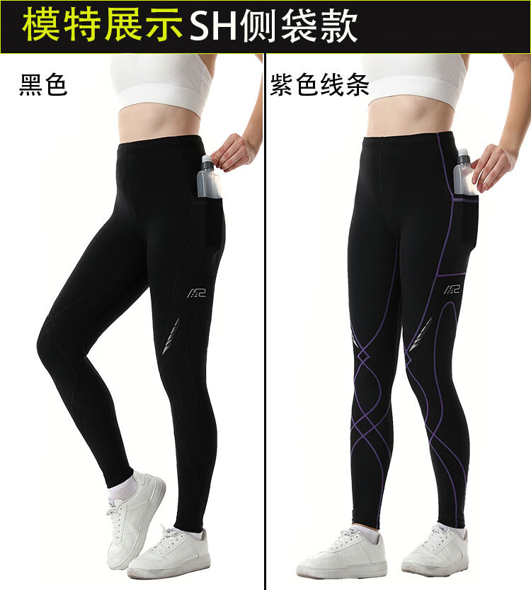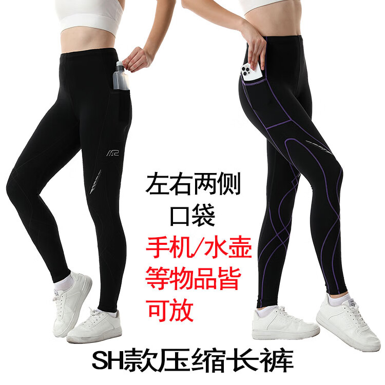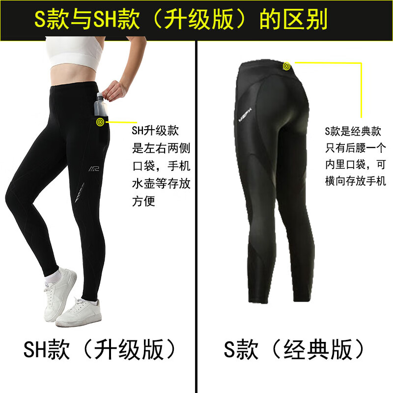 MZPX名泽品压缩裤女SH款运动马拉松跑步护膝护腰健身速干紧身长裤秋冬 女SH款(左右口袋)黑色 磨毛绒4度至20度气温合适 3XL (裤腰周长平量80cm)
