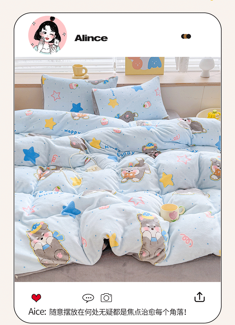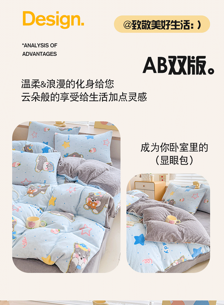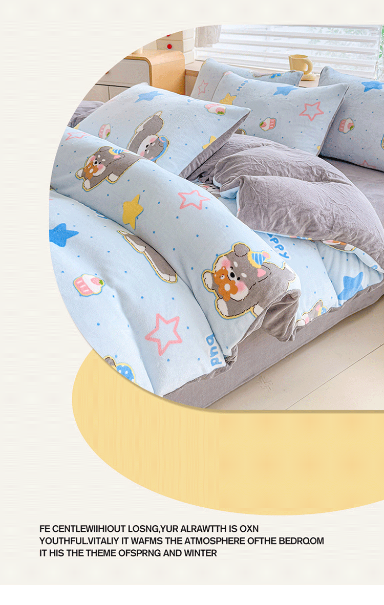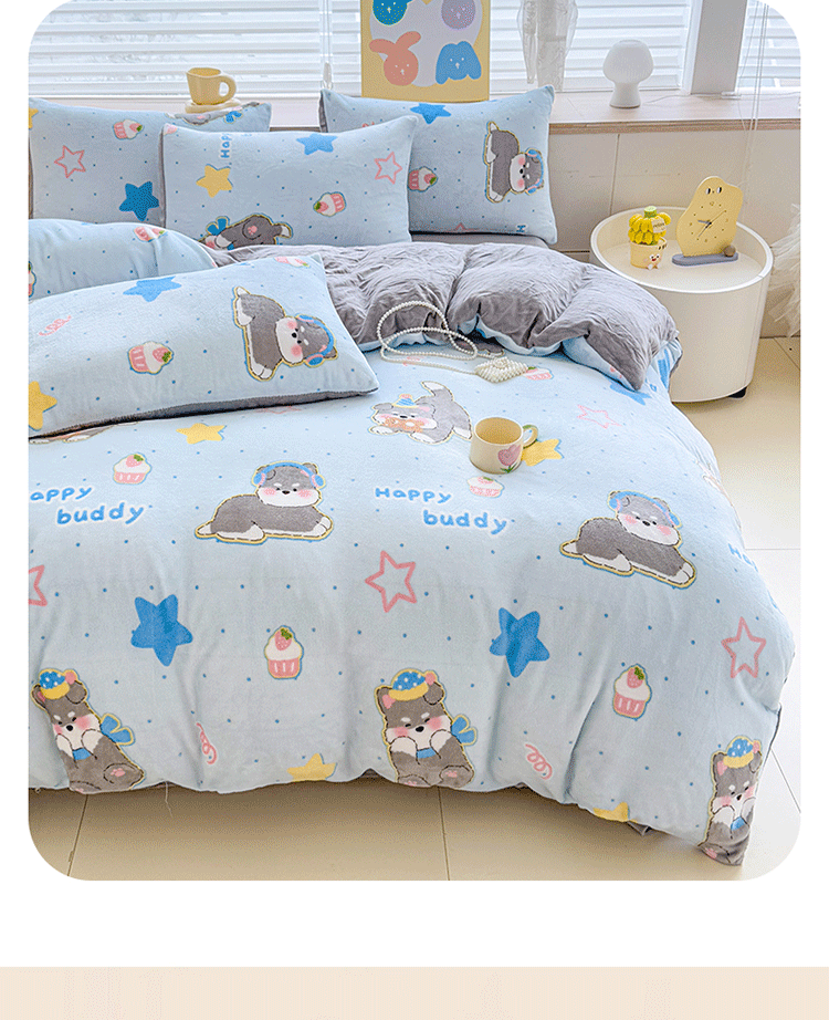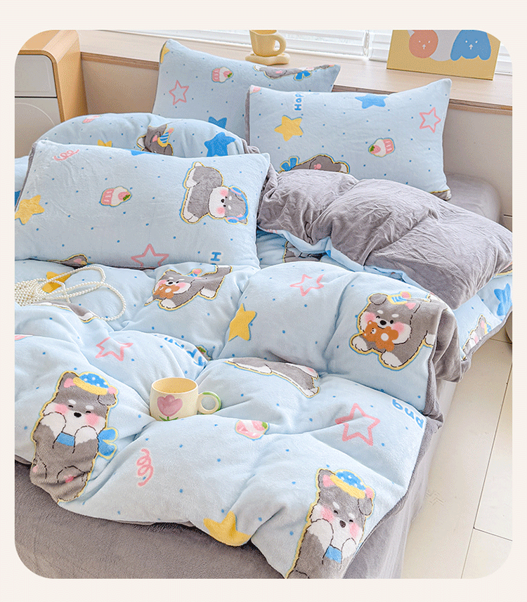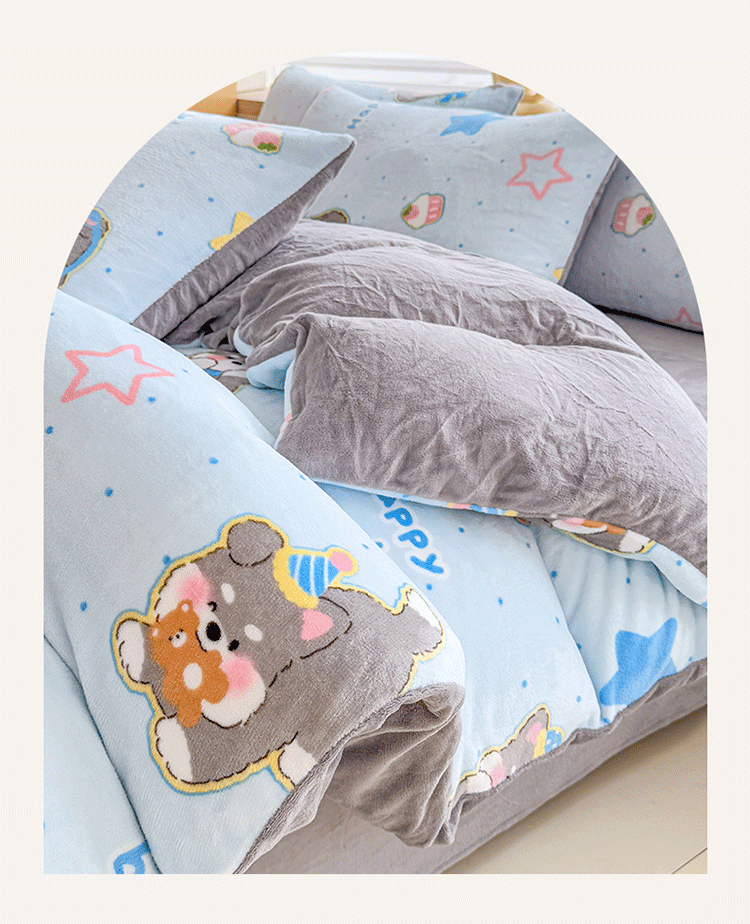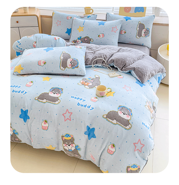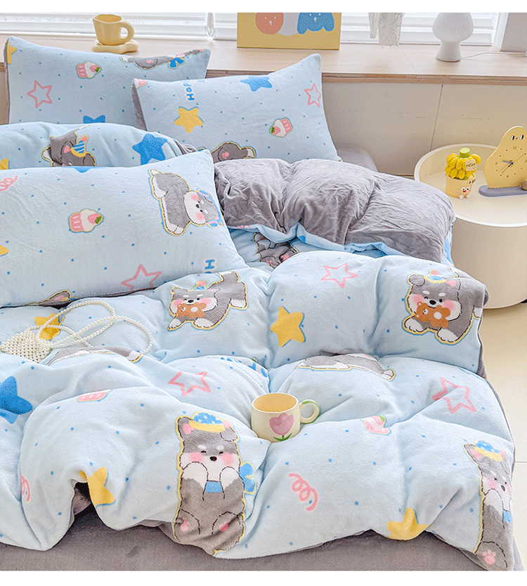 软贝小清新牛奶绒床上四件套保暖毛绒床单被套学生宿舍秋冬款三件套 咔咔小熊 床单款 2.0m 被套200*230cm 四件套