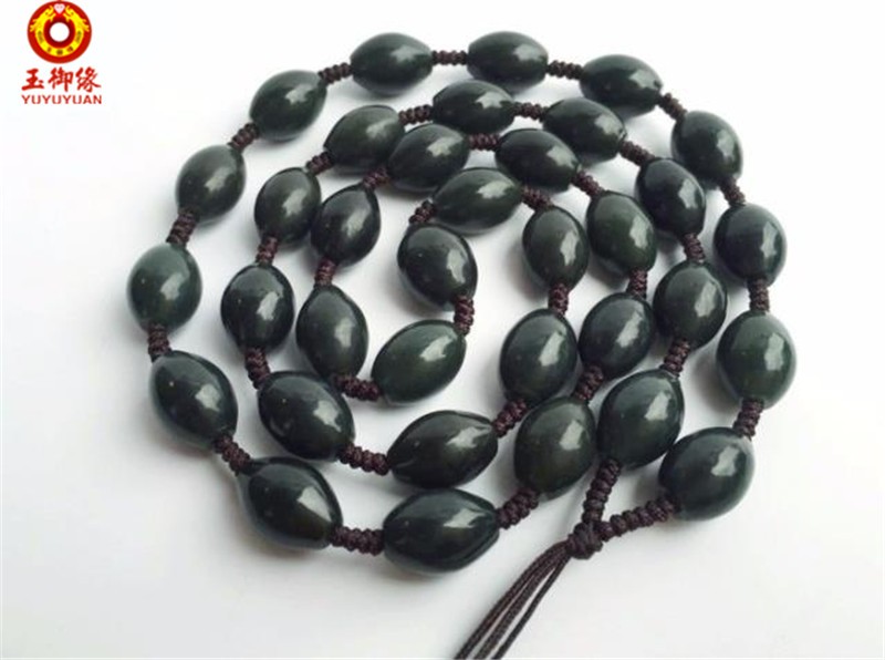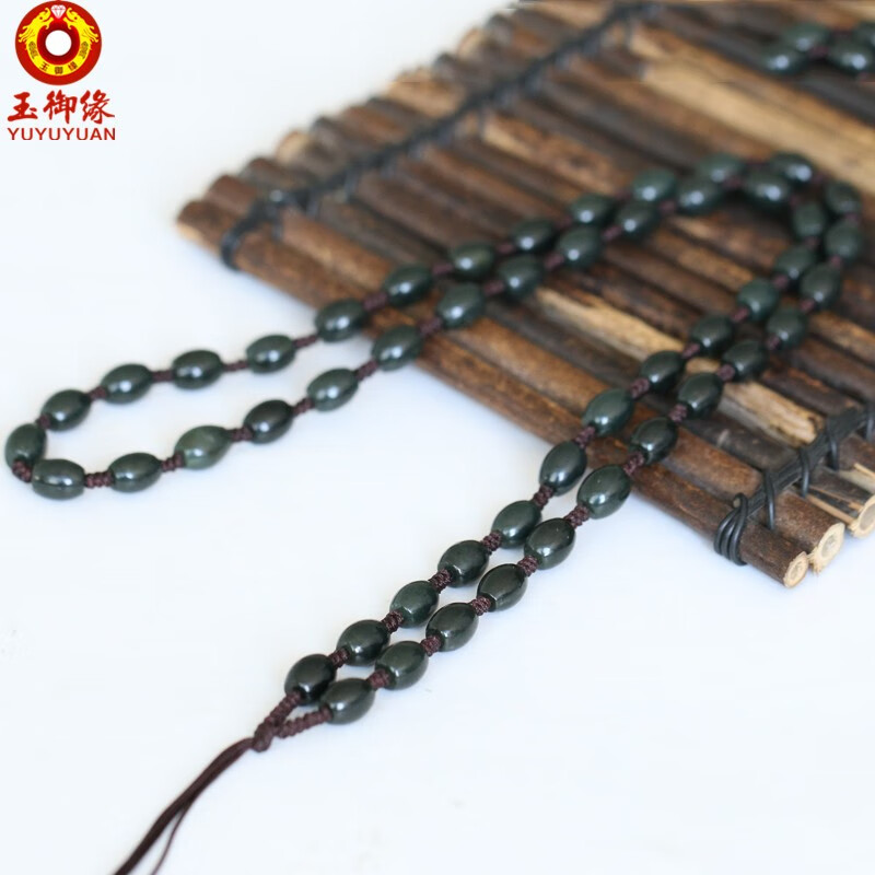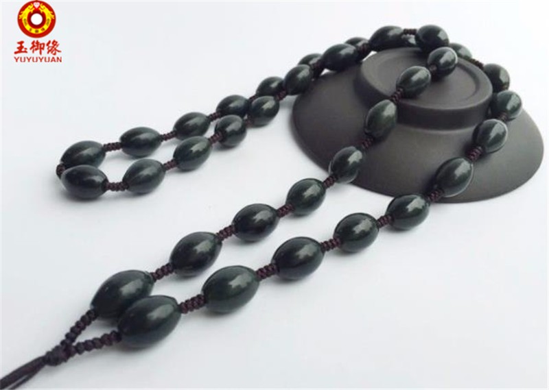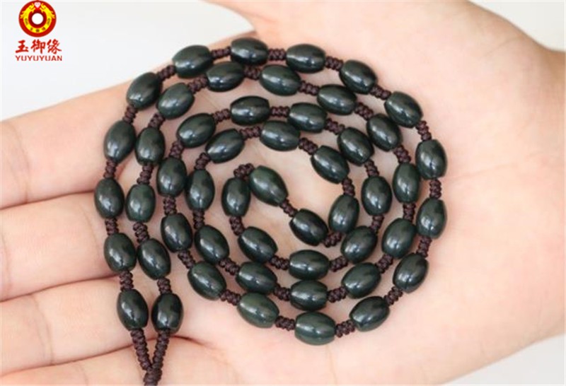 玉御缘青玉玉石项链米珠链 吊坠玉石挂绳毛衣链长项链颈链男女款礼物 珠子直径 6毫米