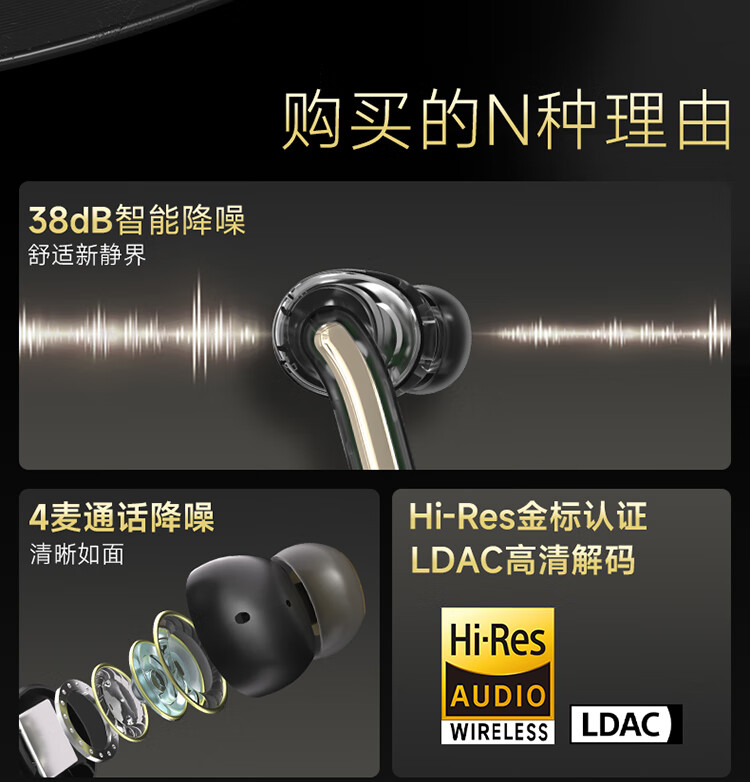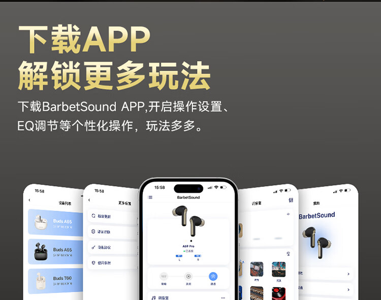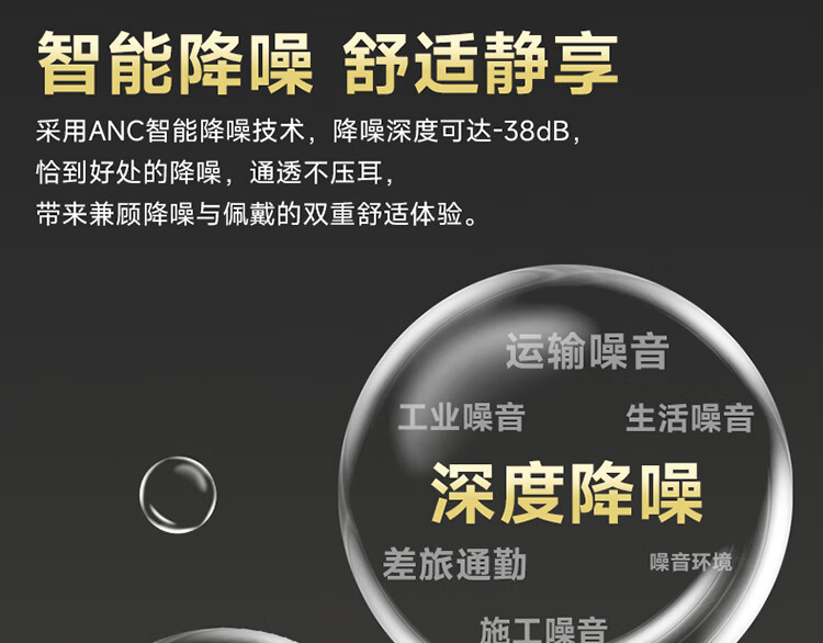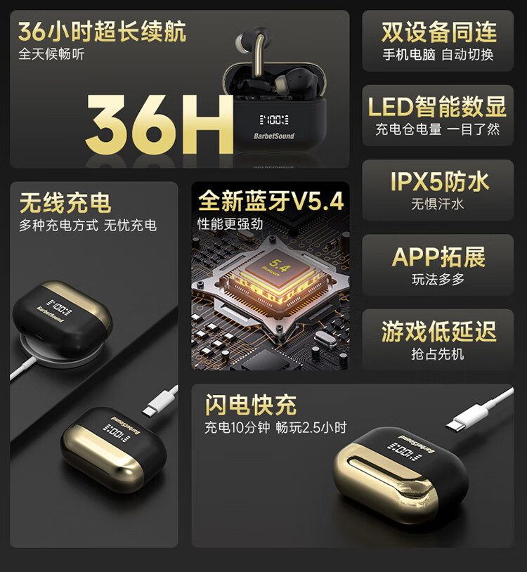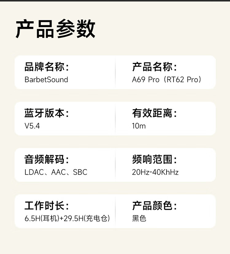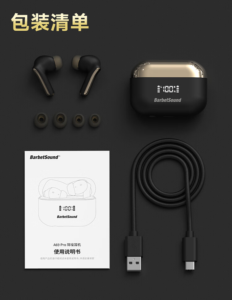 BarbetSound 真无线主动降噪蓝牙耳机 入耳式耳机 无线耳机 金标认证 蓝牙5.4 超长续航 适用小米手机 黑色【A69 Pro金标款】
