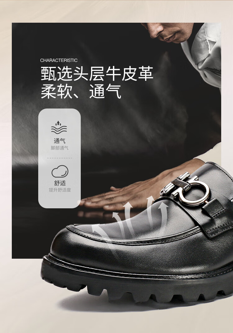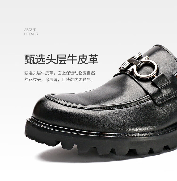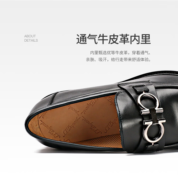S.T.Dupont都彭男士厚底皮鞋马衔扣英伦休闲商务牛皮舒适乐福鞋 E29112662 黑色 44