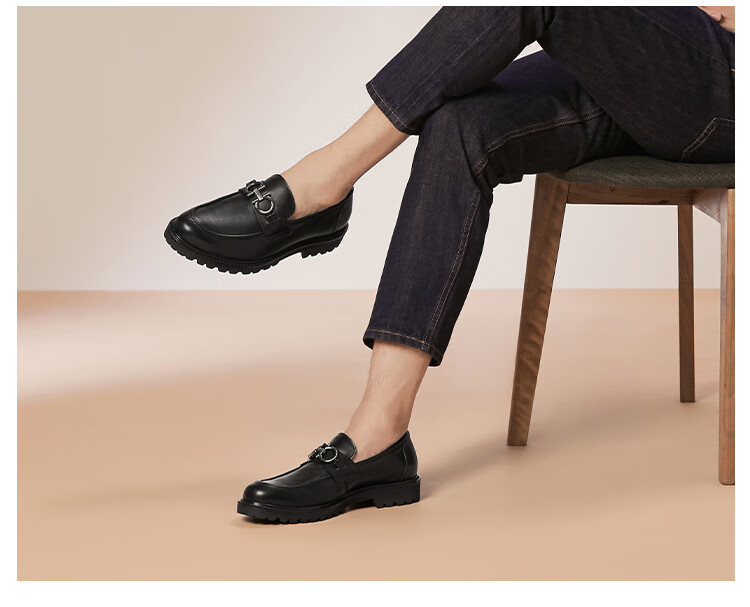 奥康(Aokang)时尚柔软男士商务鞋休闲羊皮鞋百搭低帮男单鞋防滑耐磨轻盈鞋 黑色T243214333 39