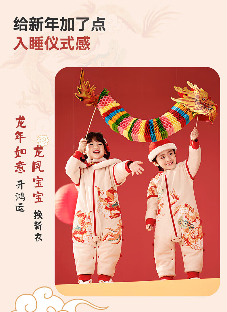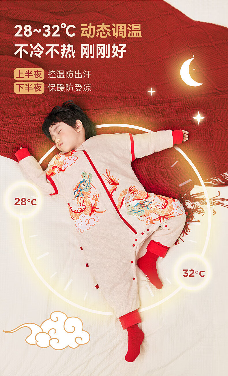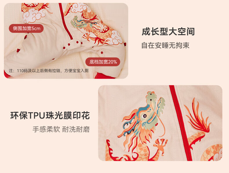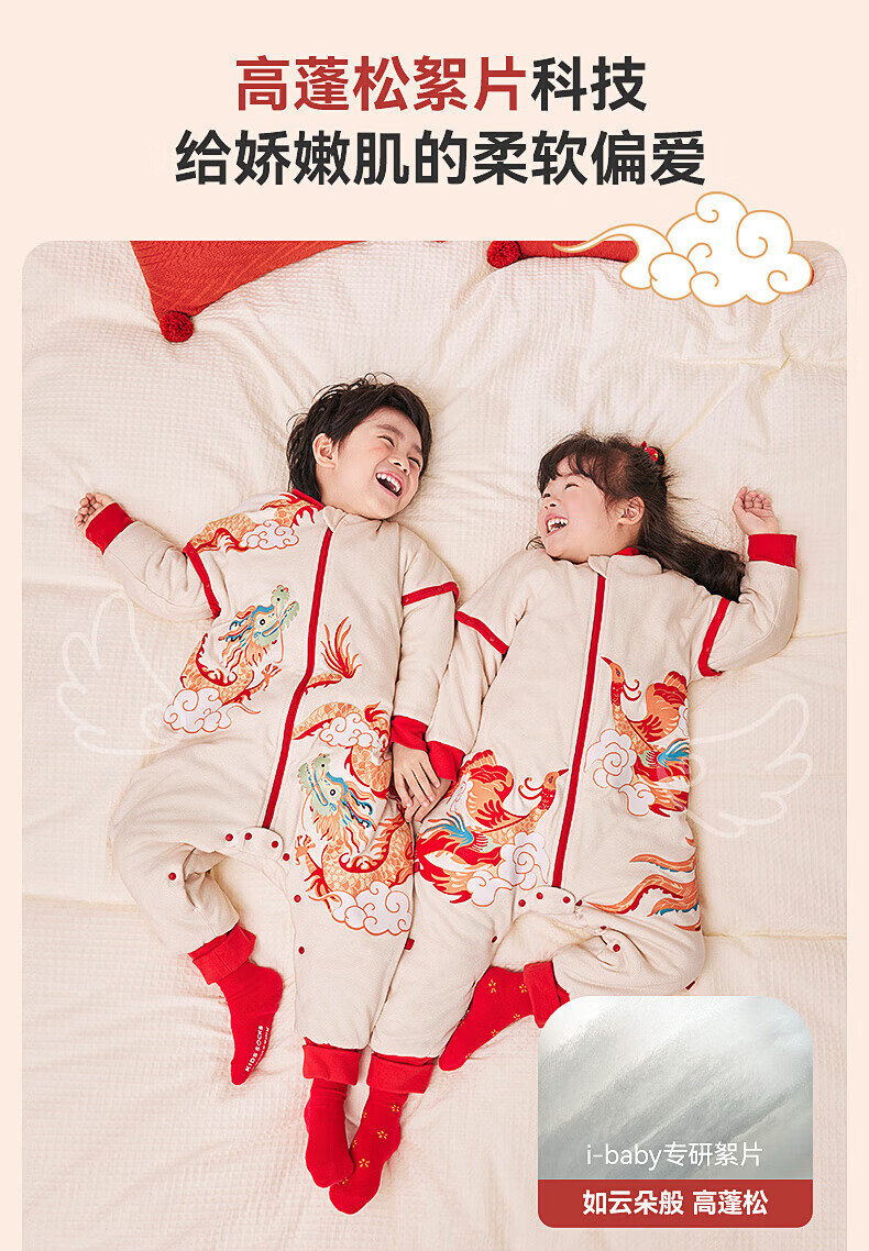 ibaby新春恒温宝宝睡袋儿童防踢被子冬季夹棉婴儿恒温分腿睡袋男女宝 【暖冬】凤舞九天 (适用14~18℃) 110码
