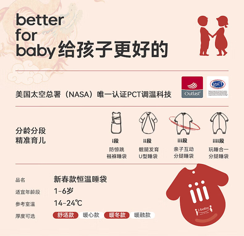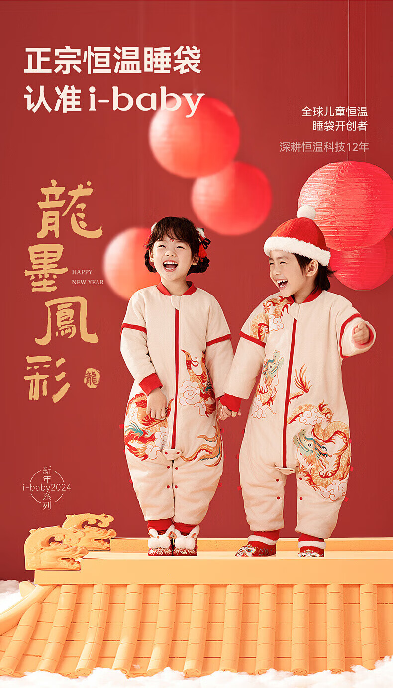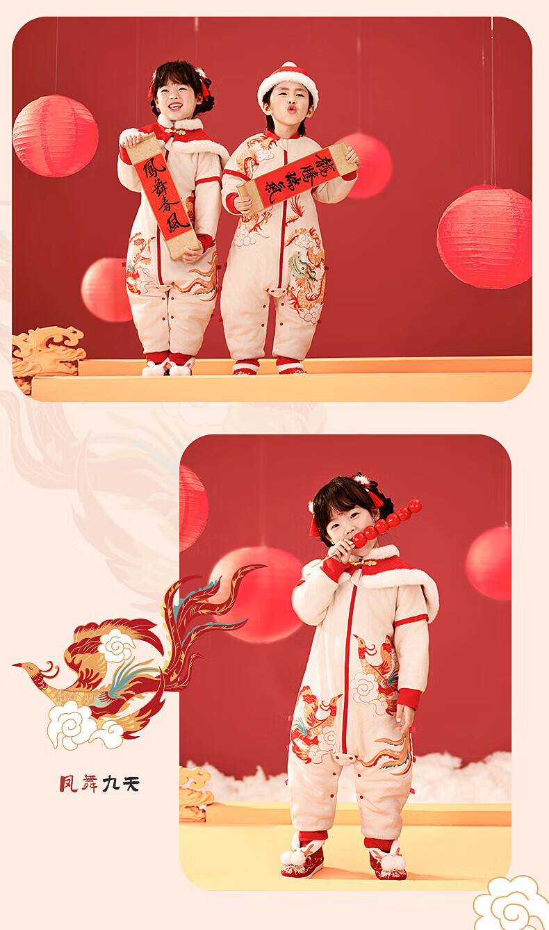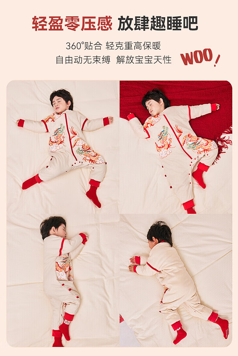 ibaby新春恒温宝宝睡袋儿童防踢被子冬季夹棉婴儿恒温分腿睡袋男女宝 【暖冬】凤舞九天 (适用14~18℃) 110码