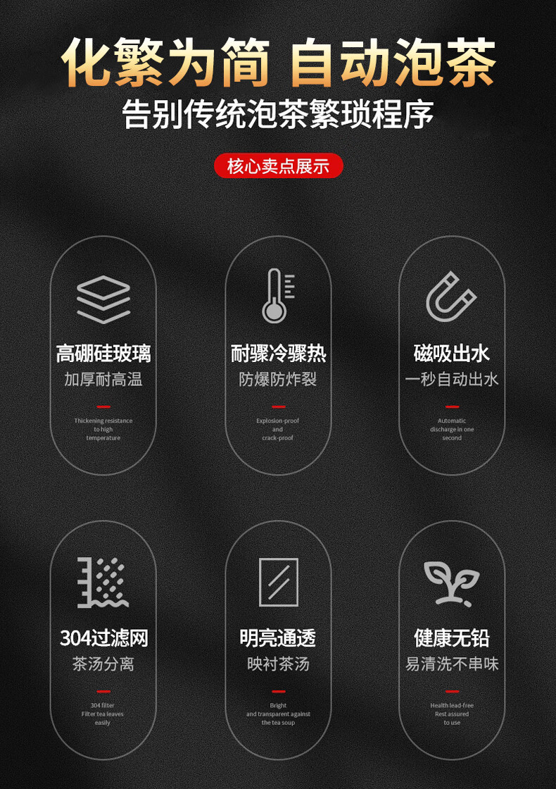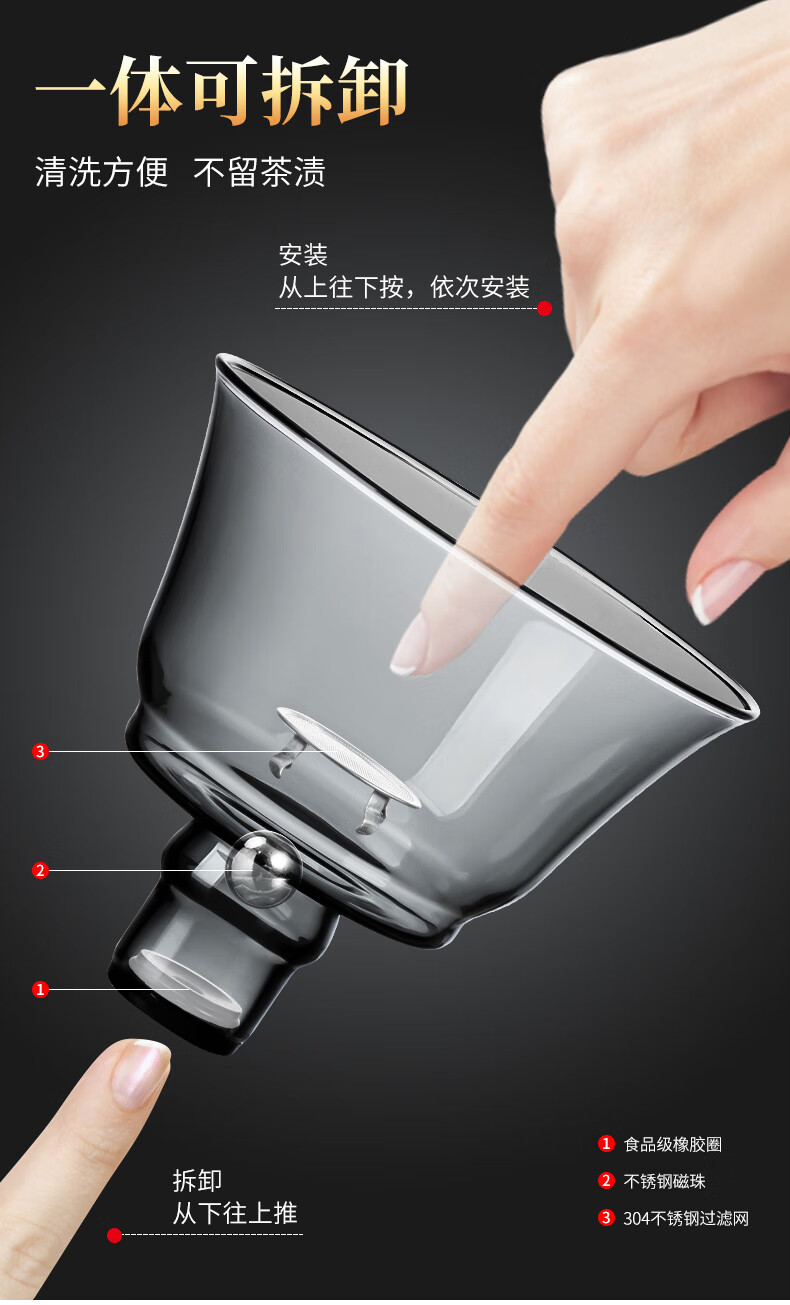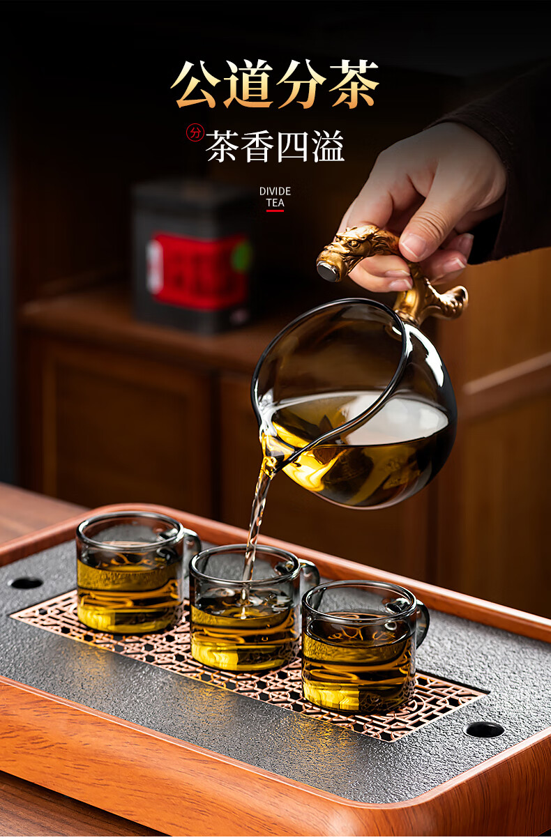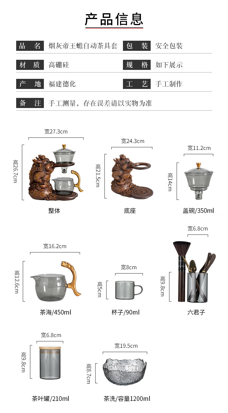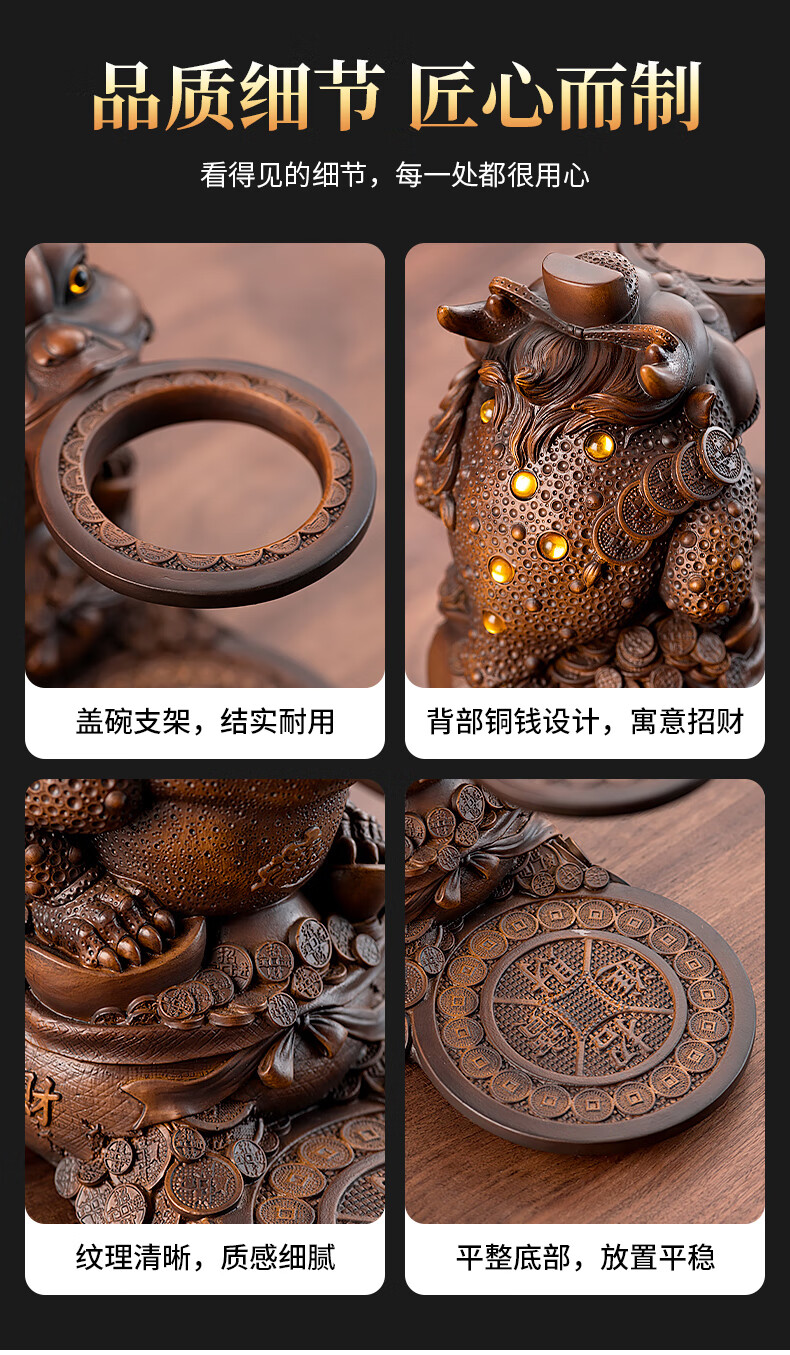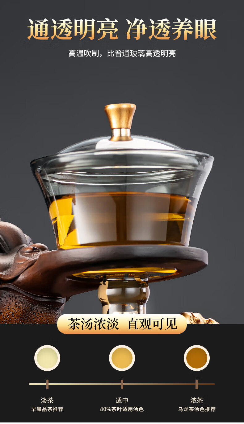 心茧创意磁吸自动茶具套装高档懒人泡茶壶家用防烫办公整套金蟾桌摆件 烟灰/自动进宝金蟾主机+六把杯
