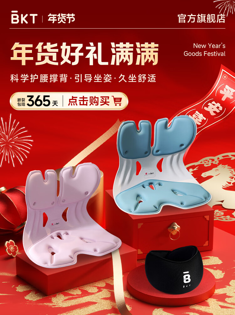 BKT护腰坐垫椅垫久坐神器人体工学腰靠垫美臀靠背垫汽车座椅元旦礼物 超大幻影灰【300斤内】