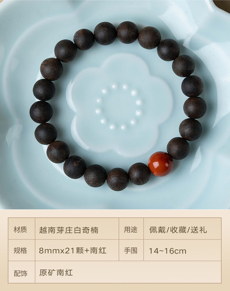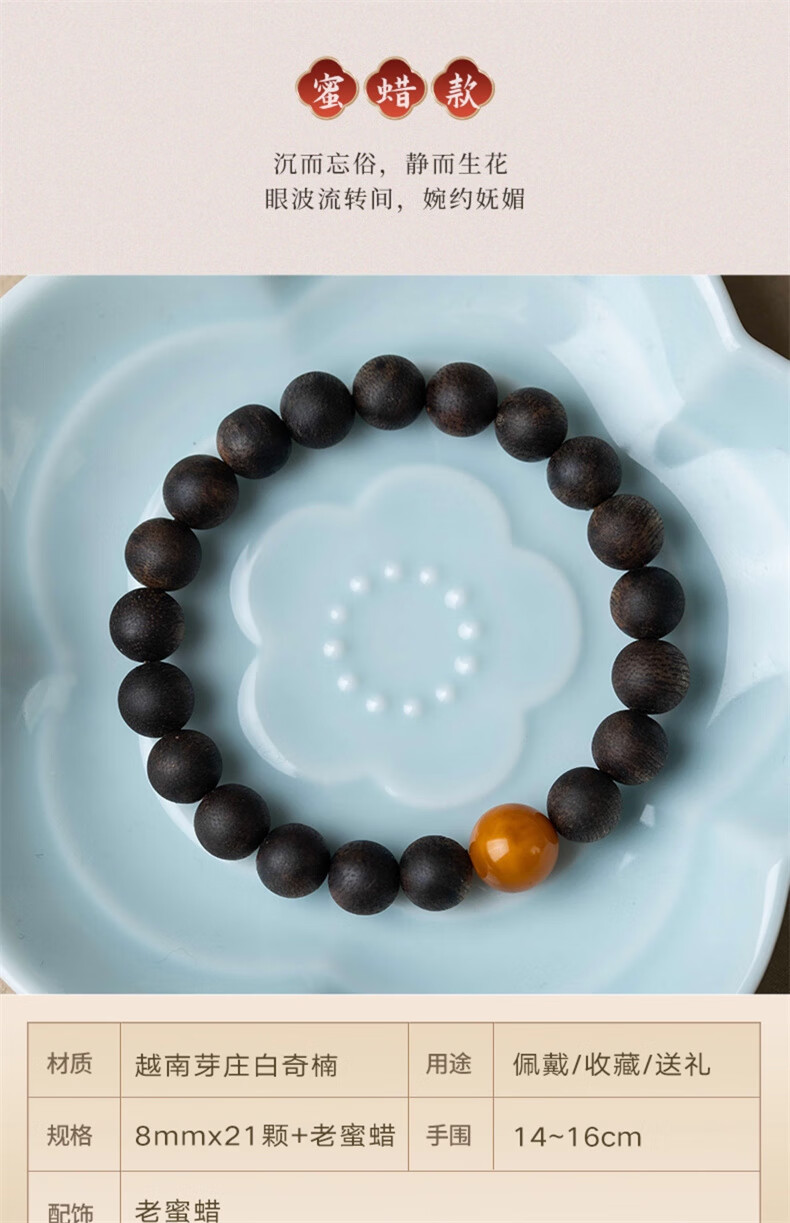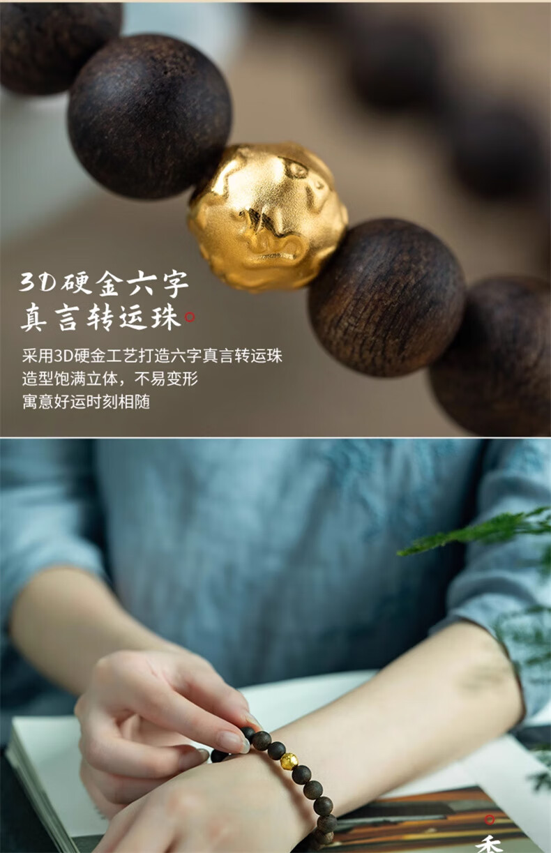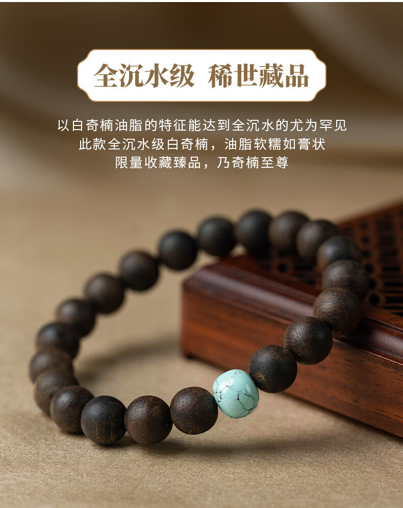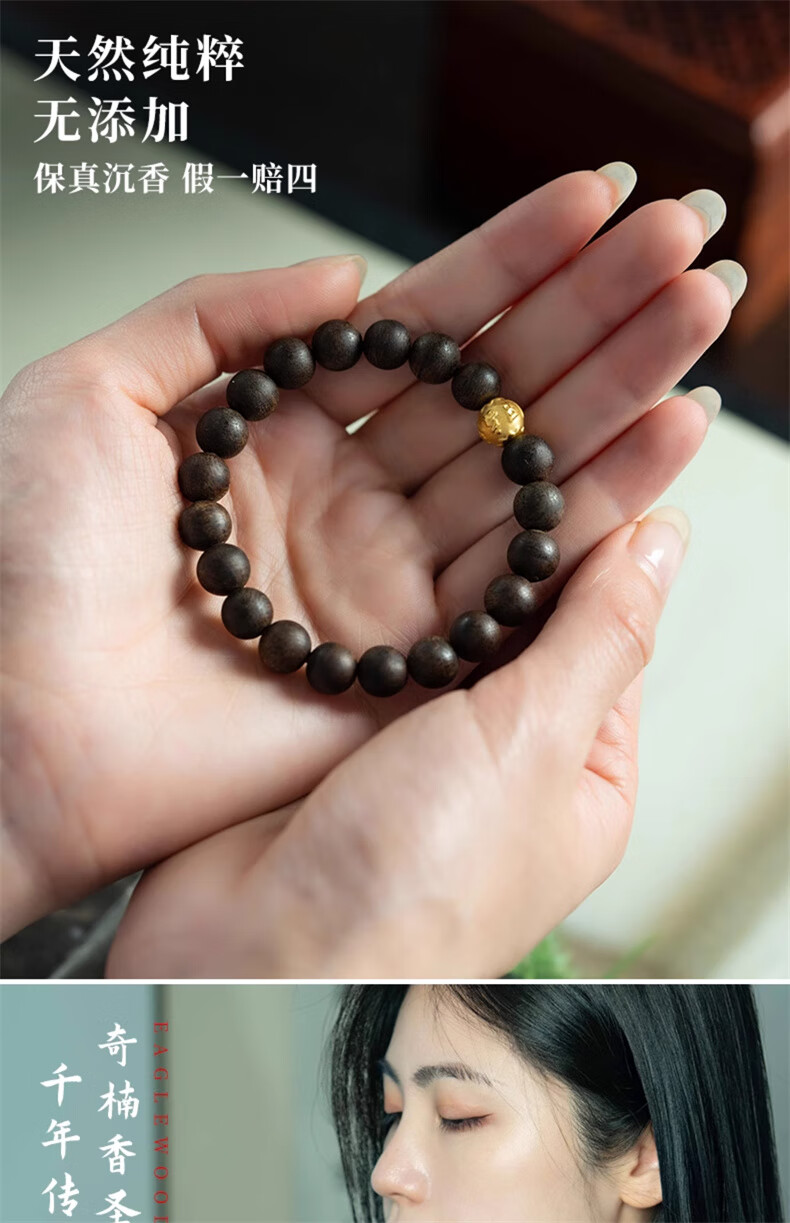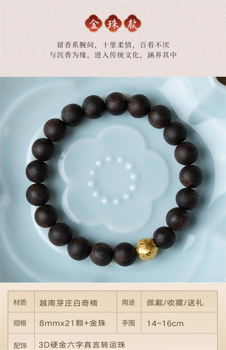 罗梅达尔天然沉香手串女越南芽庄白奇楠满油佛珠手串全沉水级手链生日礼物 全沉水级8mmx21颗+3D硬金转运珠