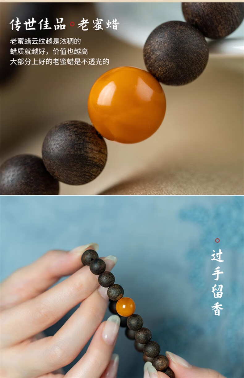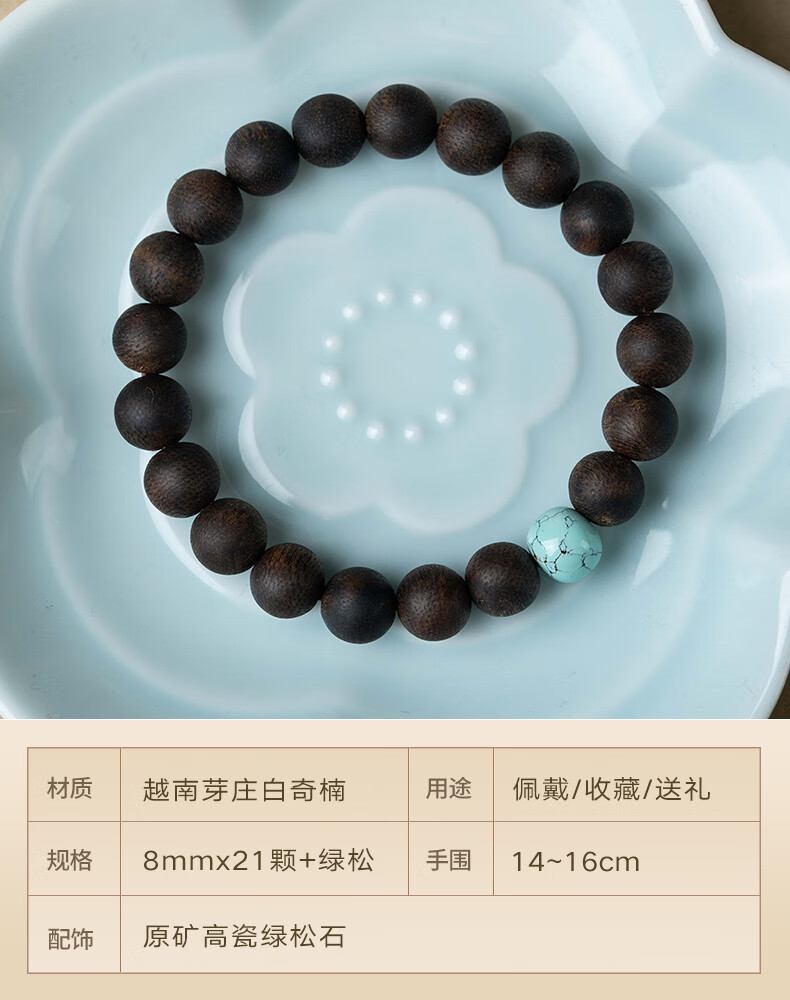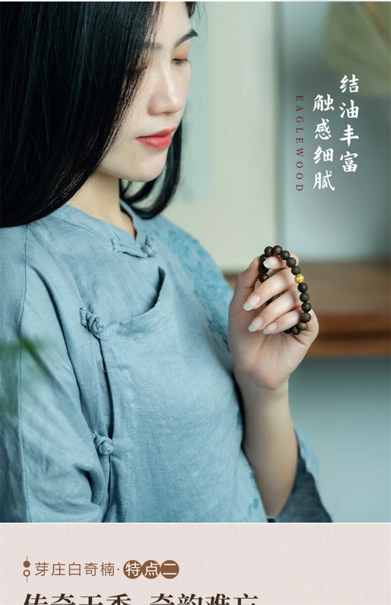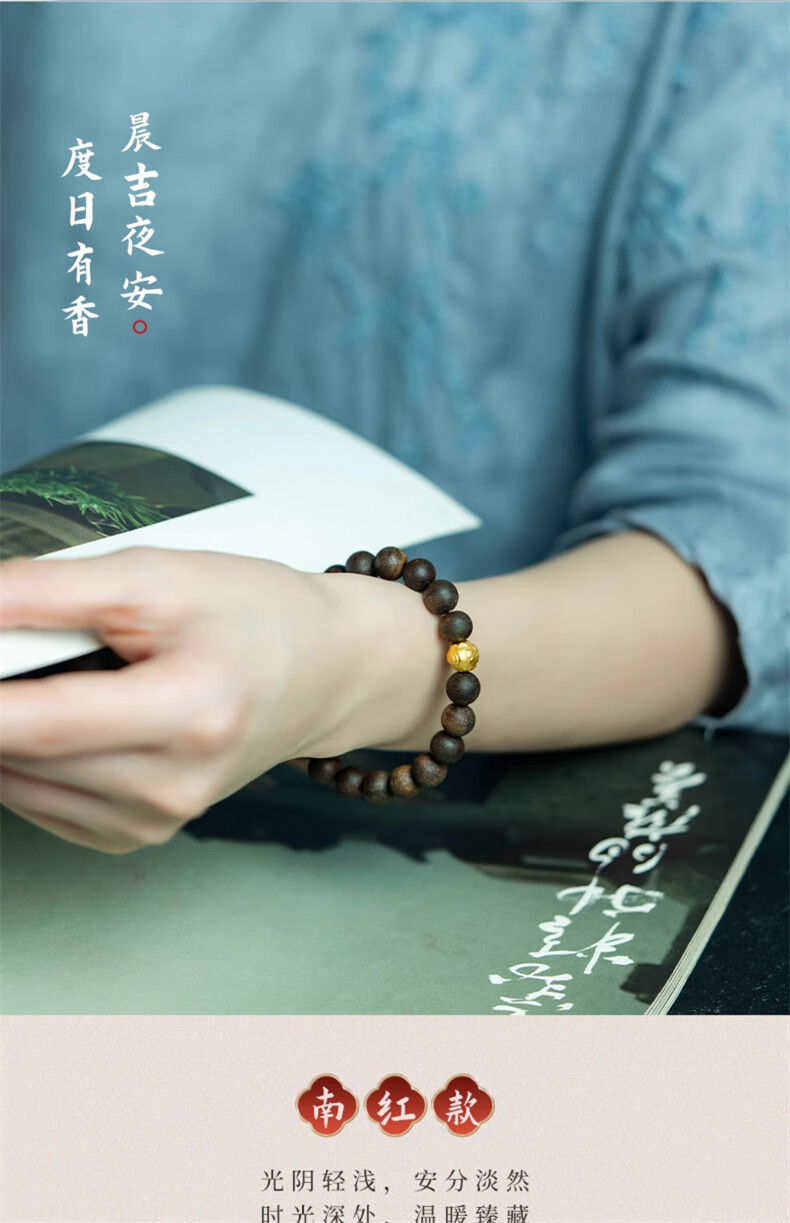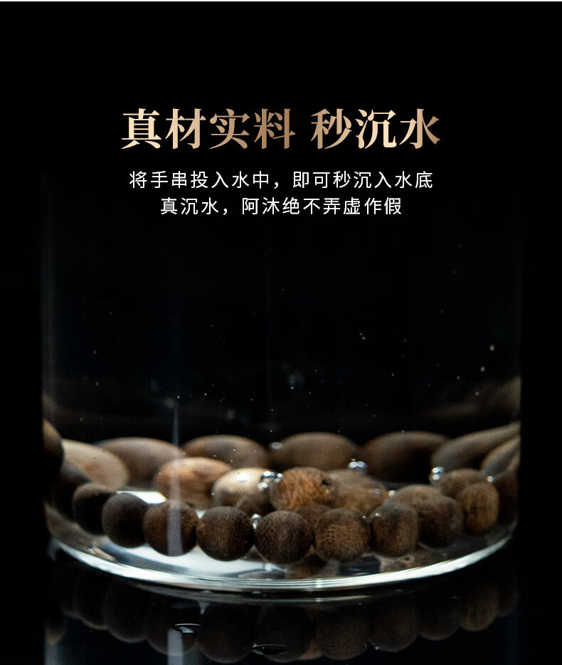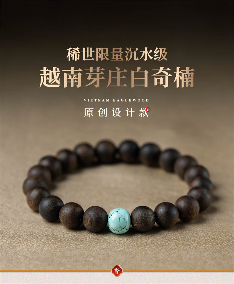 罗梅达尔天然沉香手串女越南芽庄白奇楠满油佛珠手串全沉水级手链生日礼物 全沉水级8mmx21颗+3D硬金转运珠