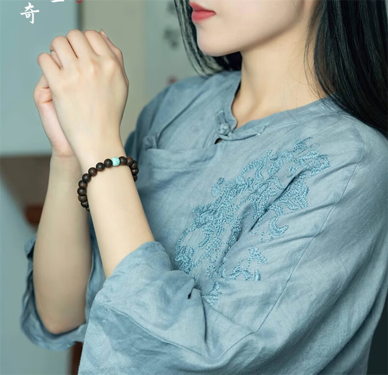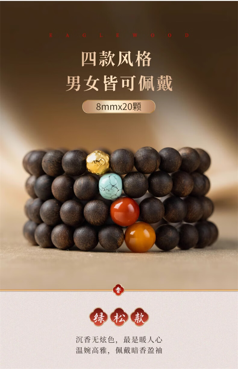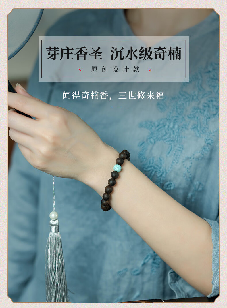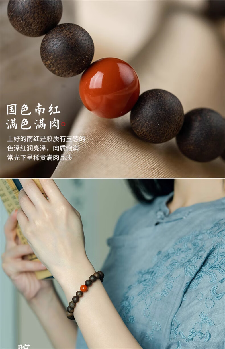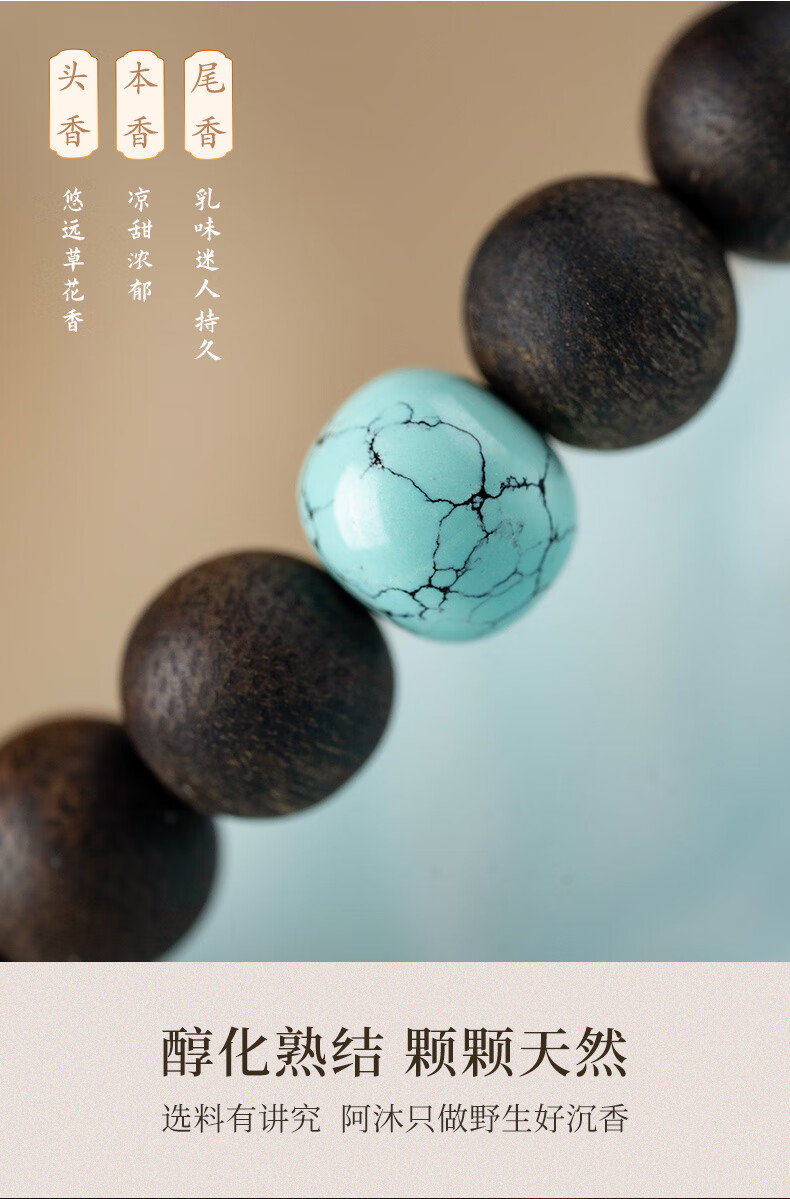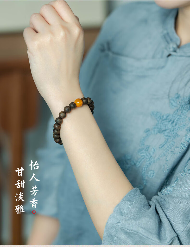 罗梅达尔天然沉香手串女越南芽庄白奇楠满油佛珠手串全沉水级手链生日礼物 全沉水级8mmx21颗+3D硬金转运珠
