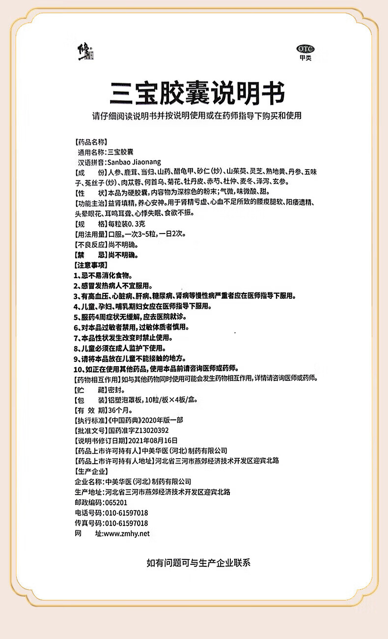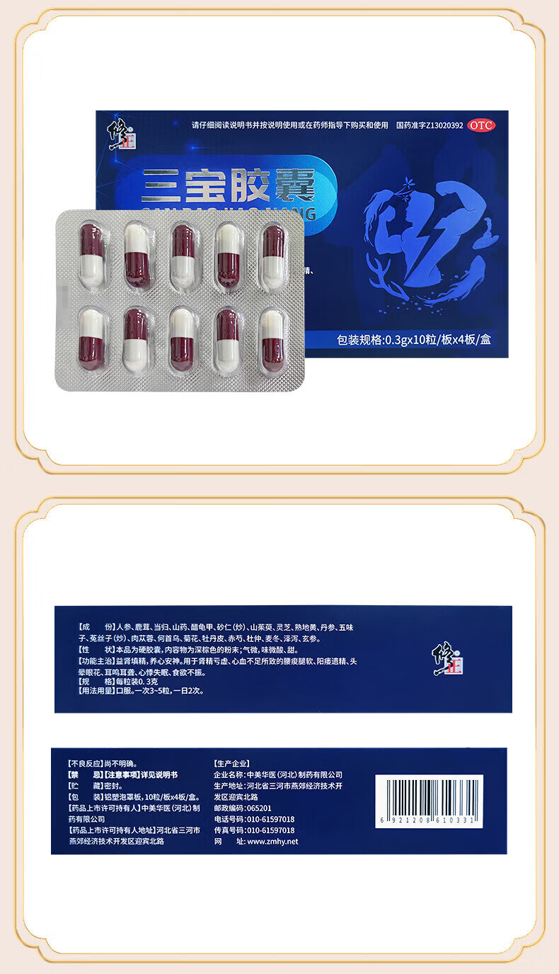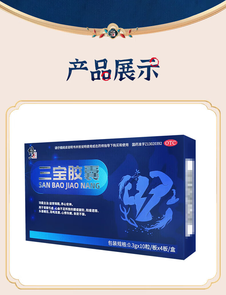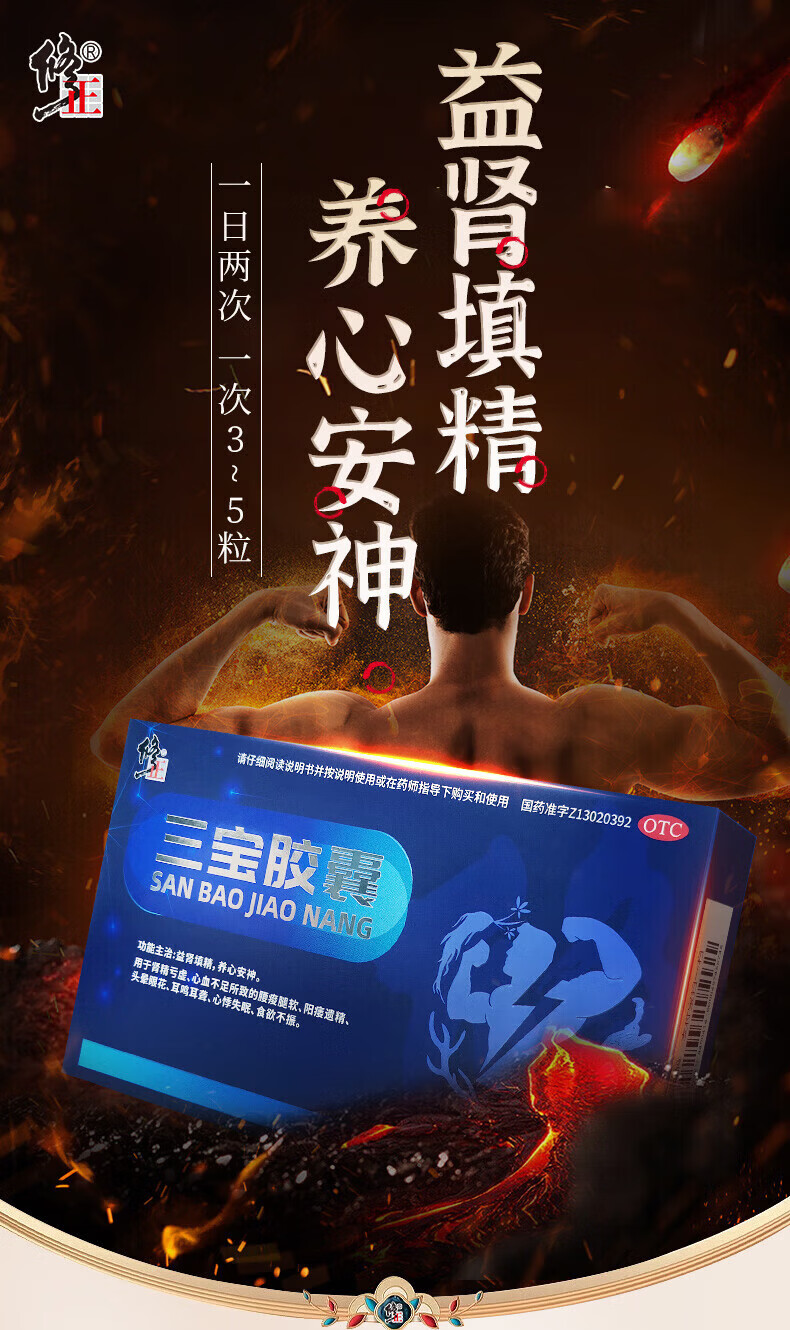 [修正]三宝胶囊 0.3g*40粒 5盒装 肾填精养心安神肾虚阳痿遗精补肾固精男科用药早泄用手过度六味地黄 推荐修正正品|疗程装