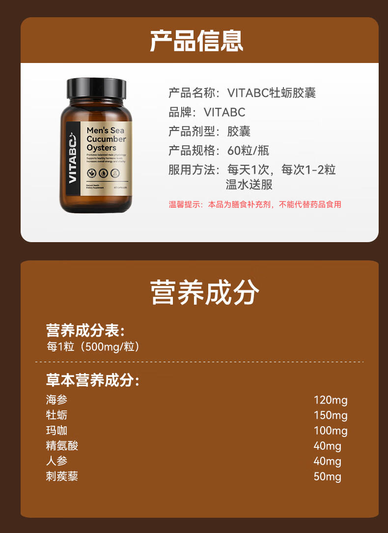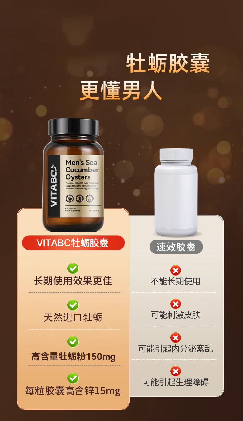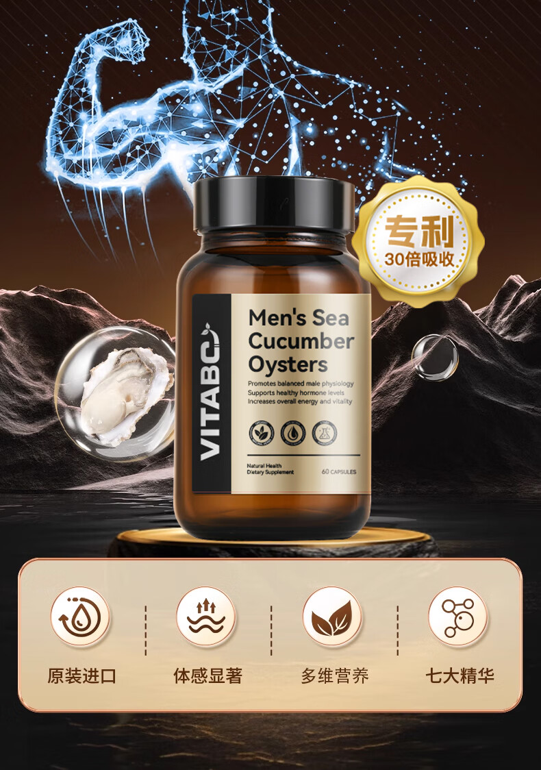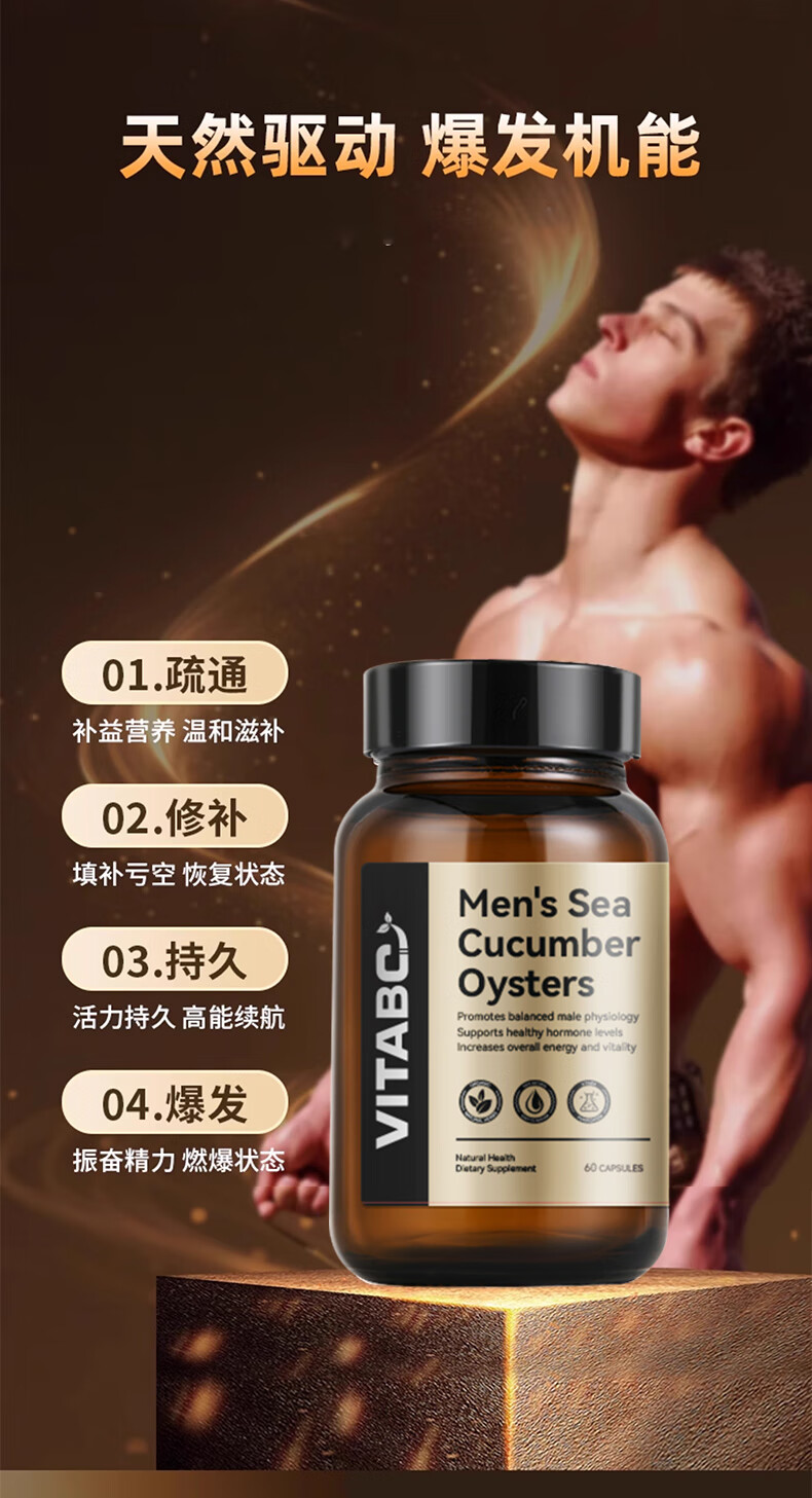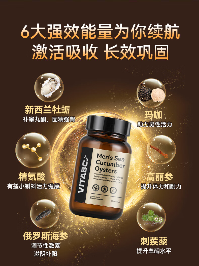 VITABC牡蛎活力生蚝素补睾酮补肾壮阳男士雄性激素成人保健品 1瓶-60粒