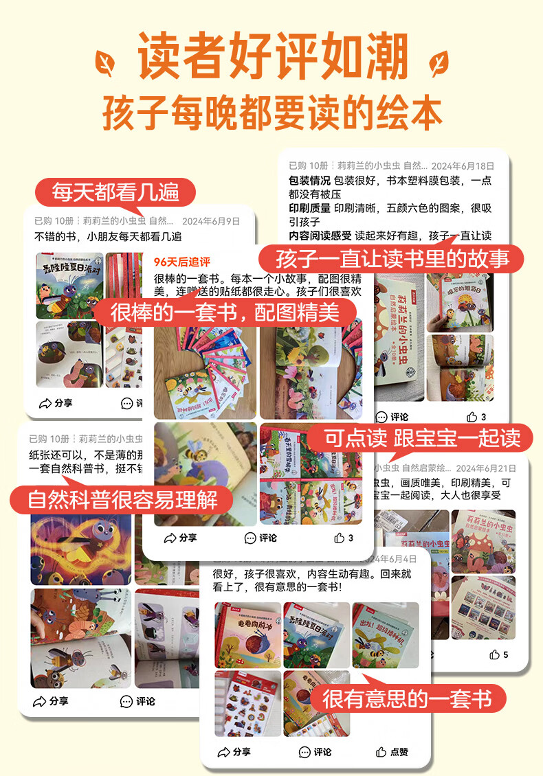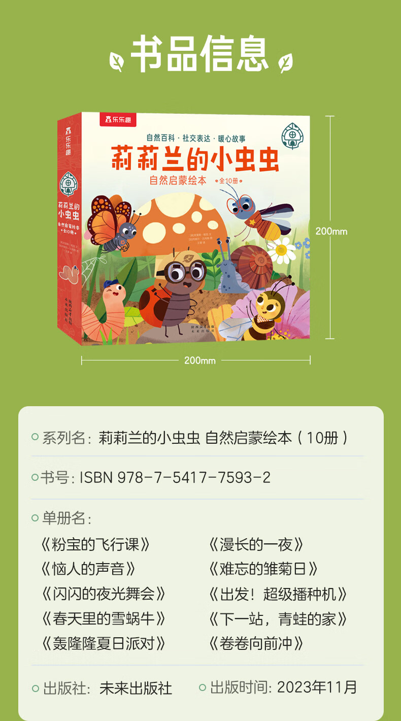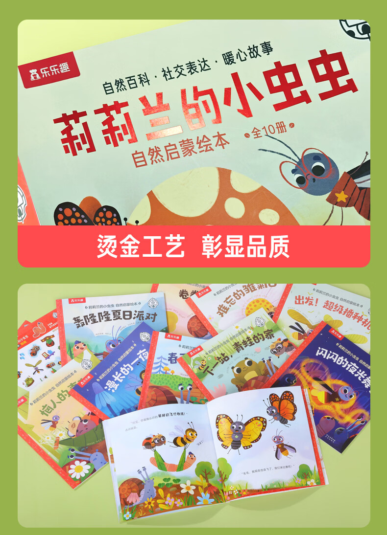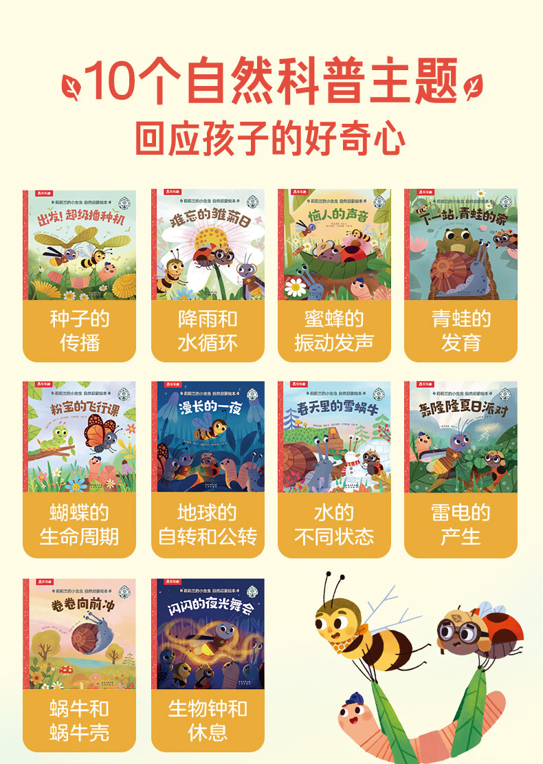 乐乐趣 绘本系列 莉莉兰的小虫虫自然启蒙绘本一路顺风便便 0-3-6岁幼儿启蒙绘本图画故事儿童睡前故事书 超级想象力幼儿园故事书儿童绘本图画书睡前故事书幼儿园阅读绘本 莉莉兰自然启蒙绘本第1辑(10册