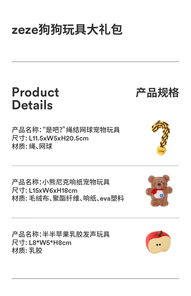 ZEZE狗狗玩具组合三件套玩具磨牙毛绒发声幼犬耐咬解闷小狗组合狗玩具