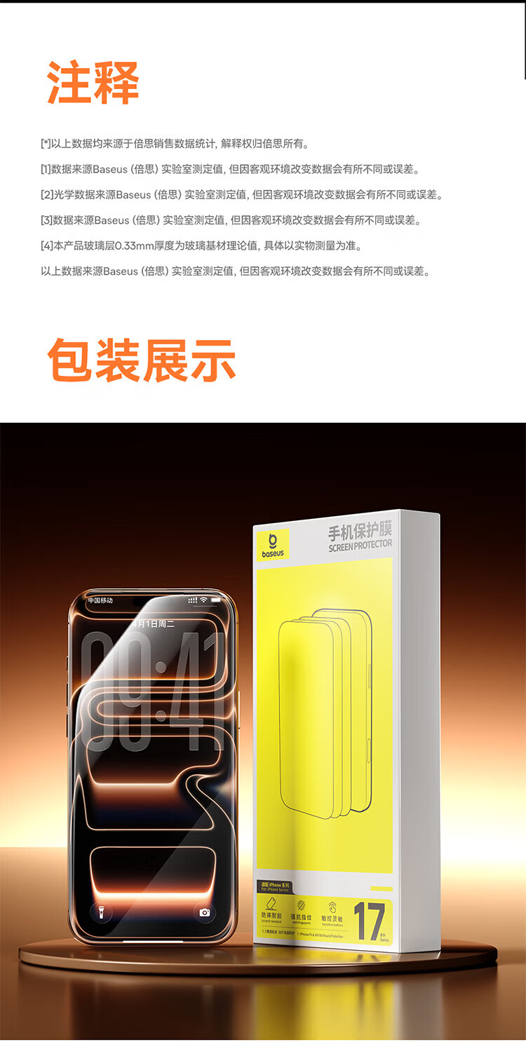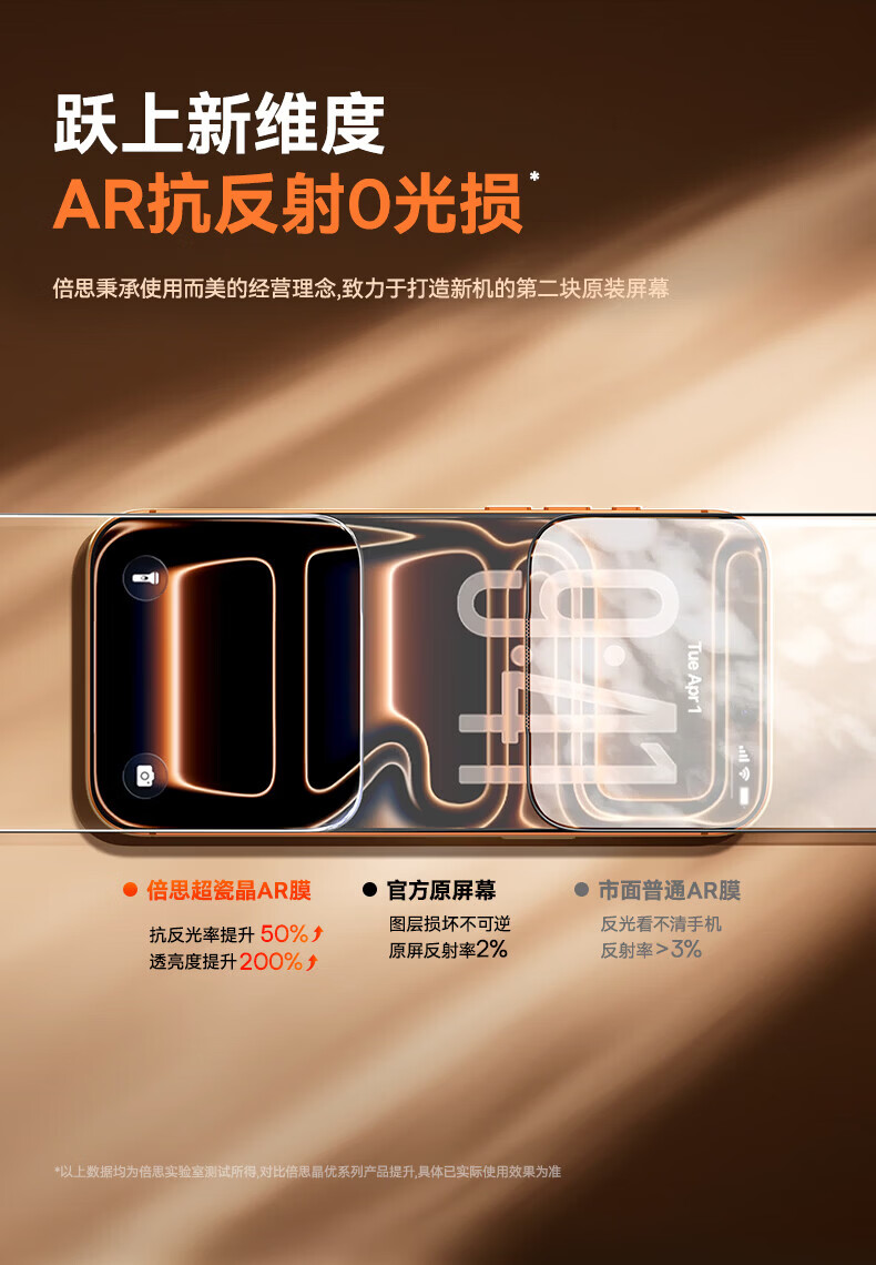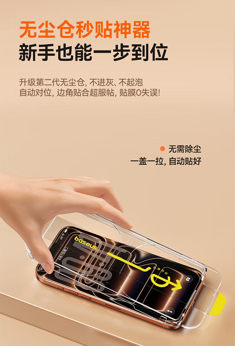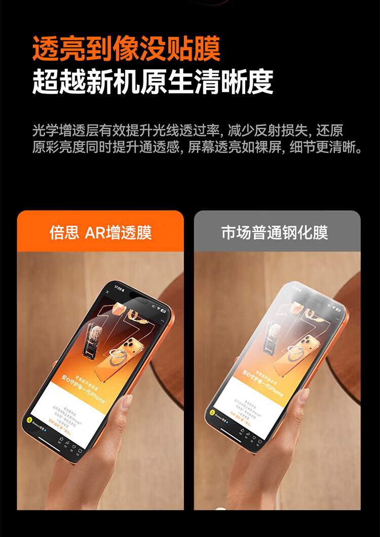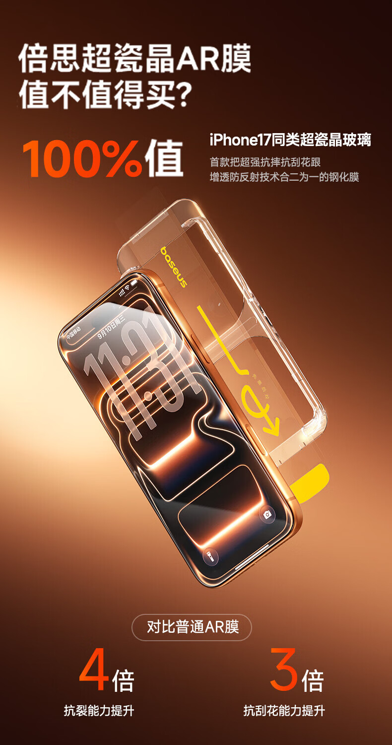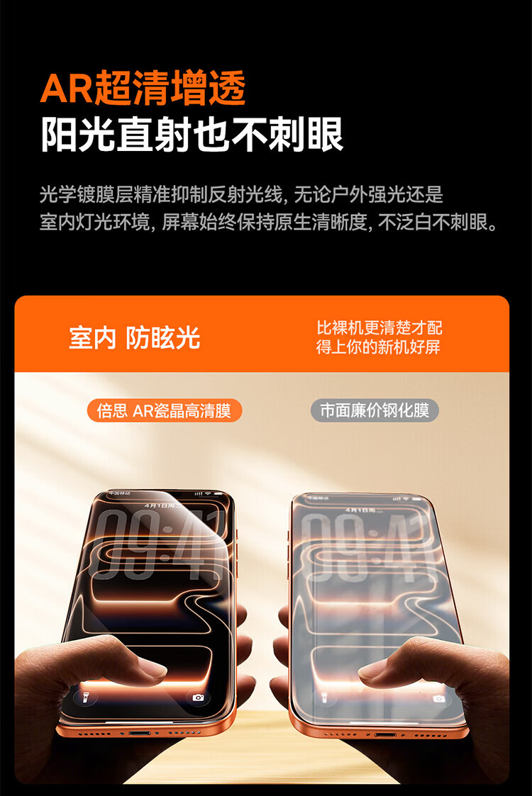倍思【超瓷晶防爆膜AR增透】适用iPhone17/16Pro钢化膜苹果17/16Pro手机膜高清抗指纹保护膜无尘仓2片