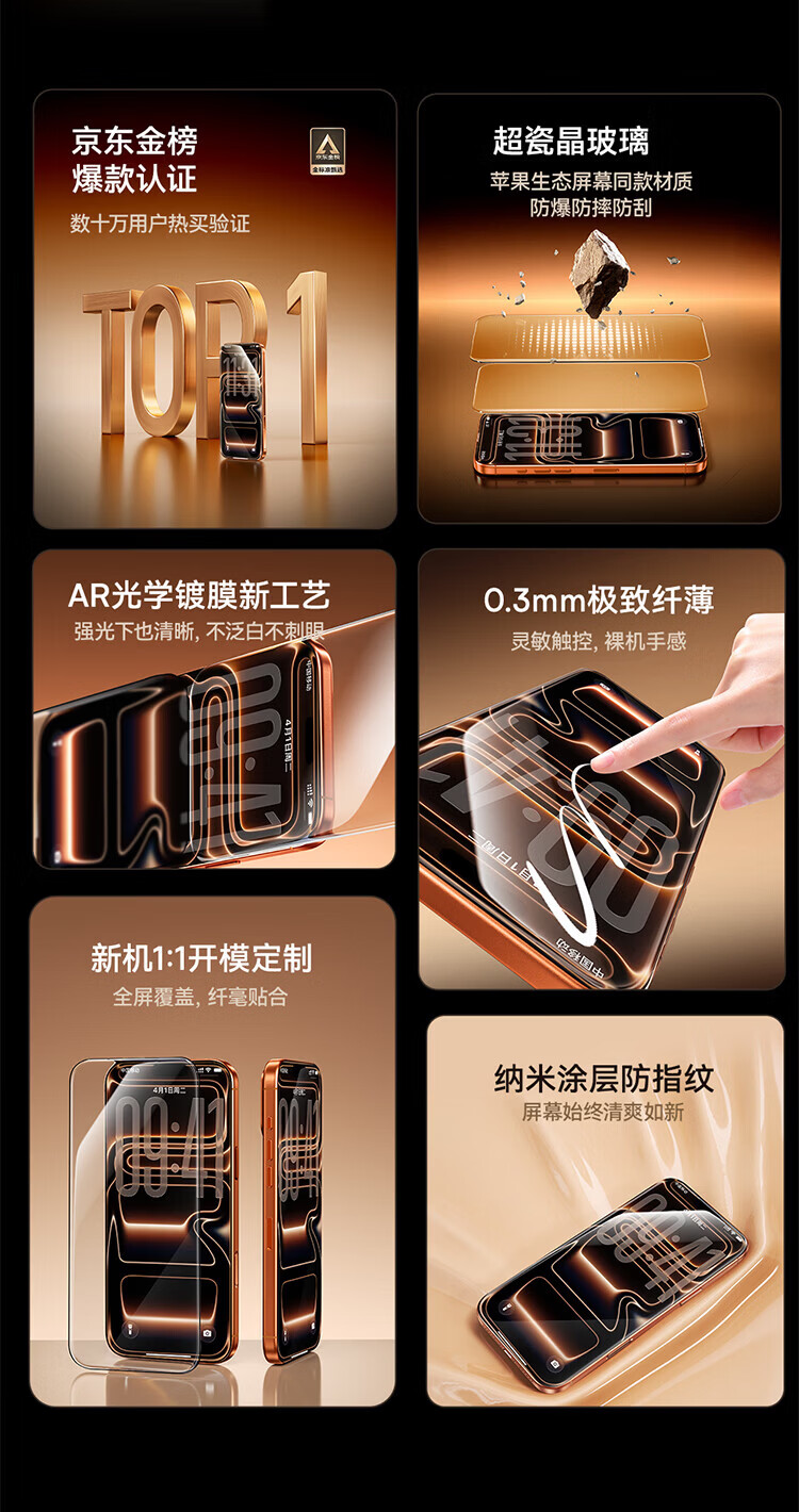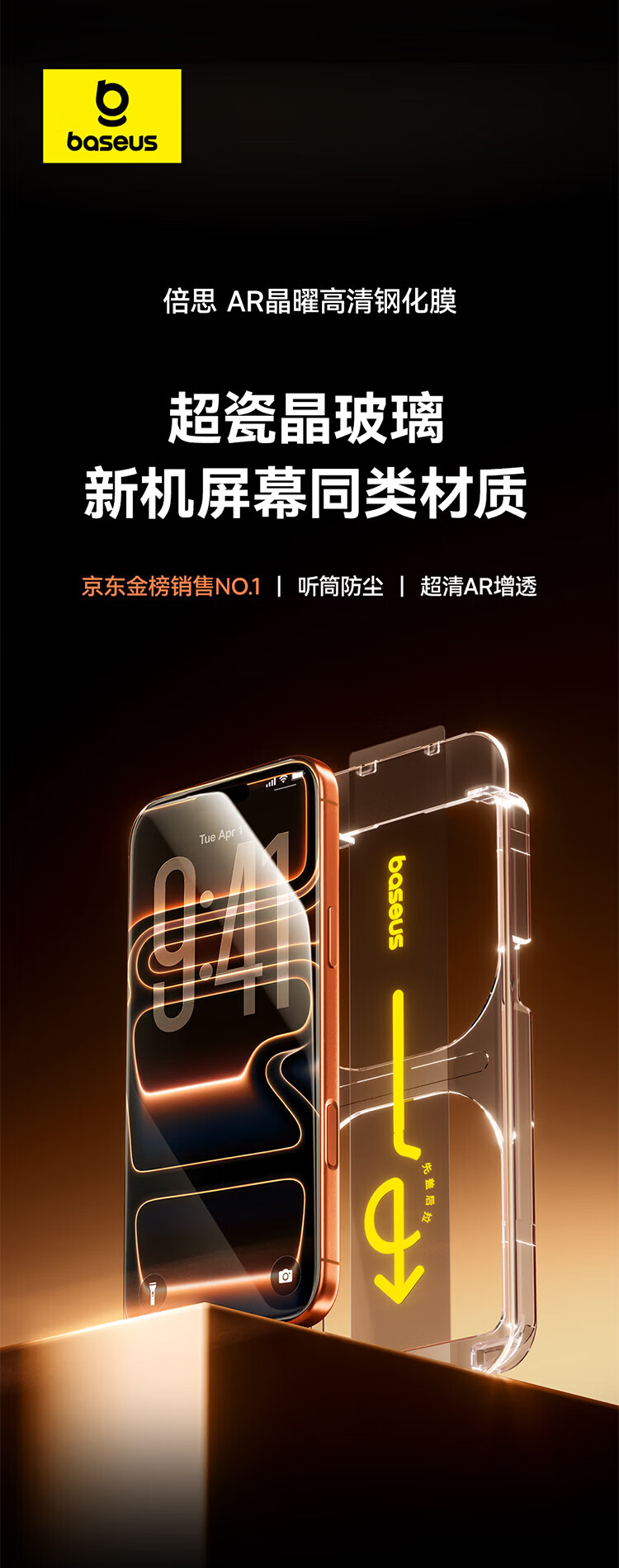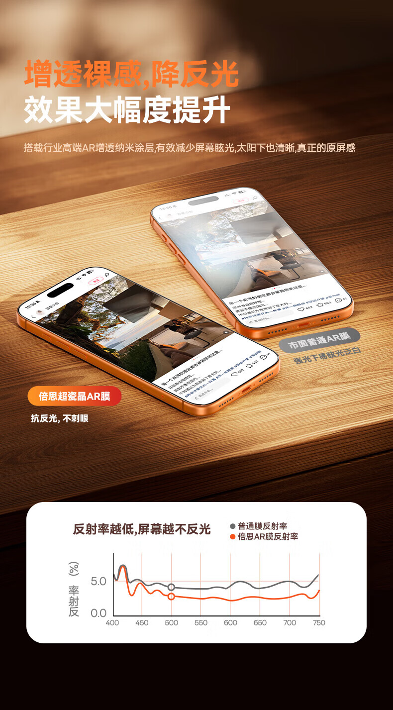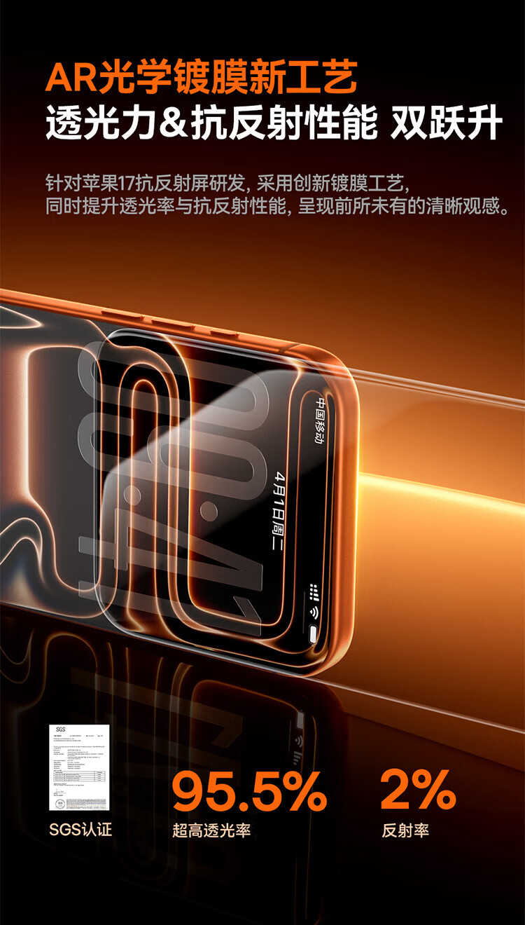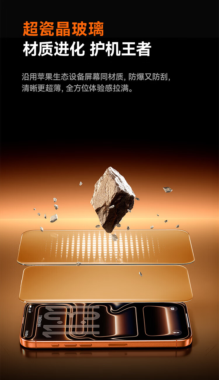 倍思【超瓷晶防爆膜AR增透】适用iPhone17/16Pro钢化膜苹果17/16Pro手机膜高清抗指纹保护膜无尘仓2片
