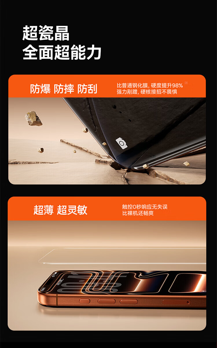 倍思 【超瓷晶防爆膜】适用iPhone15ProMax钢化膜苹果15ProMax手机膜防尘抗指纹超薄全覆盖无尘仓2片装