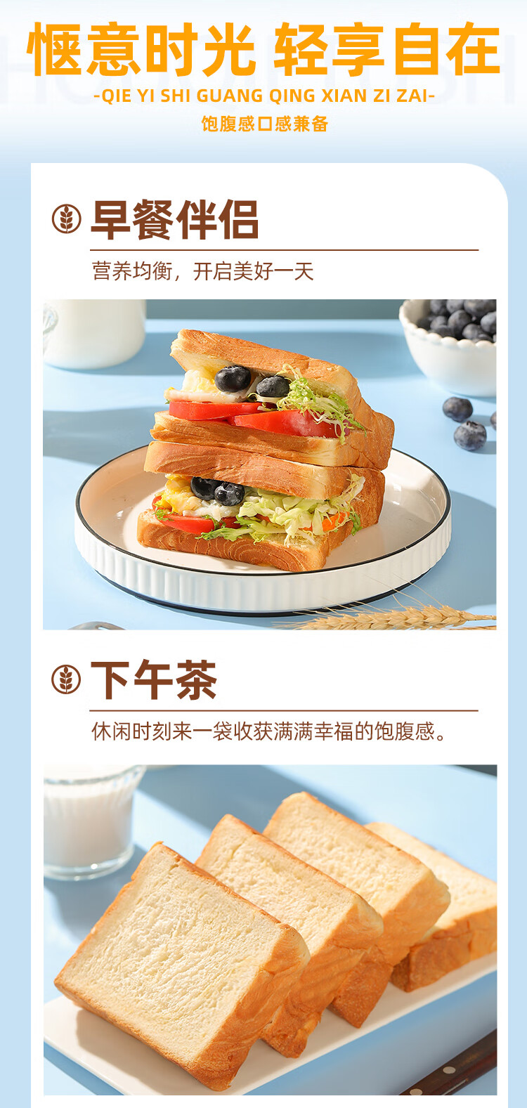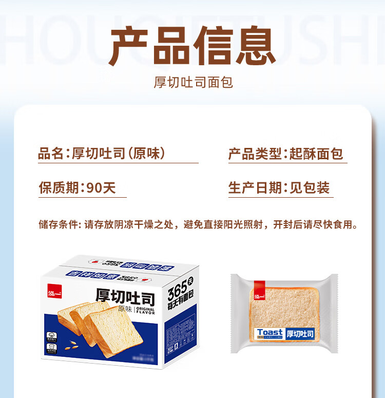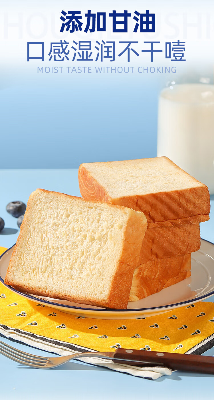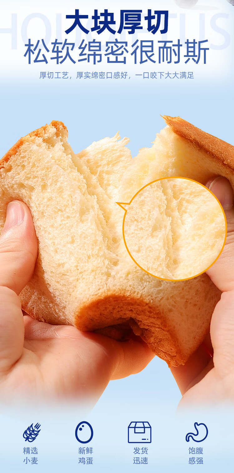 泓一厚切吐司面包1000g 手撕面包营养早餐健身代餐速食宿舍休闲零食品