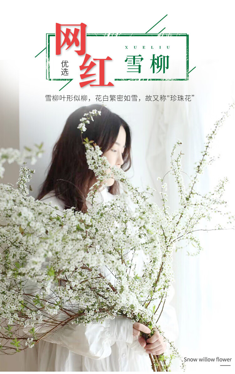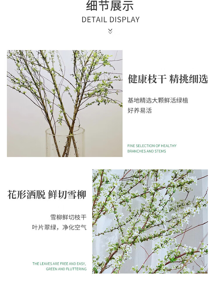 雪柳鲜枝水培龙柳带花苞干支懒人绿植物室内遇水养开花卉盆栽好养 当天现切雪柳鲜枝60-70cm左右5枝+送营养液