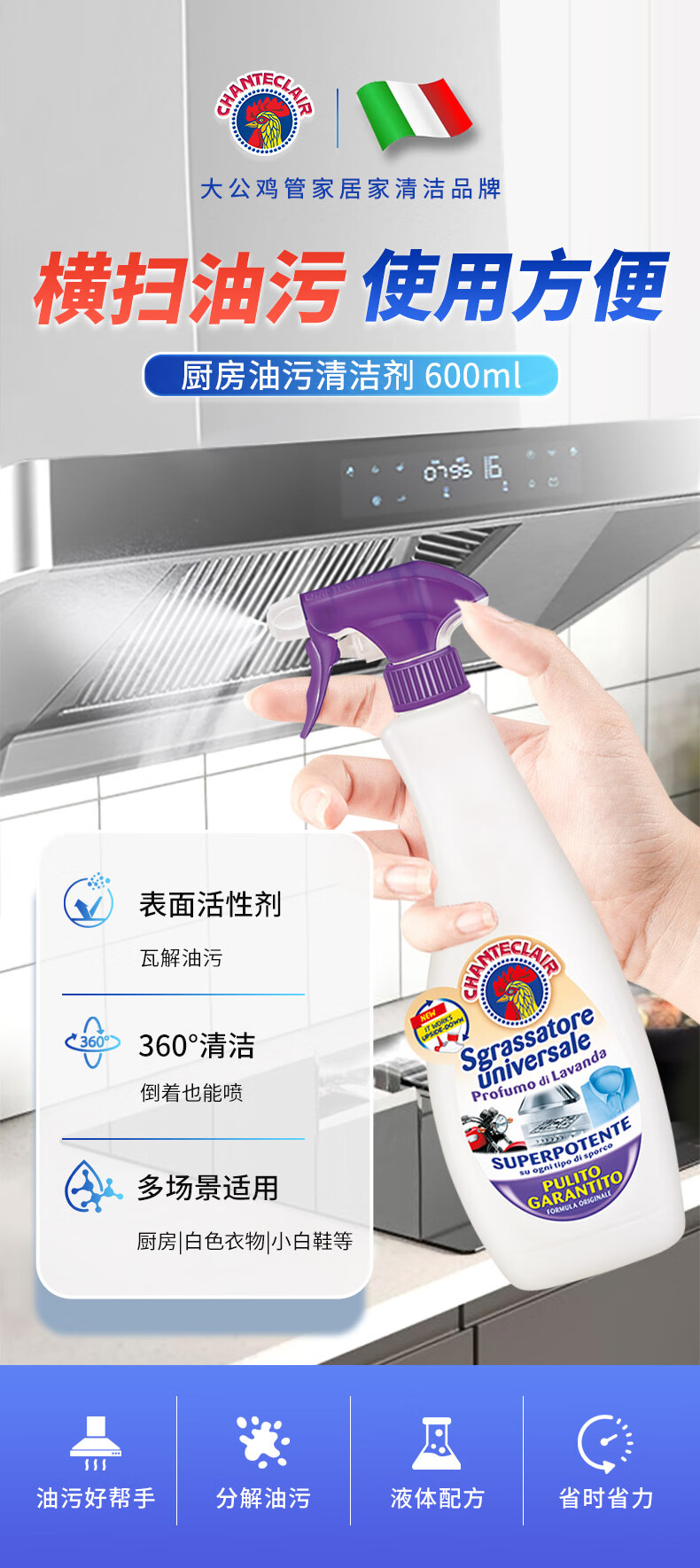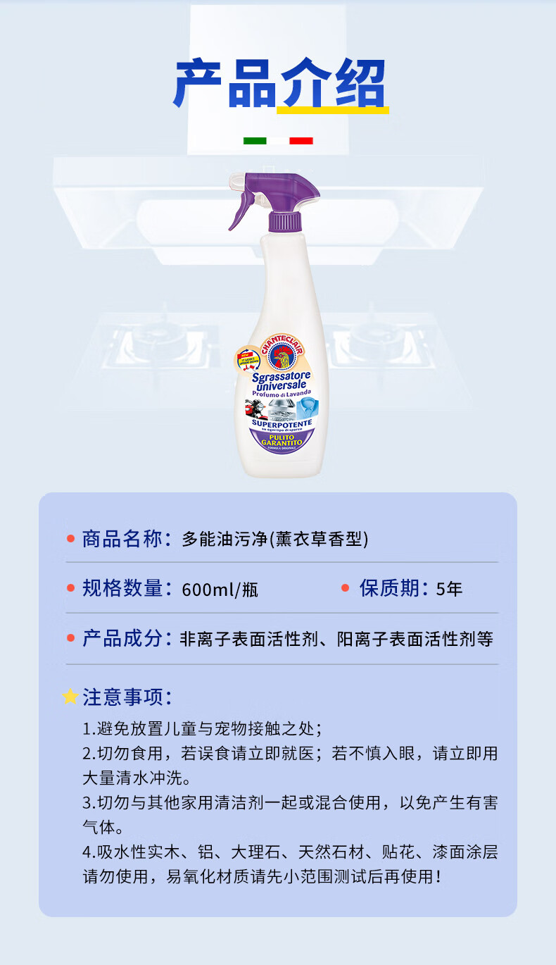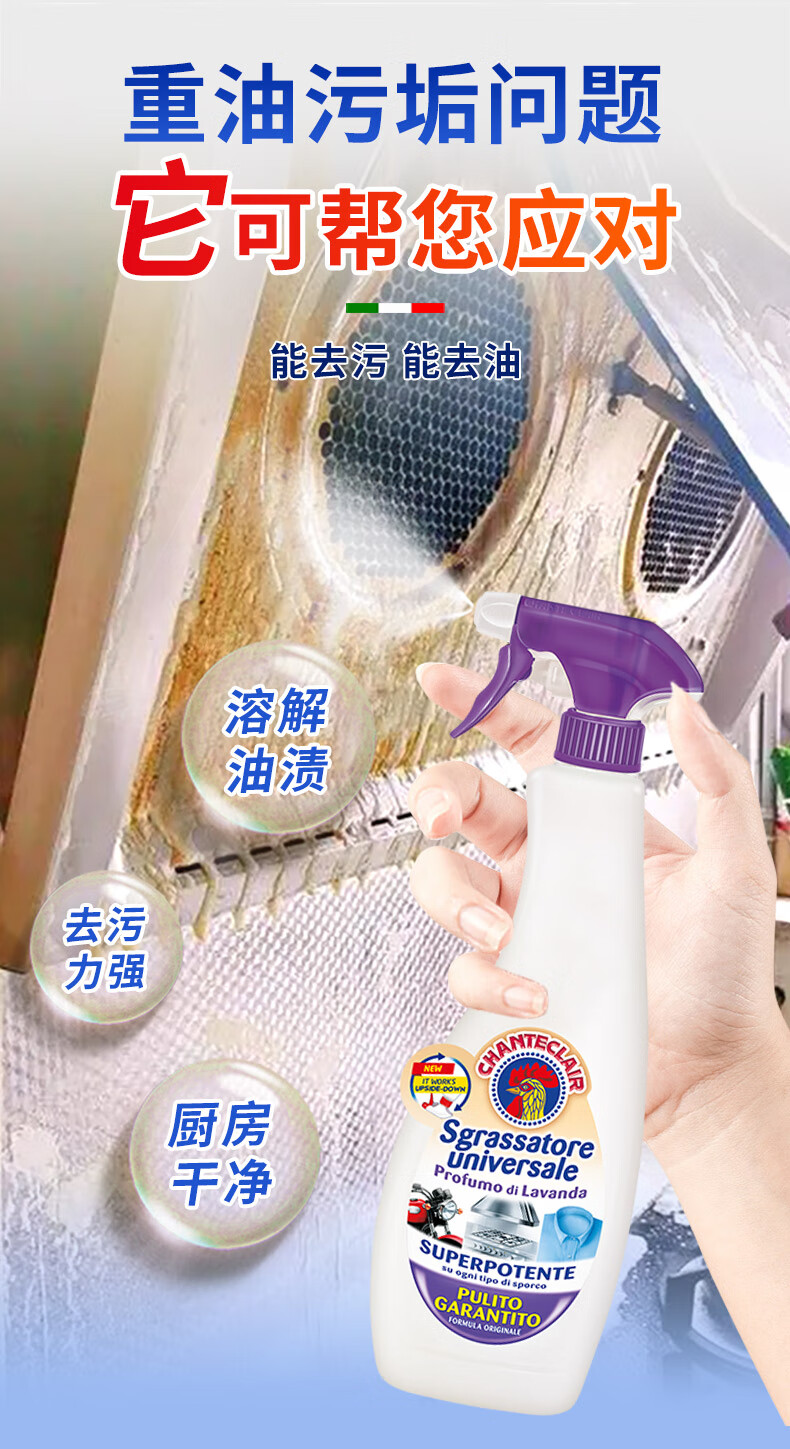 大公鸡管家(CHANTE CLAIR)多功能油污净(薰衣草) 厨房重油污清洁剂 600ml 家庭清洁