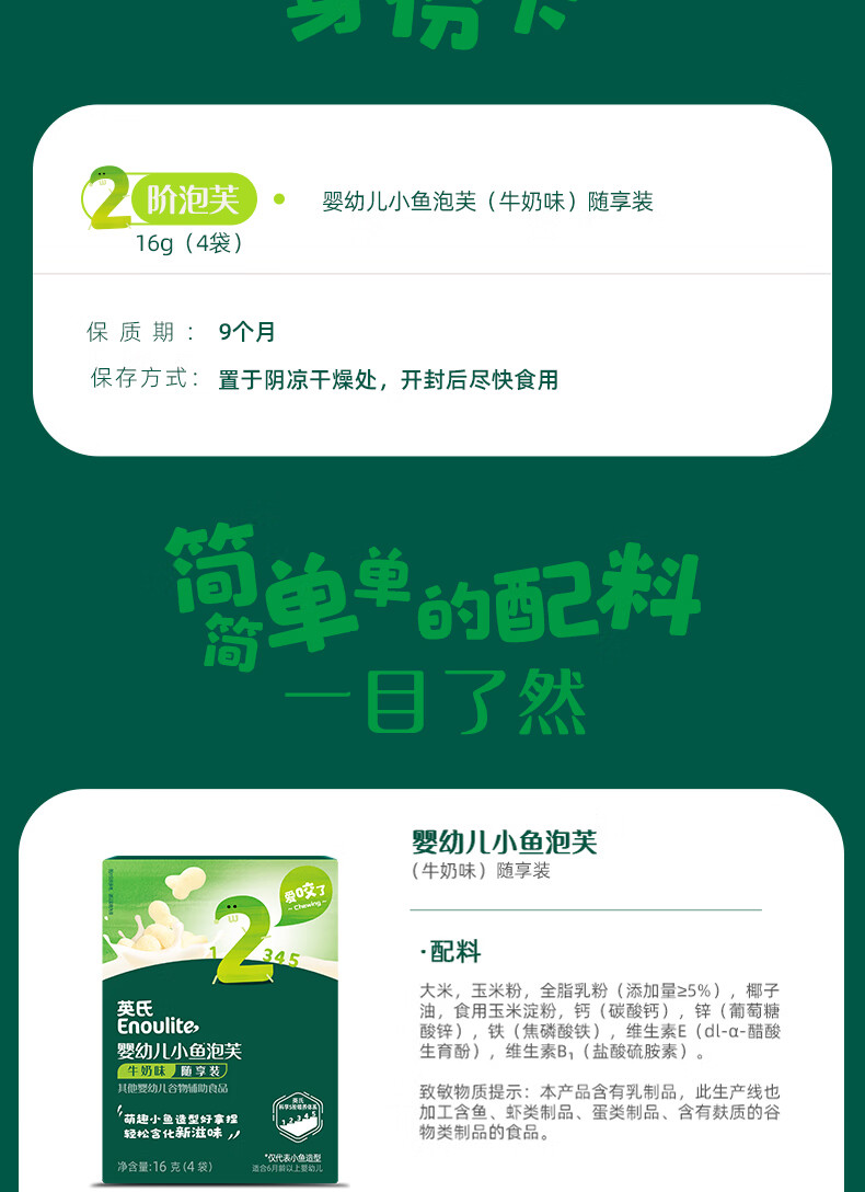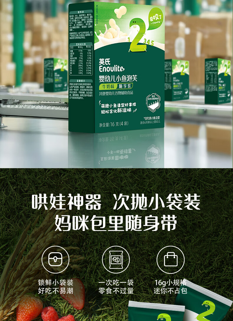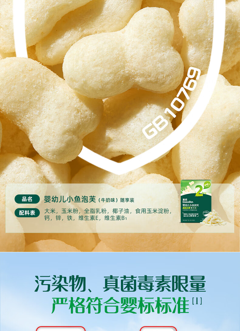 英氏(Engnice)婴幼儿小鱼泡芙牛奶味 婴儿零食儿童泡芙宝宝零食尝鲜16g