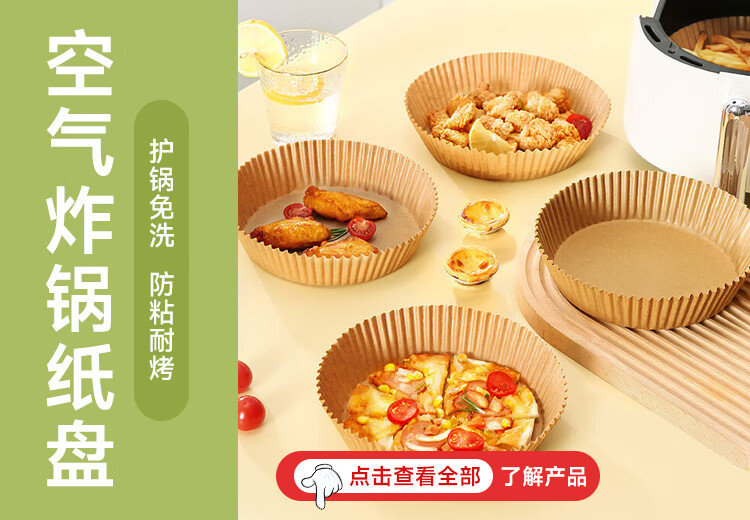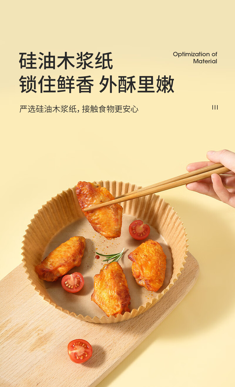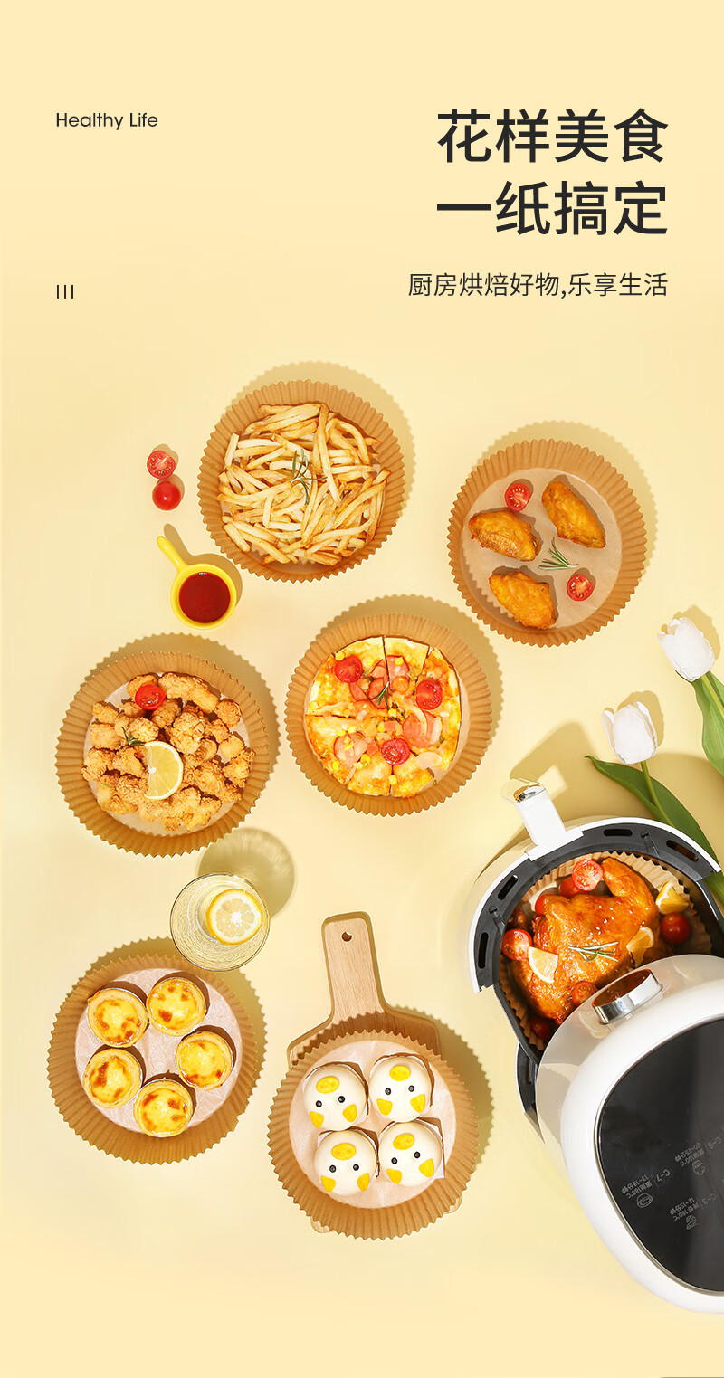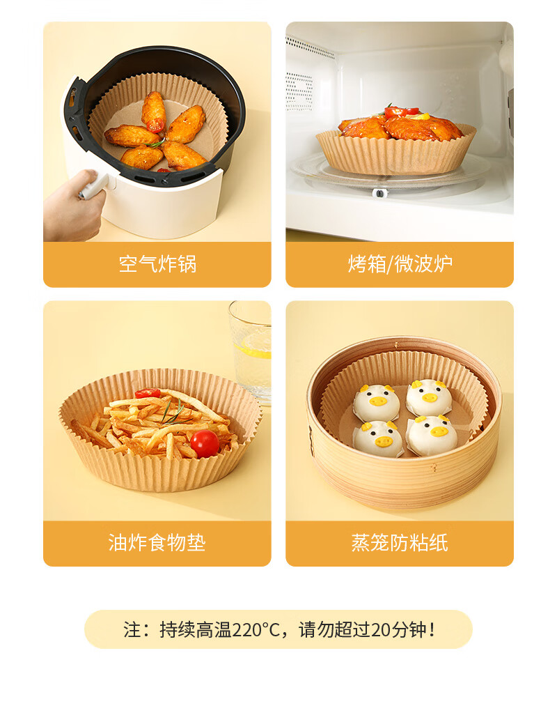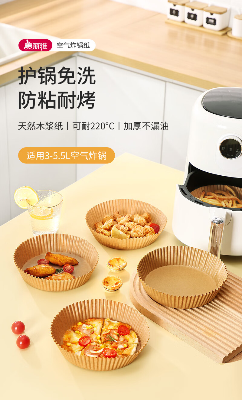 美丽雅空气炸锅专用纸16cm*100只 烘焙吸油隔油纸 圆形硅油纸盘